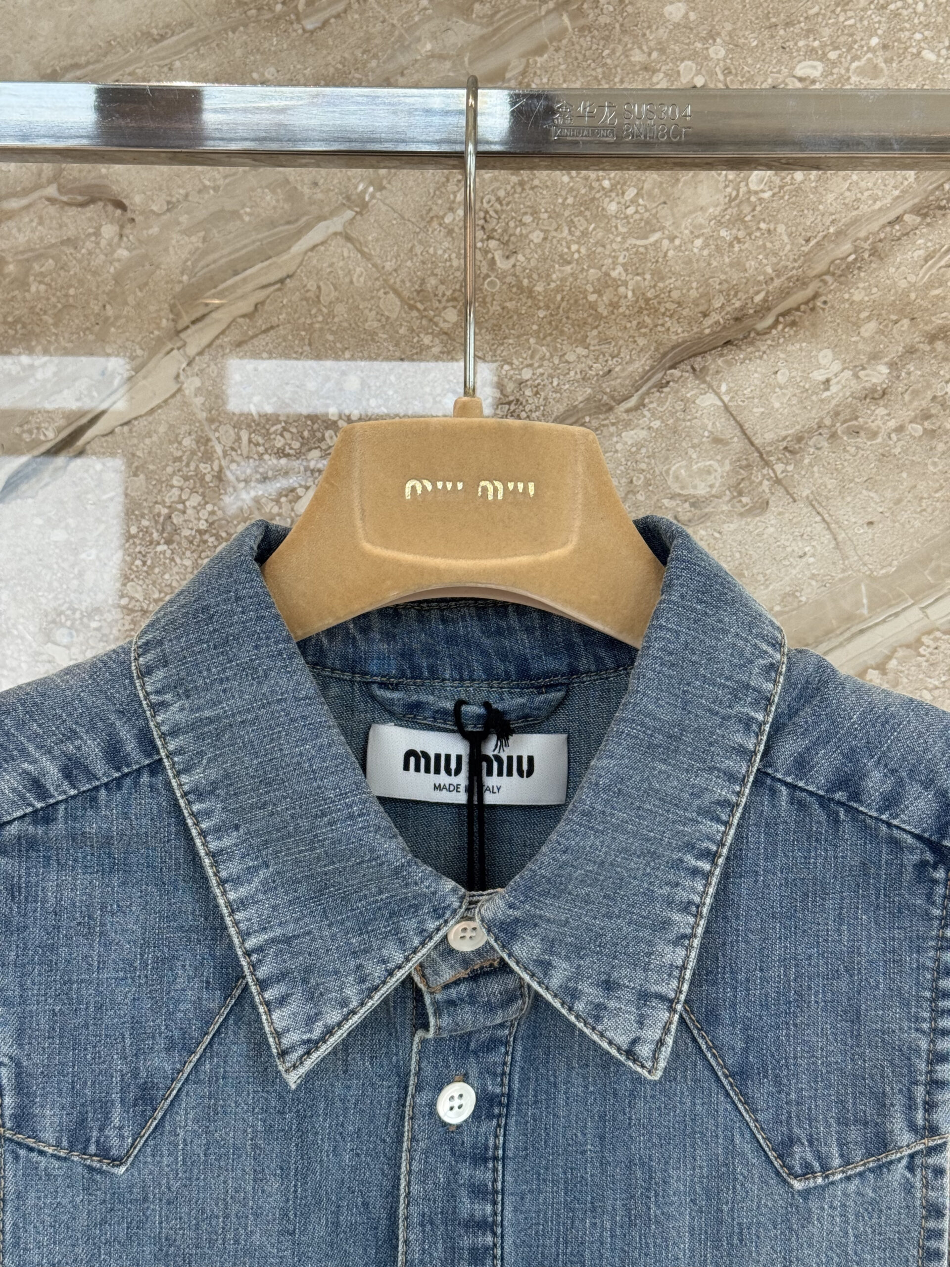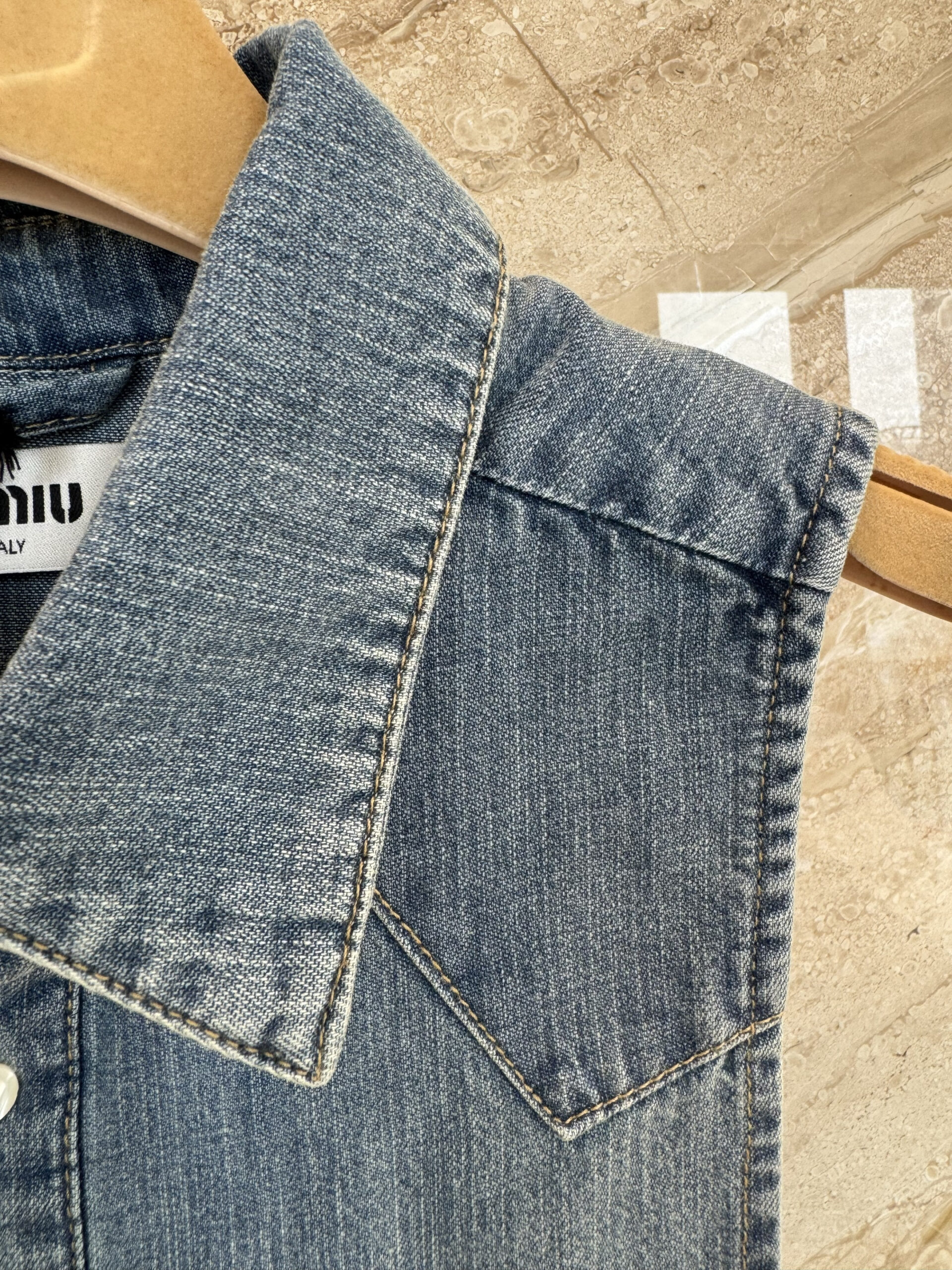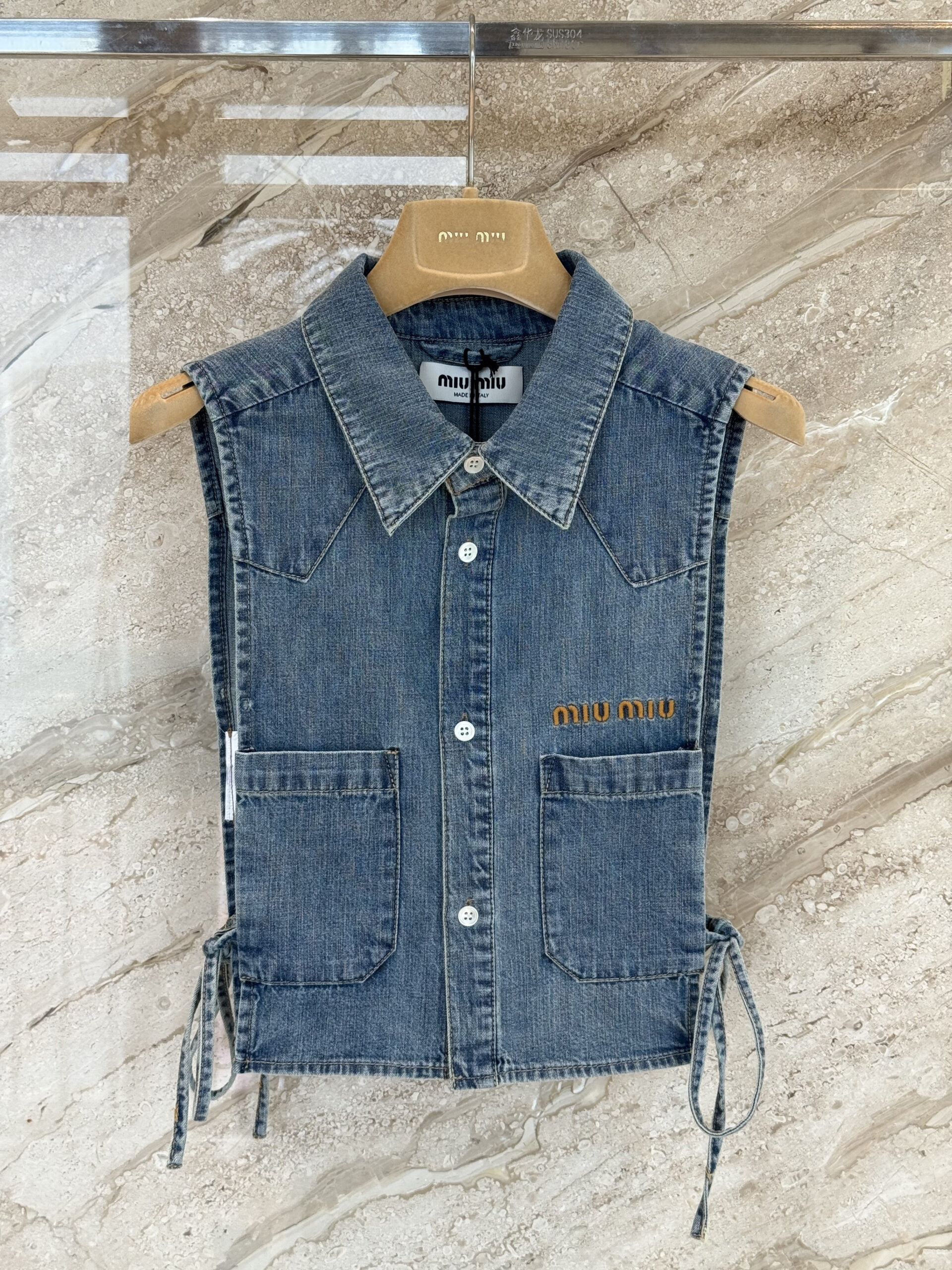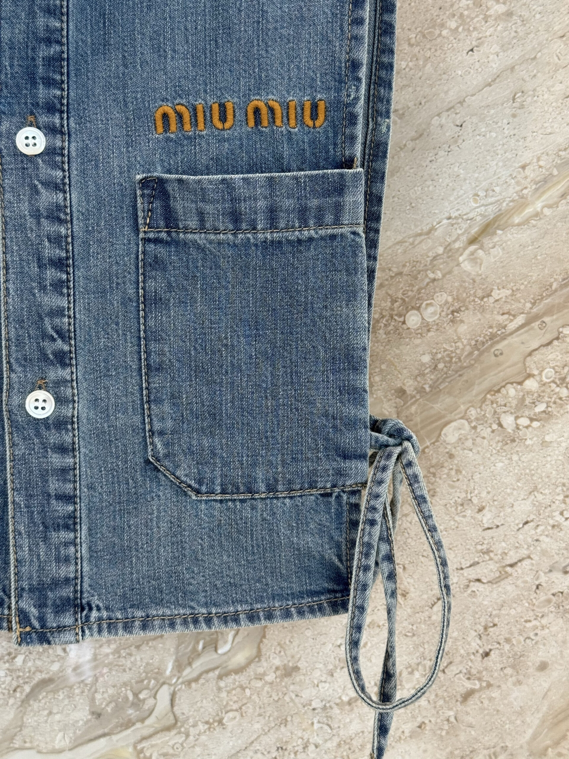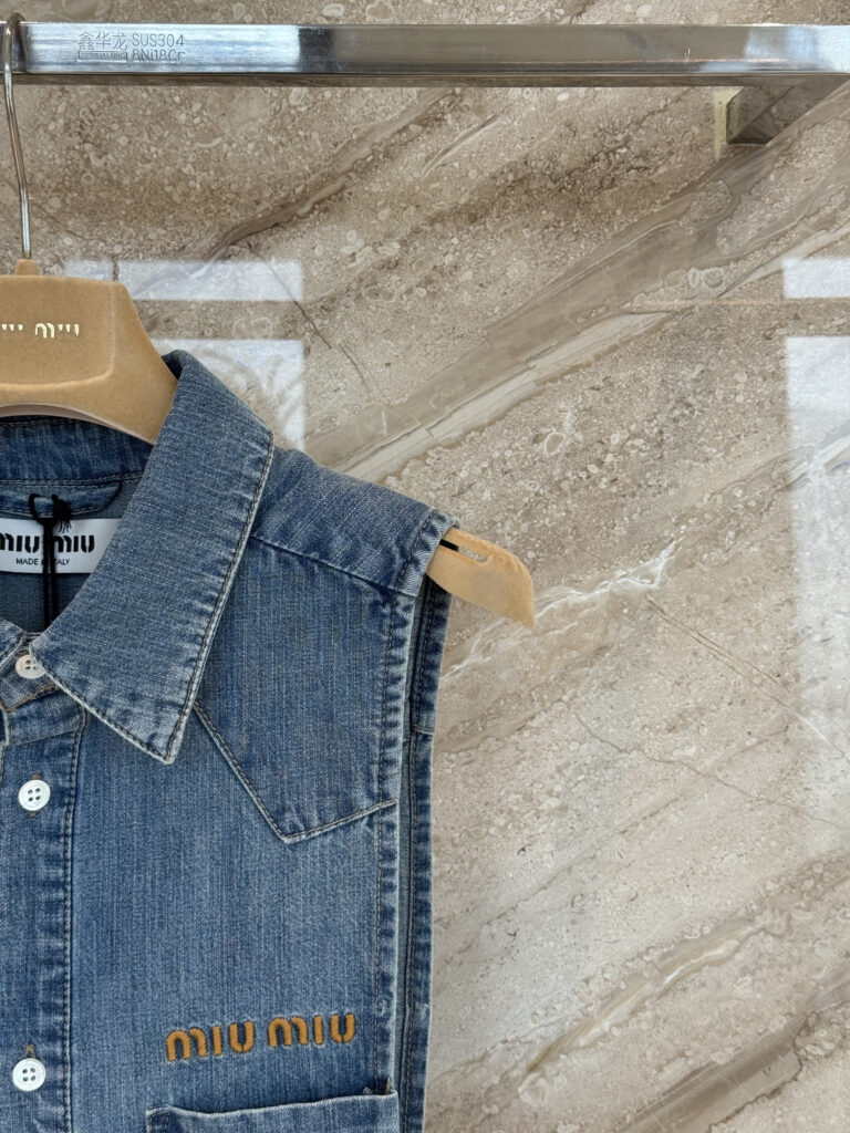미우미우 크롭 샴브레이 타이 셔츠 조끼 GWC144 수량