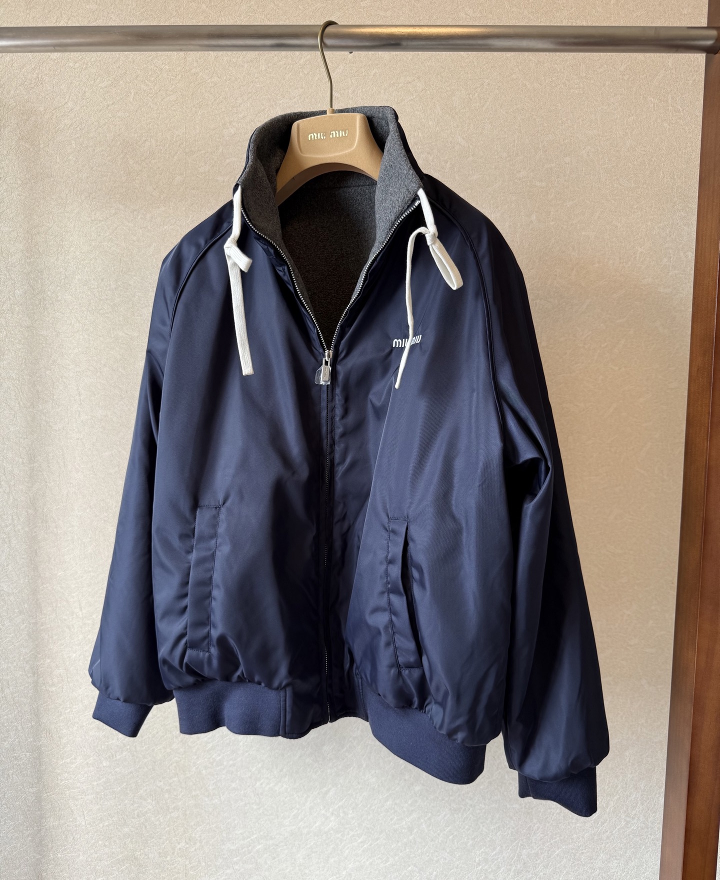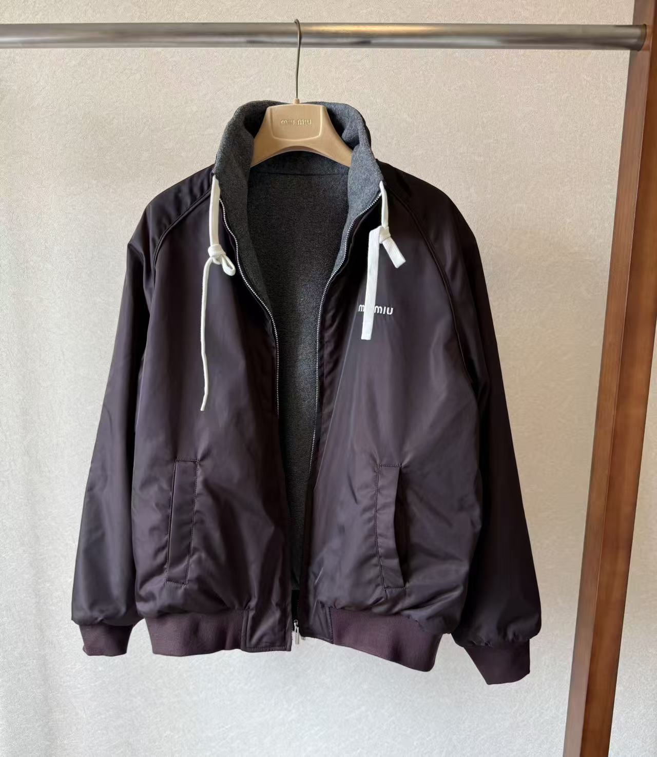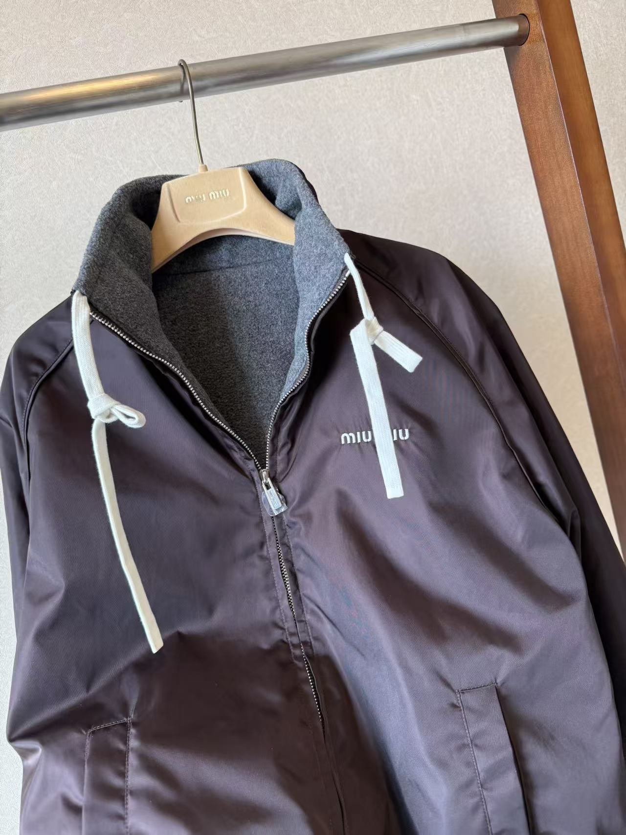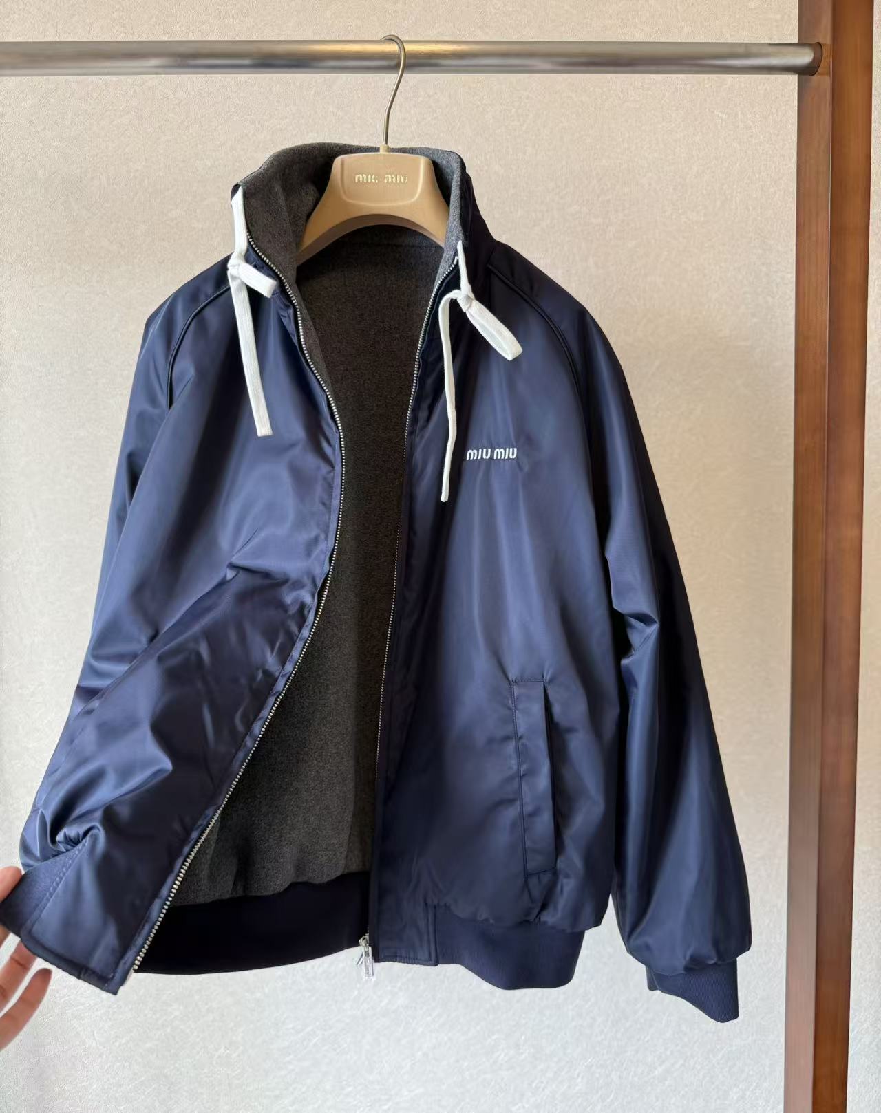 미우미우 테크니컬 가자르와 플리스 봄버 양면 자켓 (2컬러)ML1390