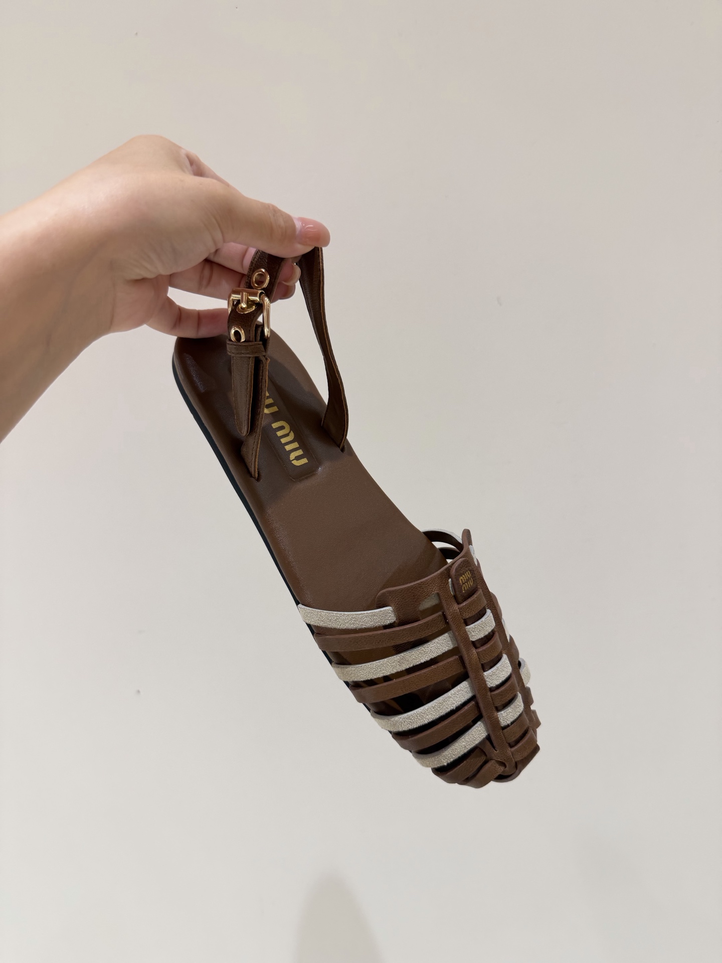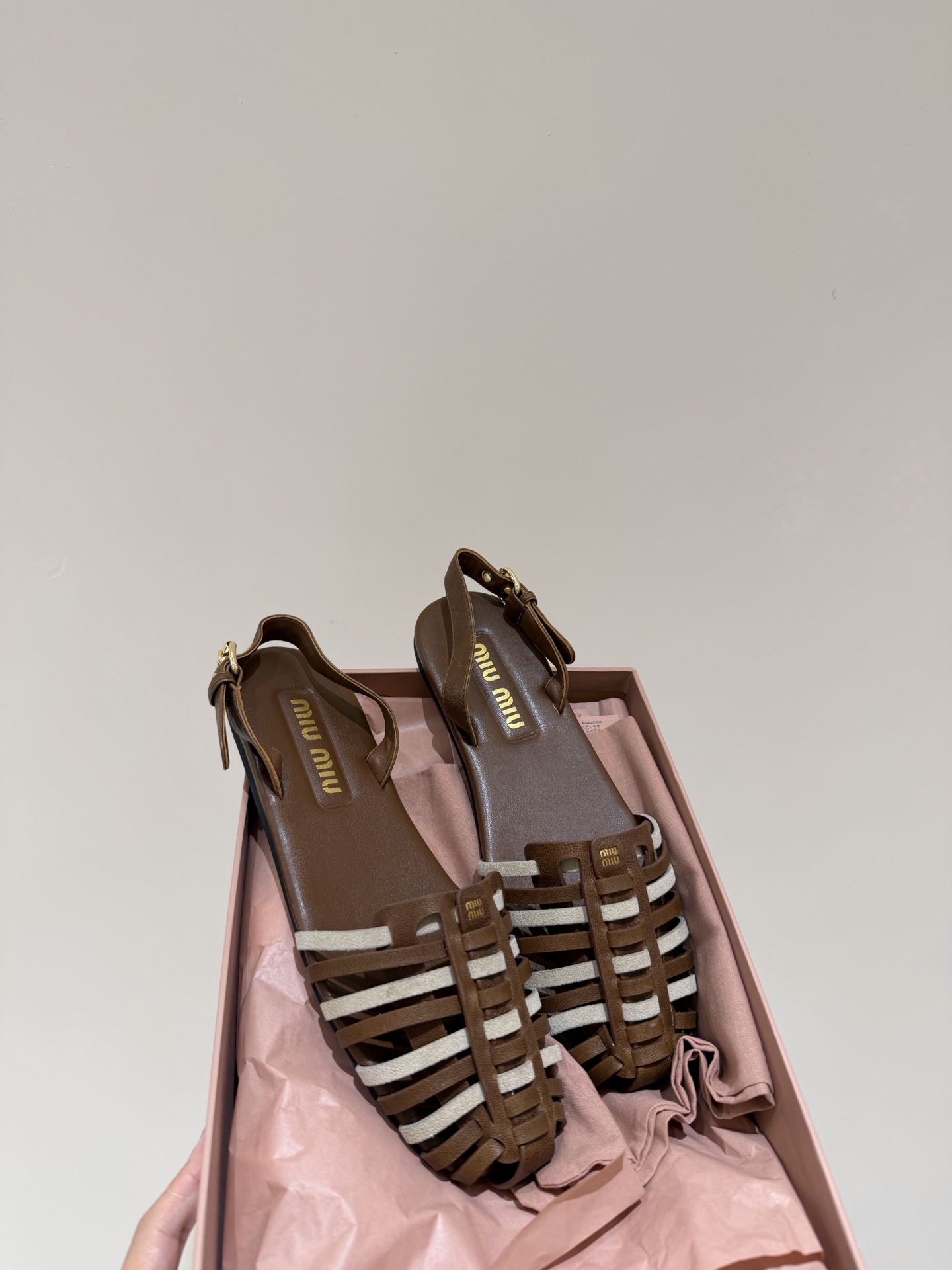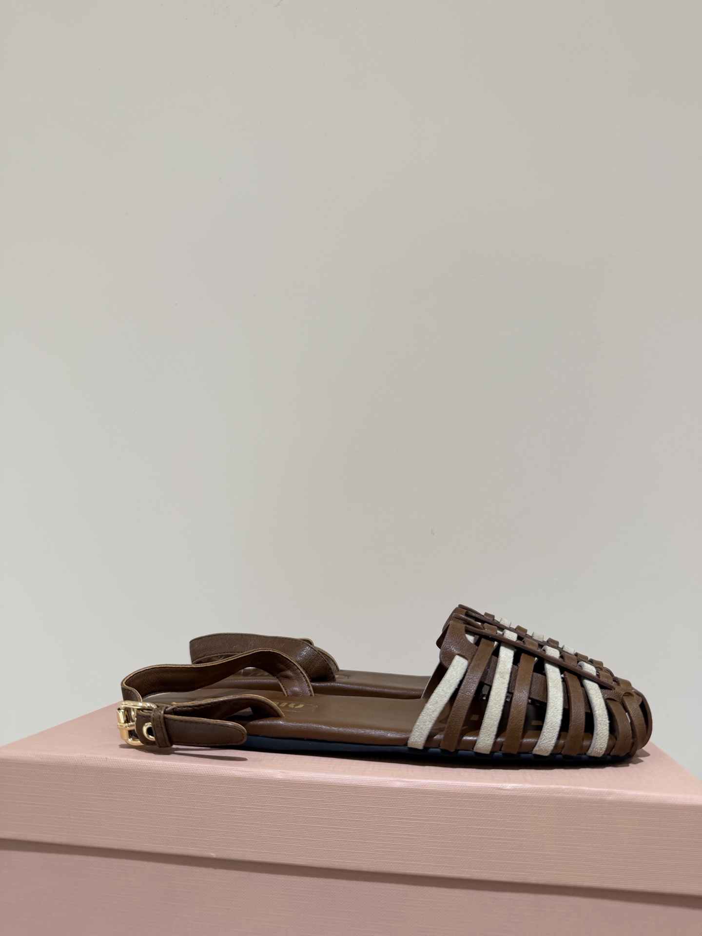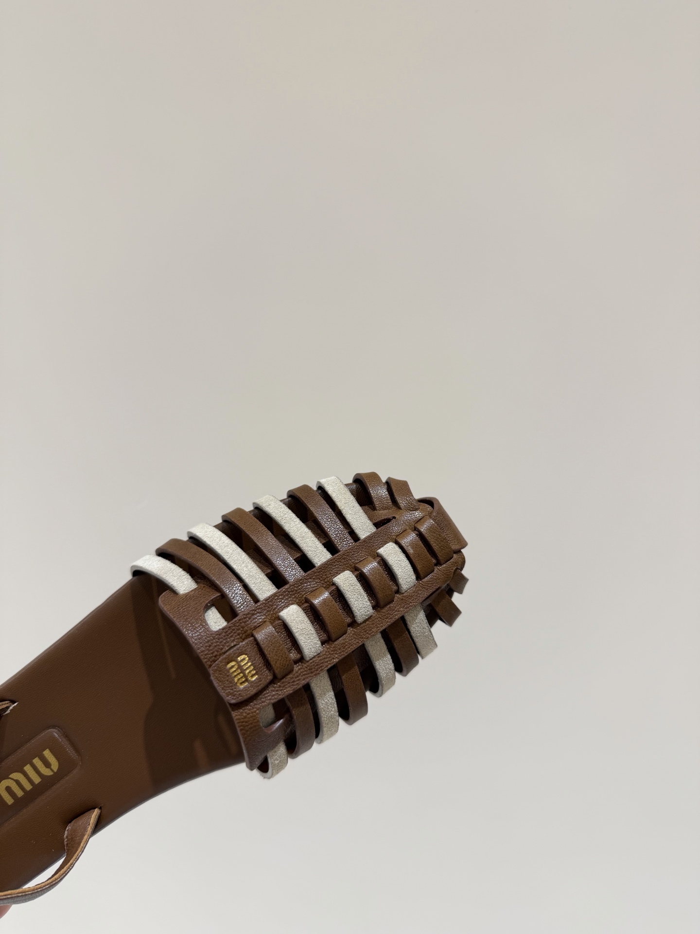 미우미우 투톤 스웨이드 케이지 스트랩 샌들 5X610E