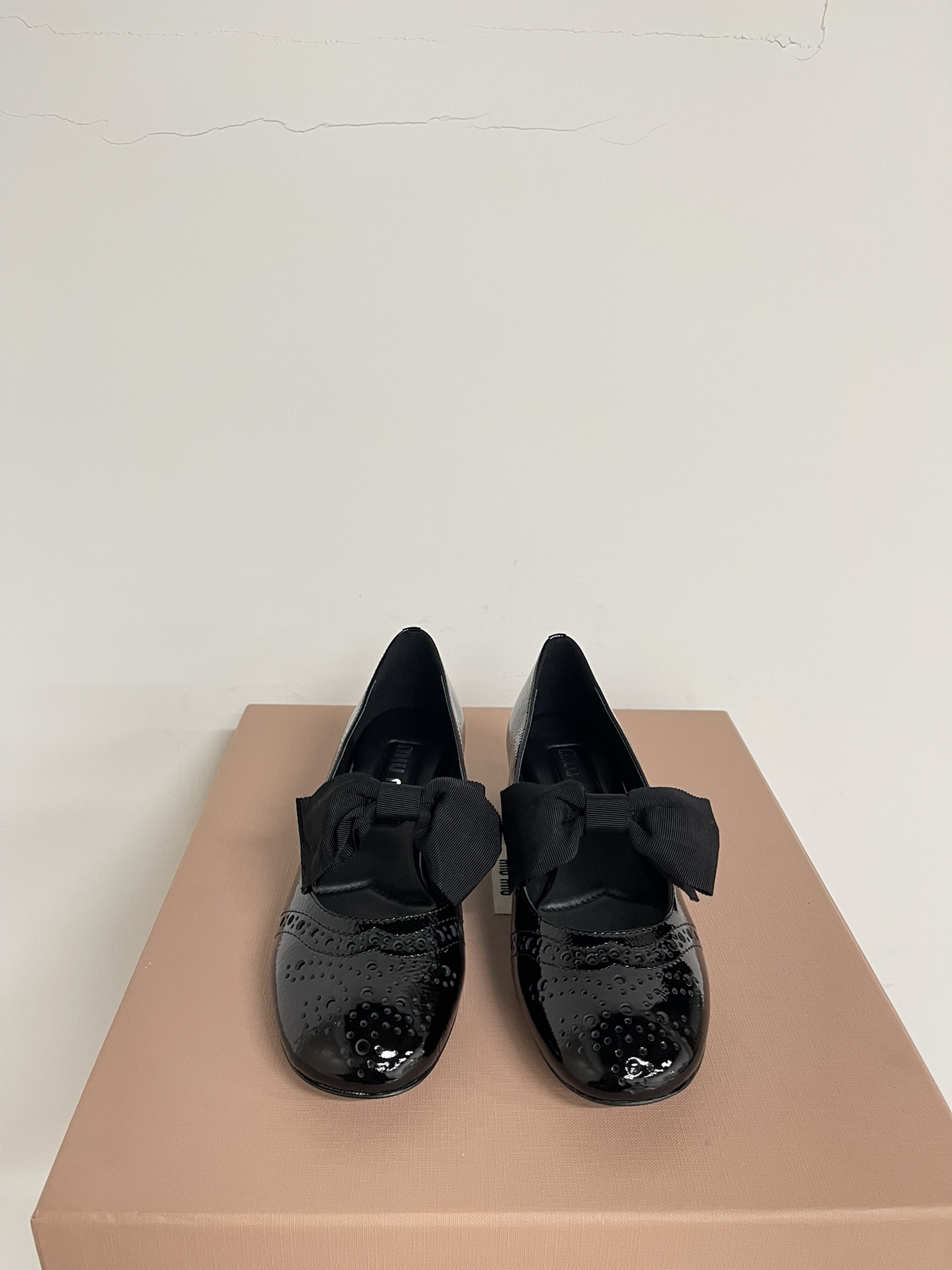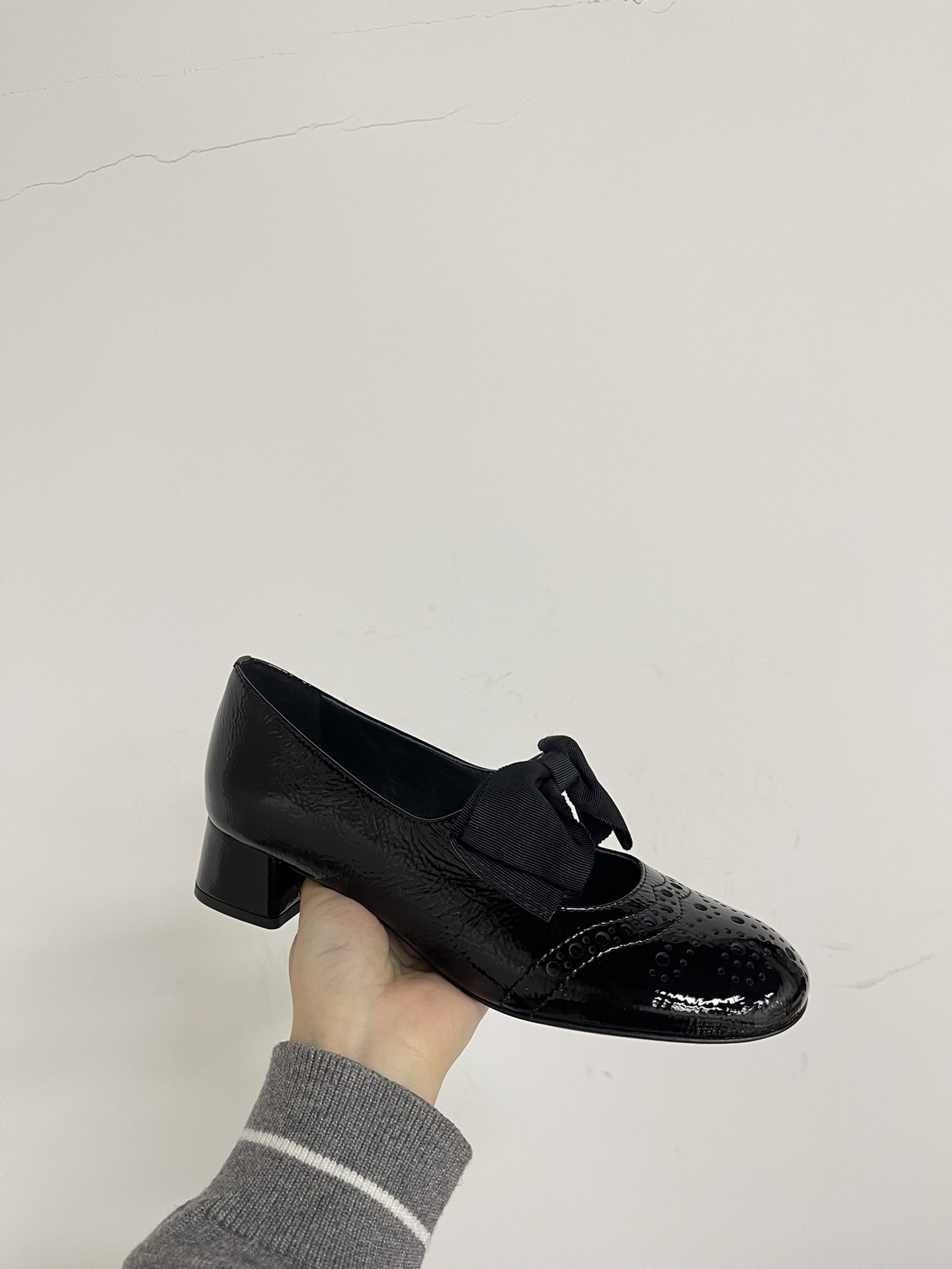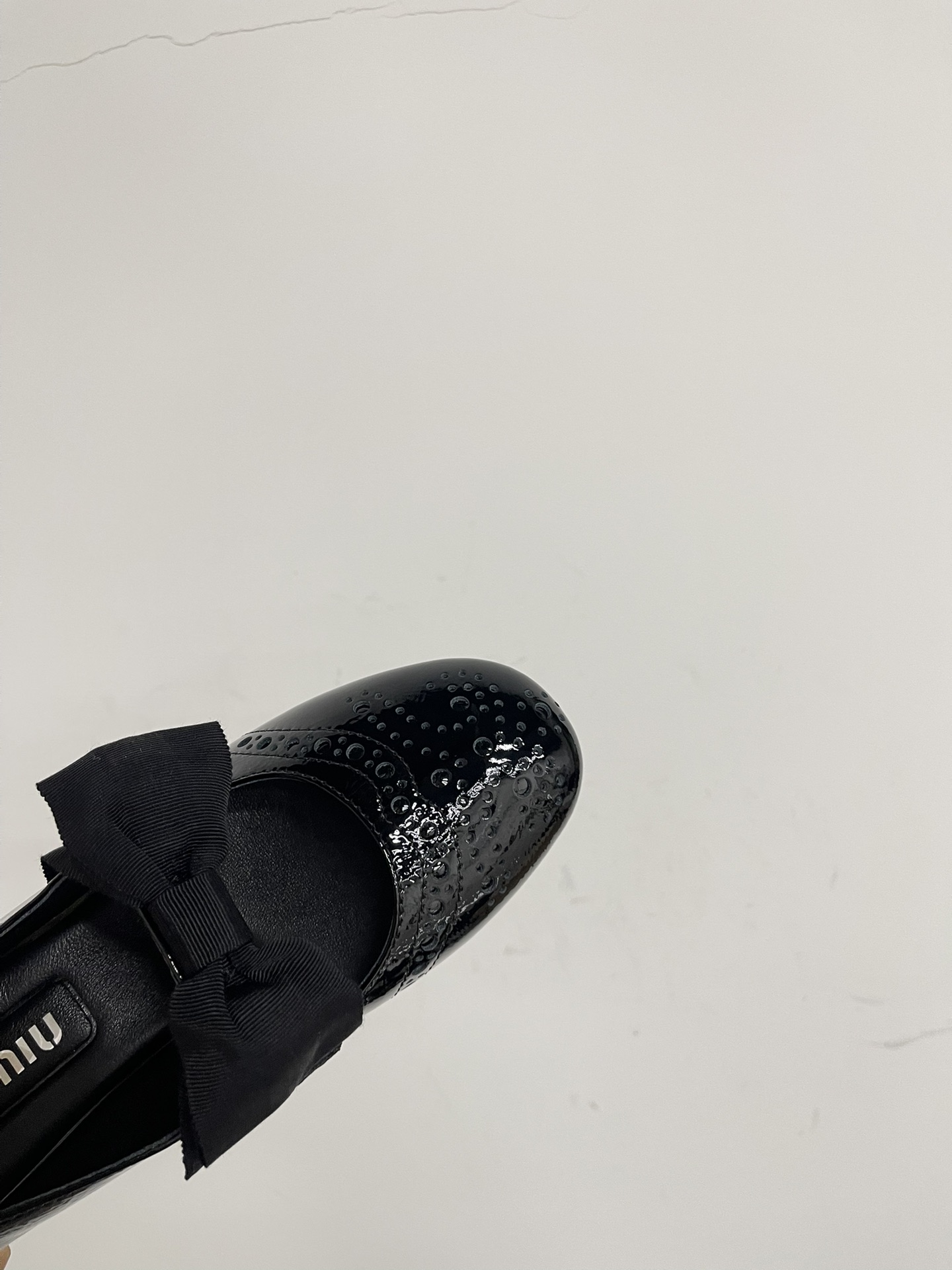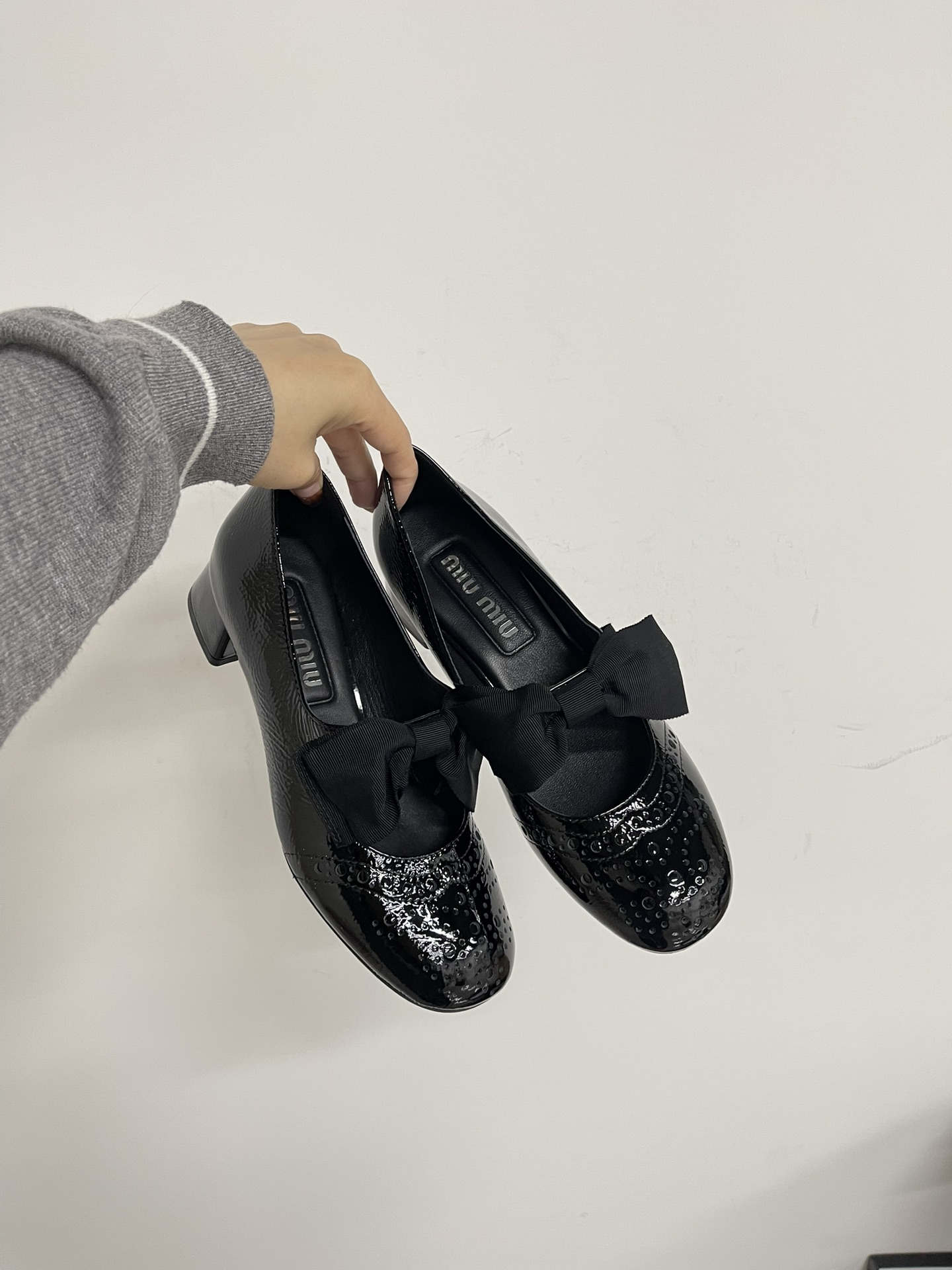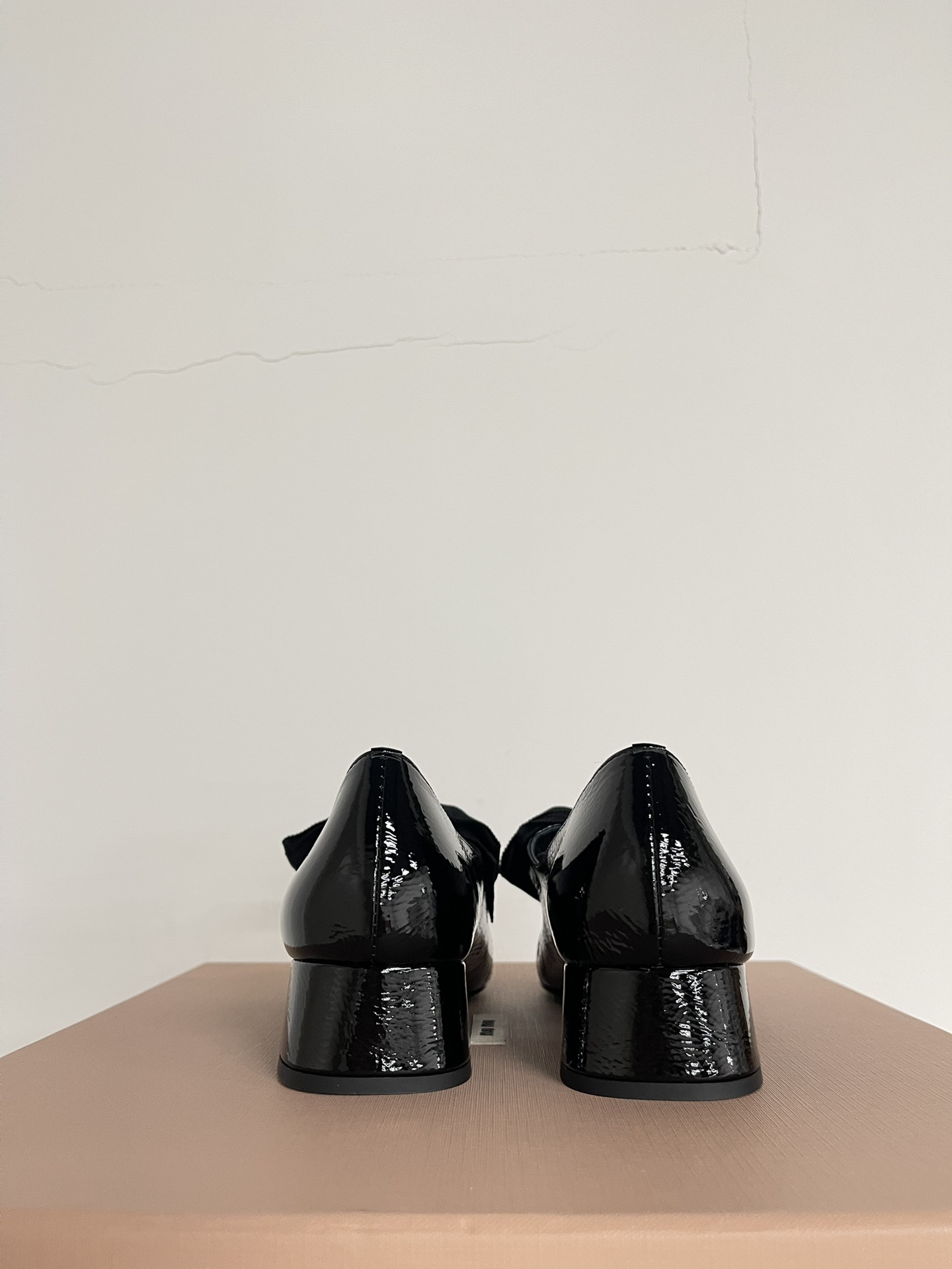 미우미우 페이턴트 가죽 리본 펌프스 5I363E