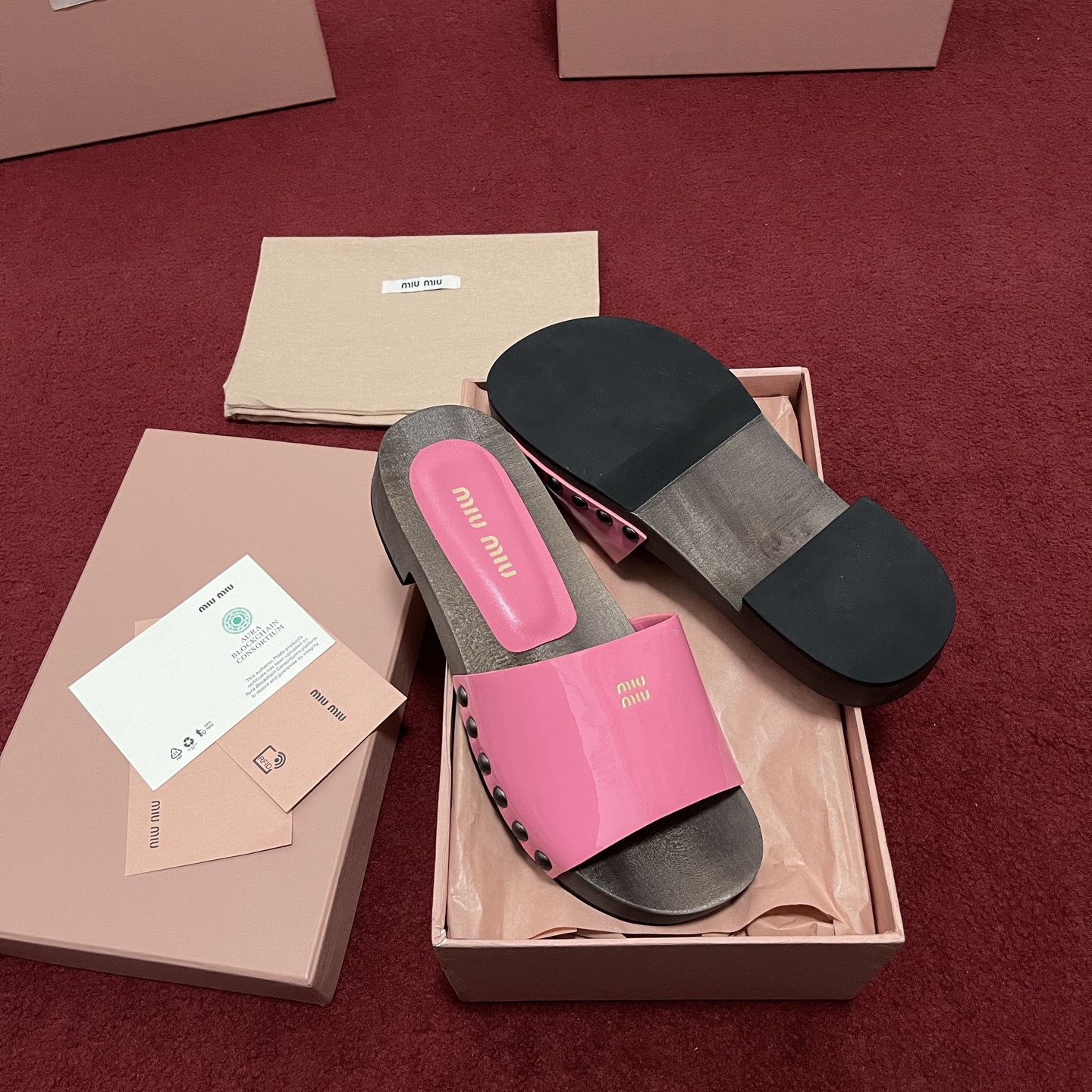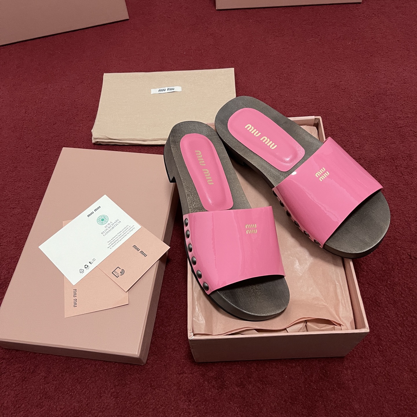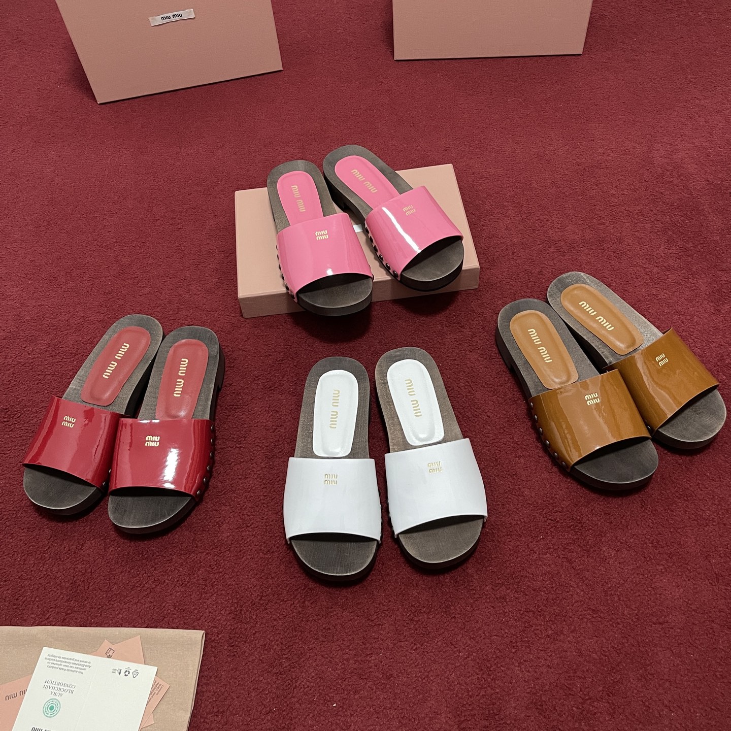 미우미우 페이턴트 가죽 클로그 슬리퍼 5Z425E