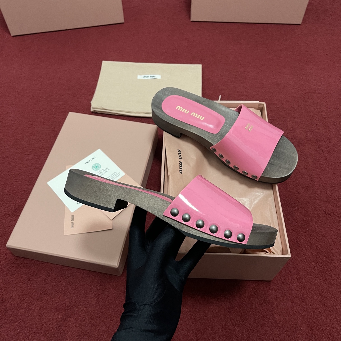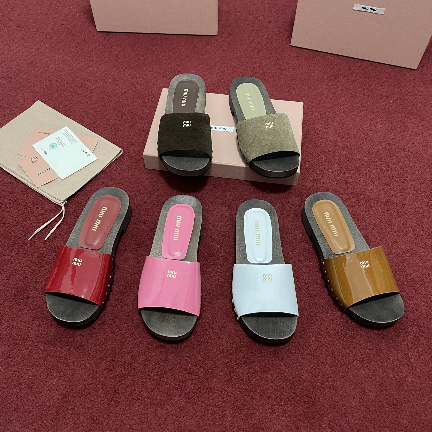 미우미우 페이턴트 가죽 클로그 슬리퍼 5Z425E 수량