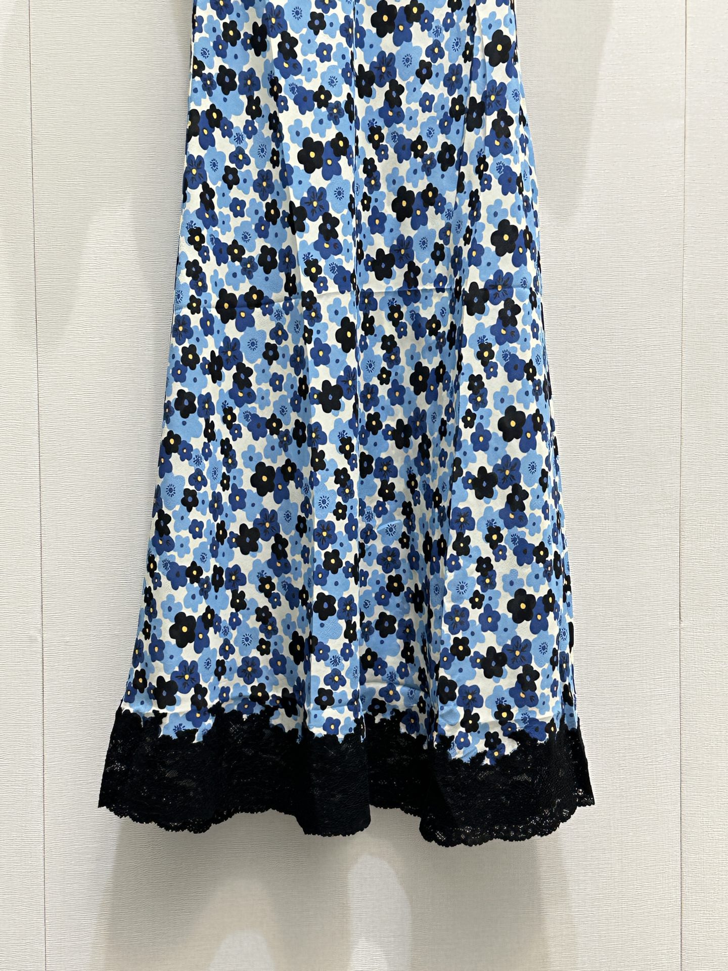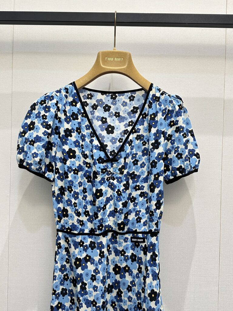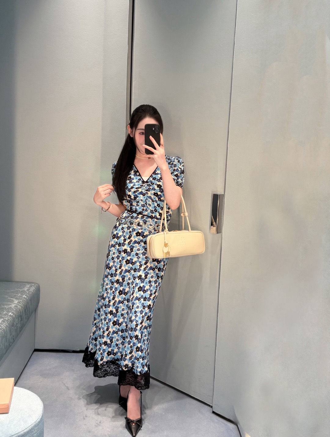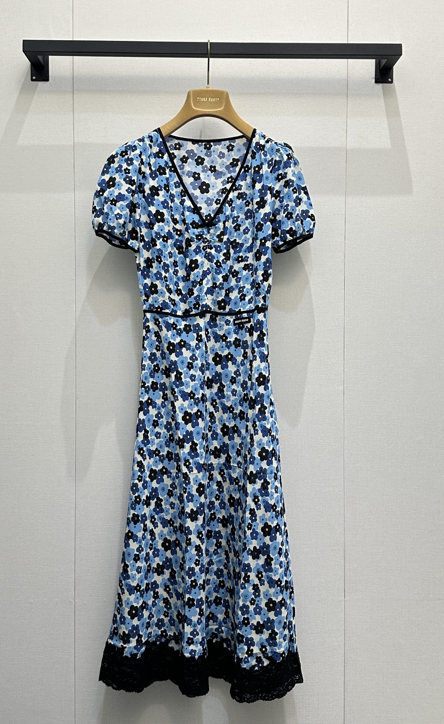 미우미우 플로럴 레이스 장식 실크 원피스 MF6212