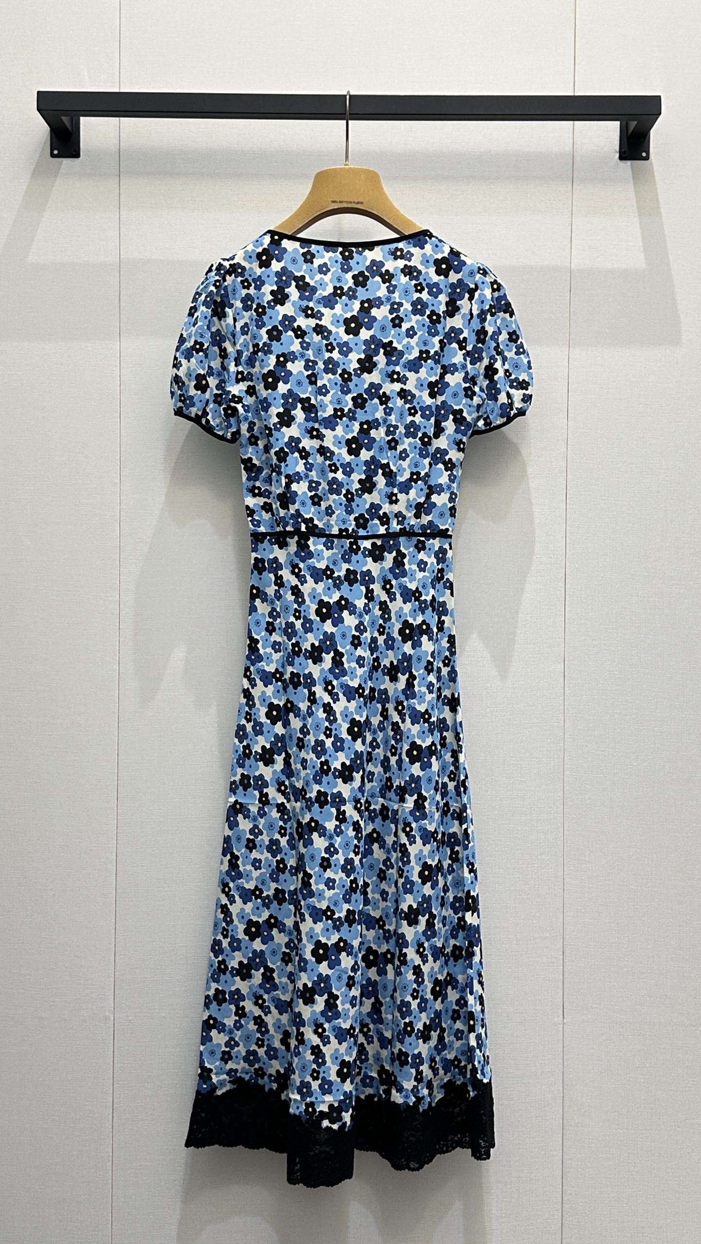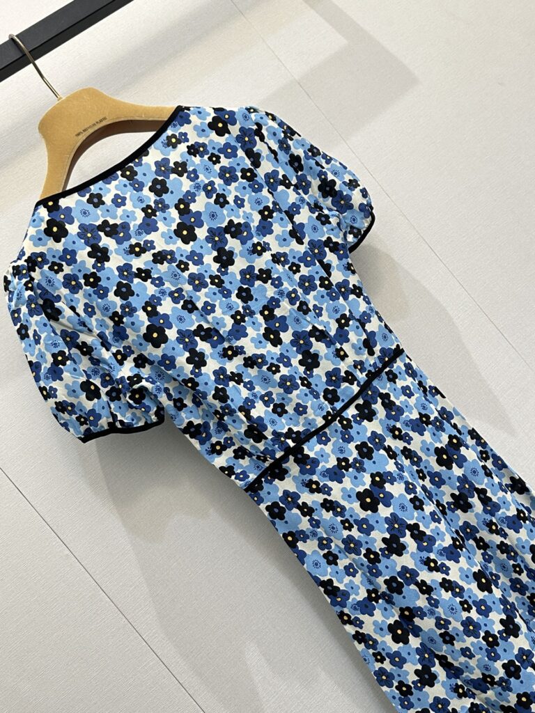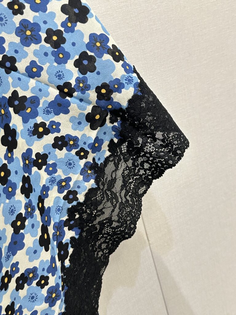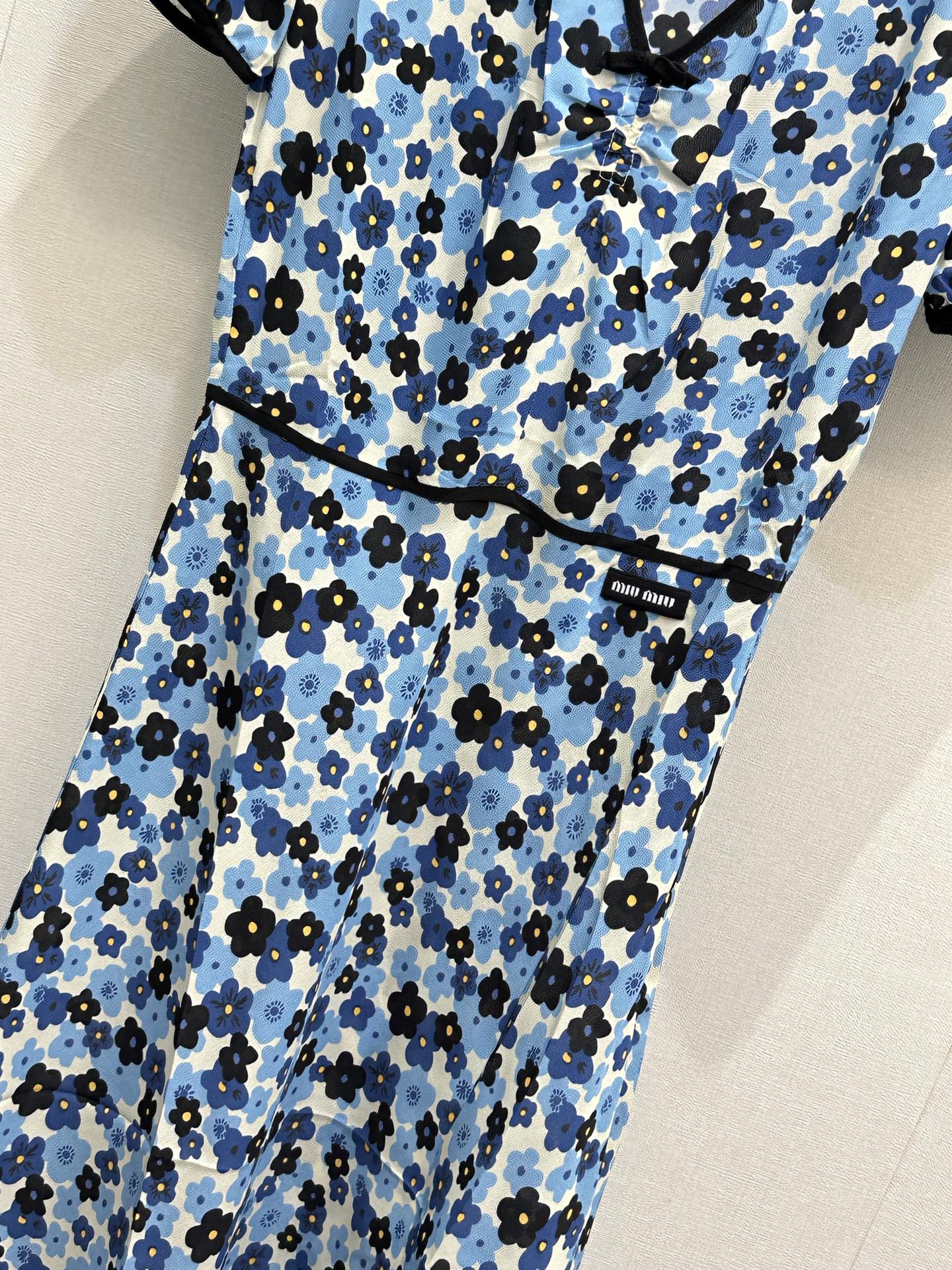 미우미우 플로럴 레이스 장식 실크 원피스 MF6212