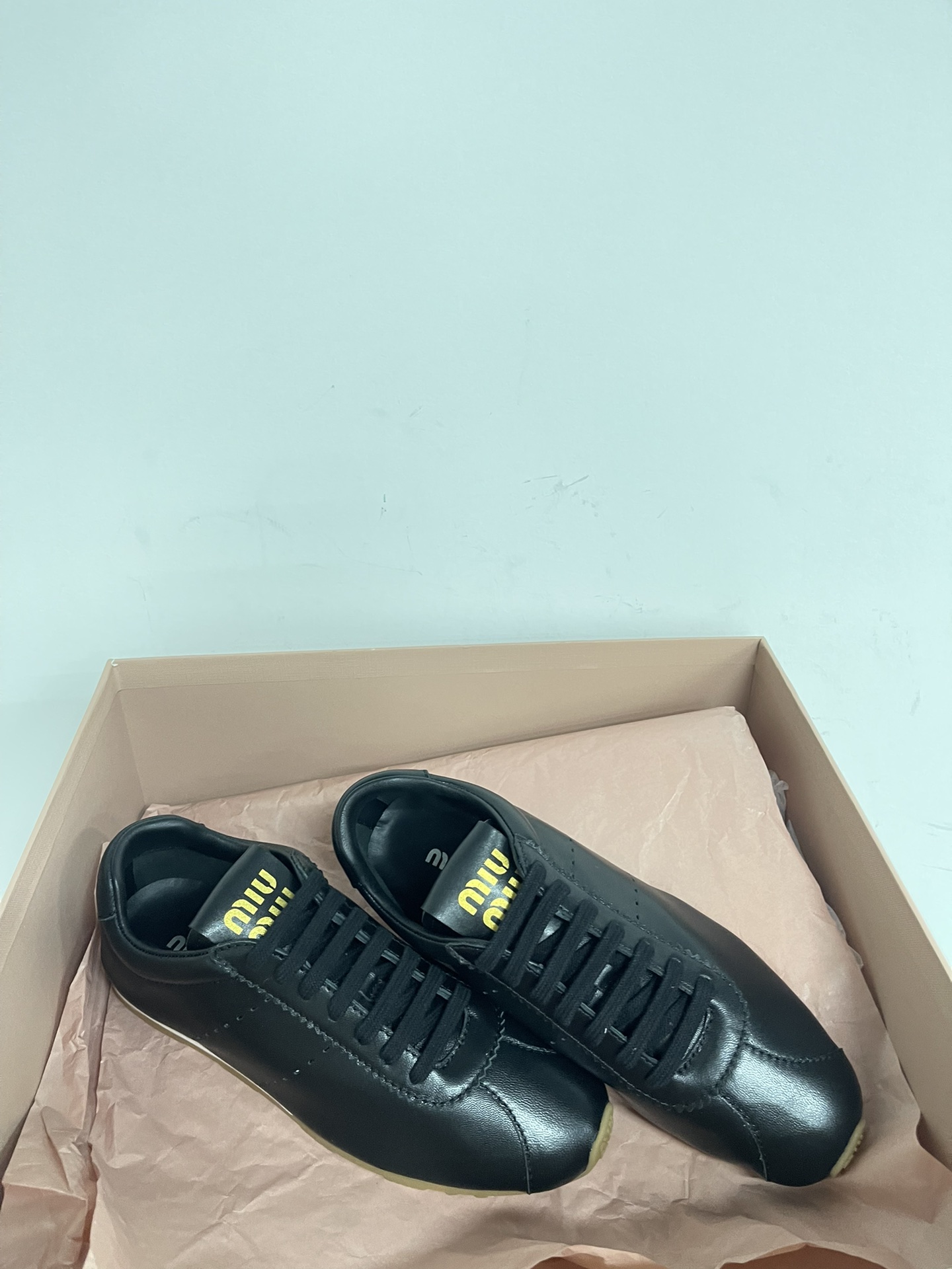 미우미우 플룸 나파 가죽 및 스웨이드 스니커즈 5E114E