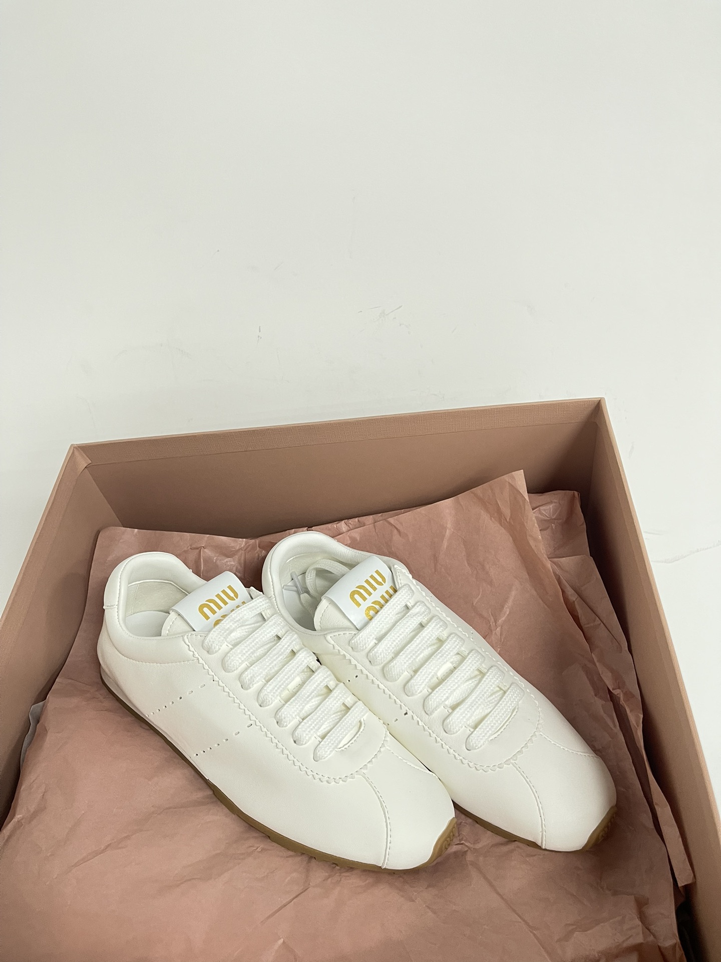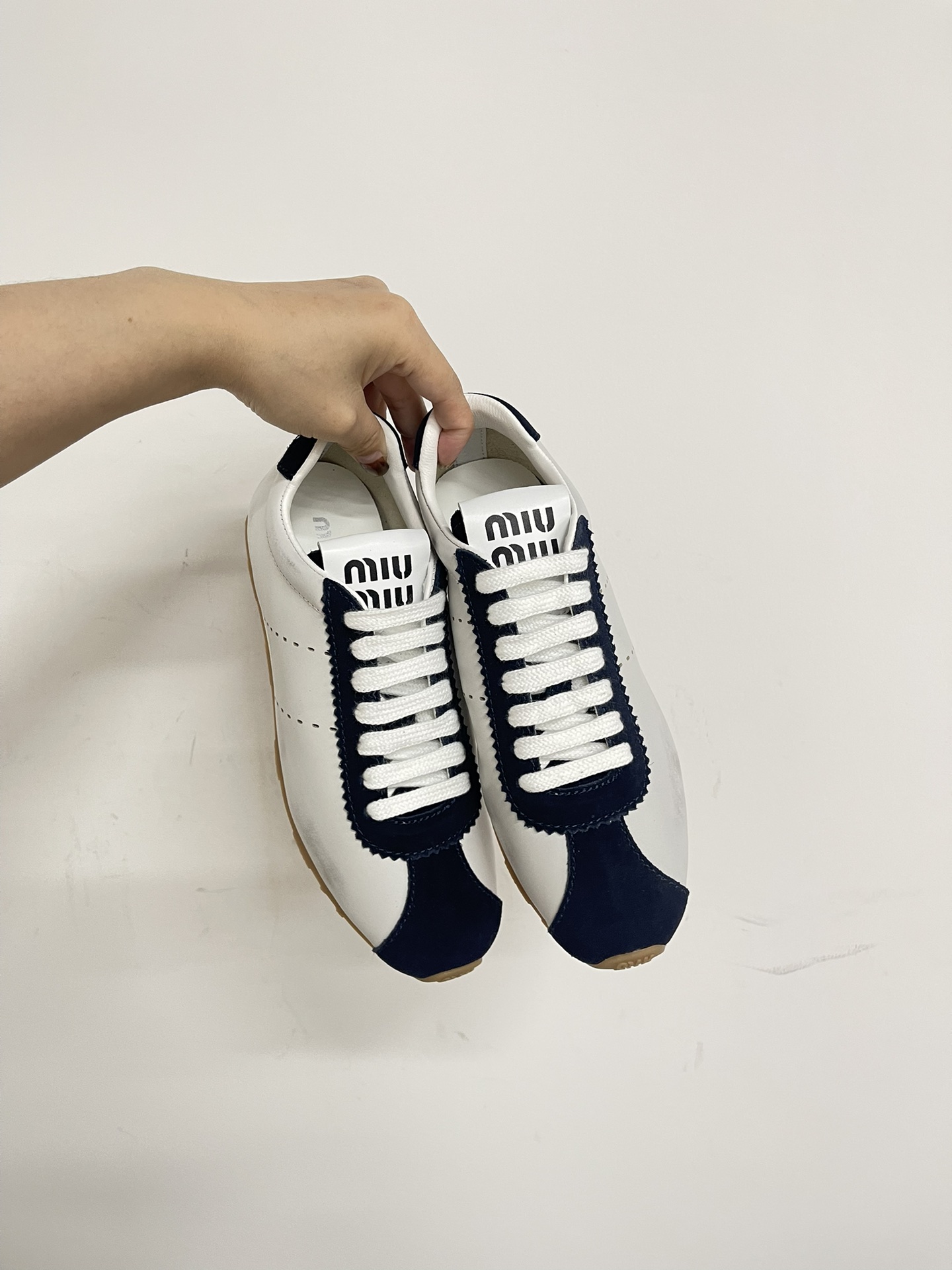 미우미우 플룸 나파 가죽 및 스웨이드 스니커즈 5E114E 수량