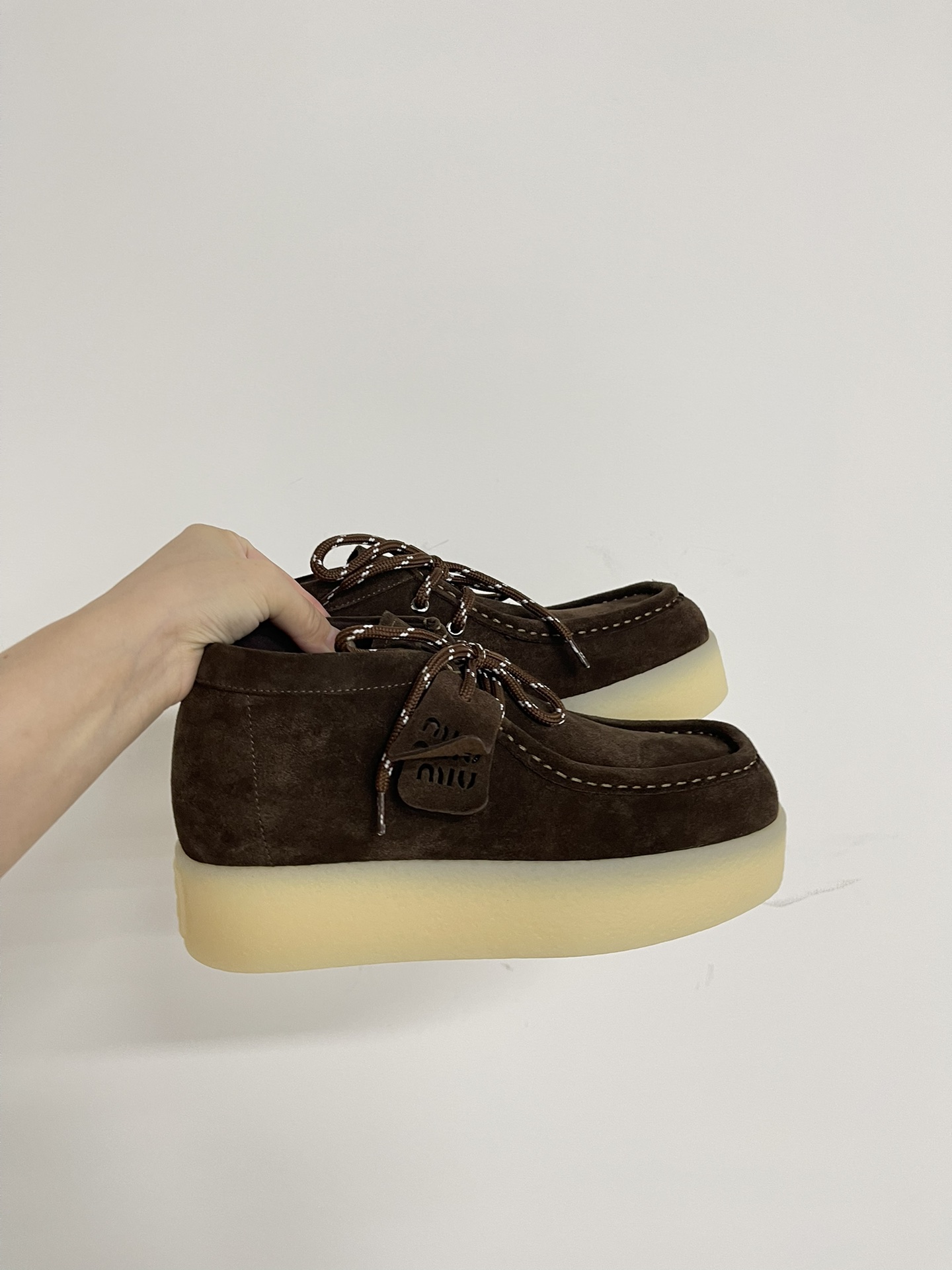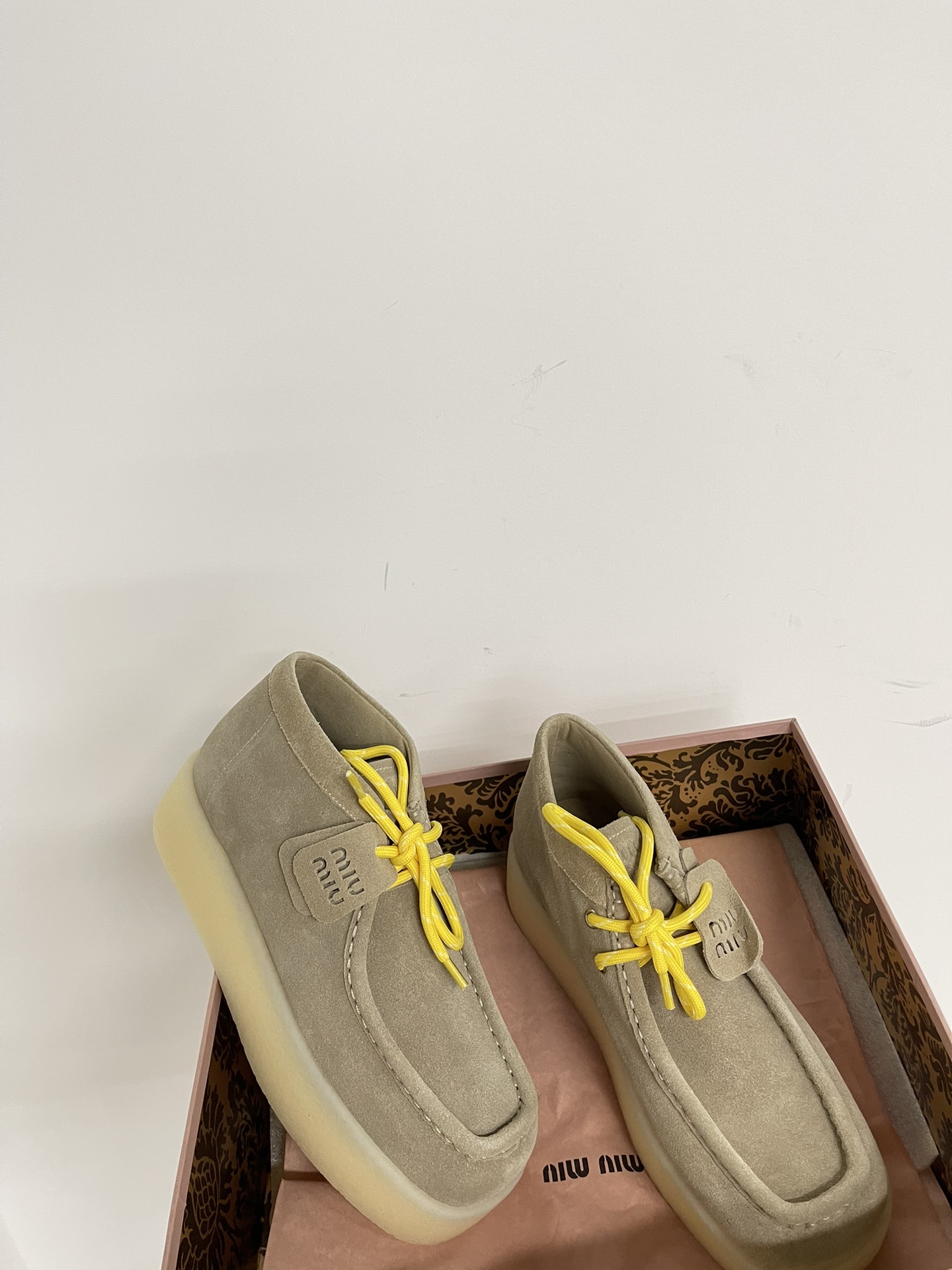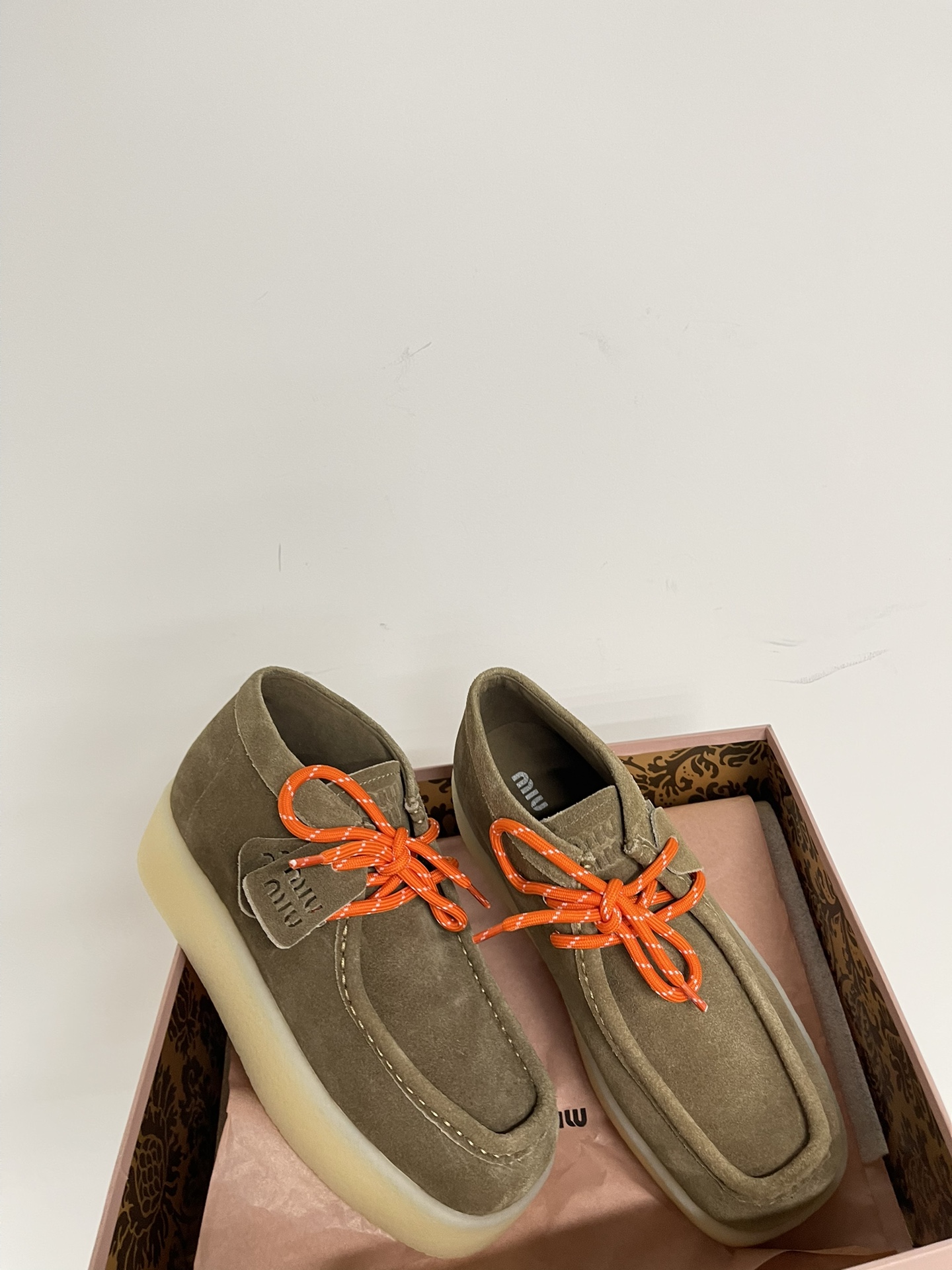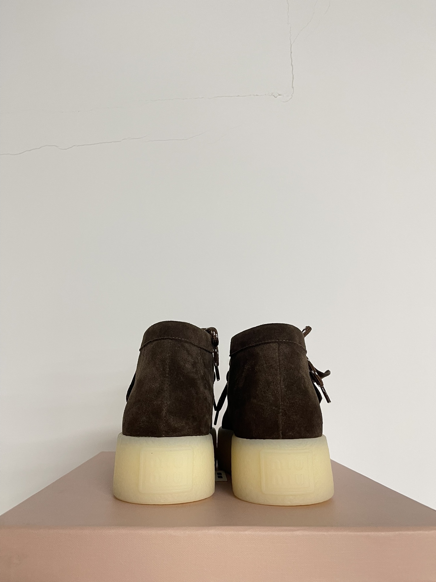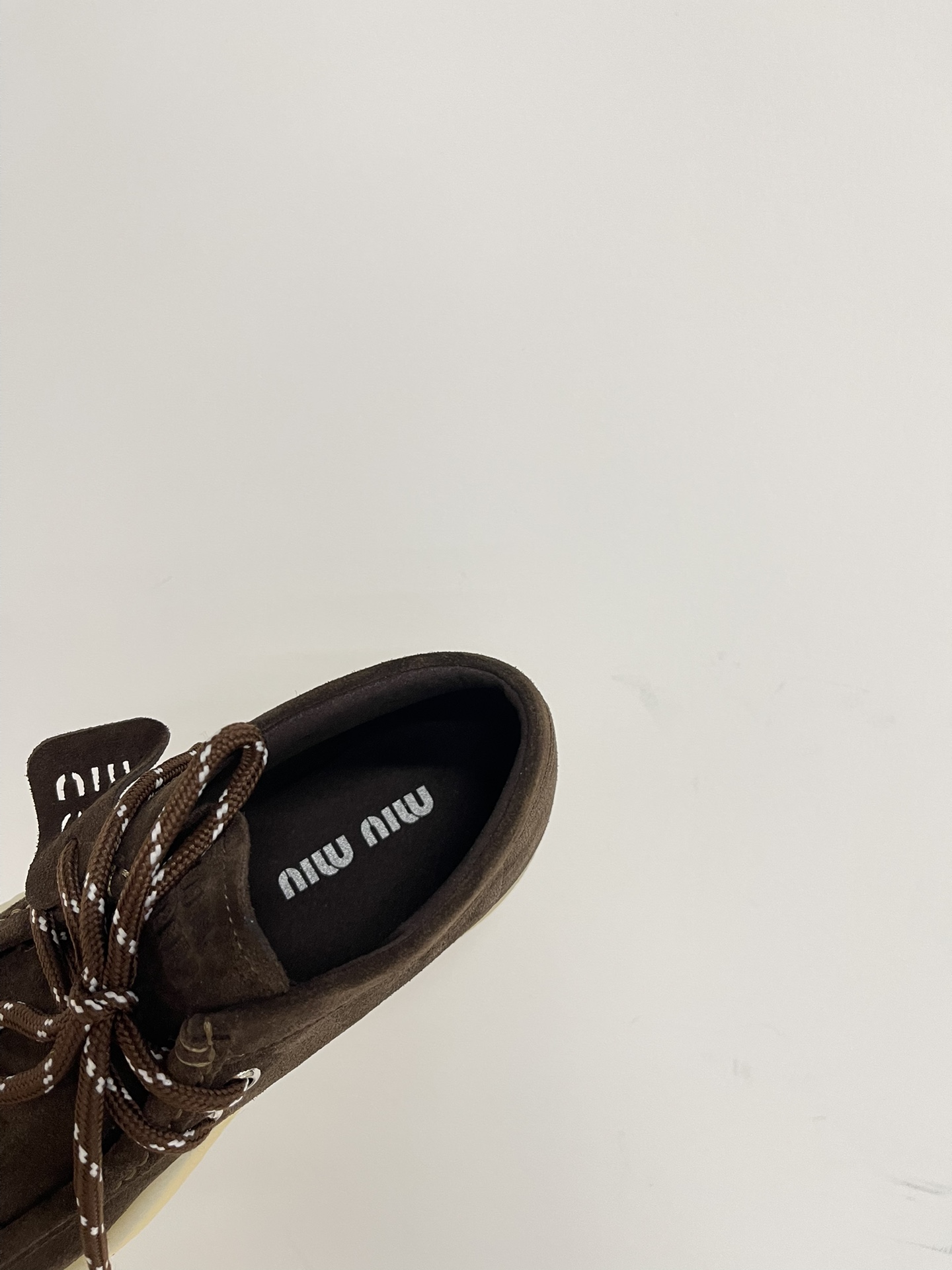 미우미우 24FW 스웨이드 레더 델라베 앵클 부츠 5T263E