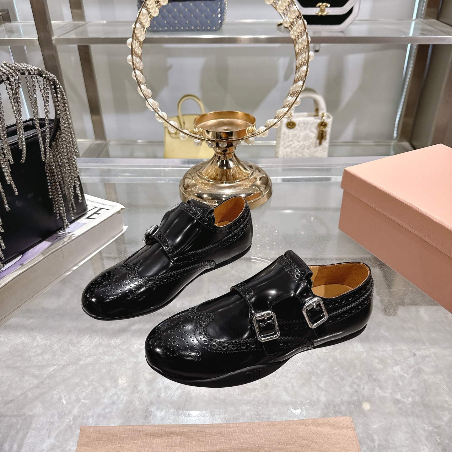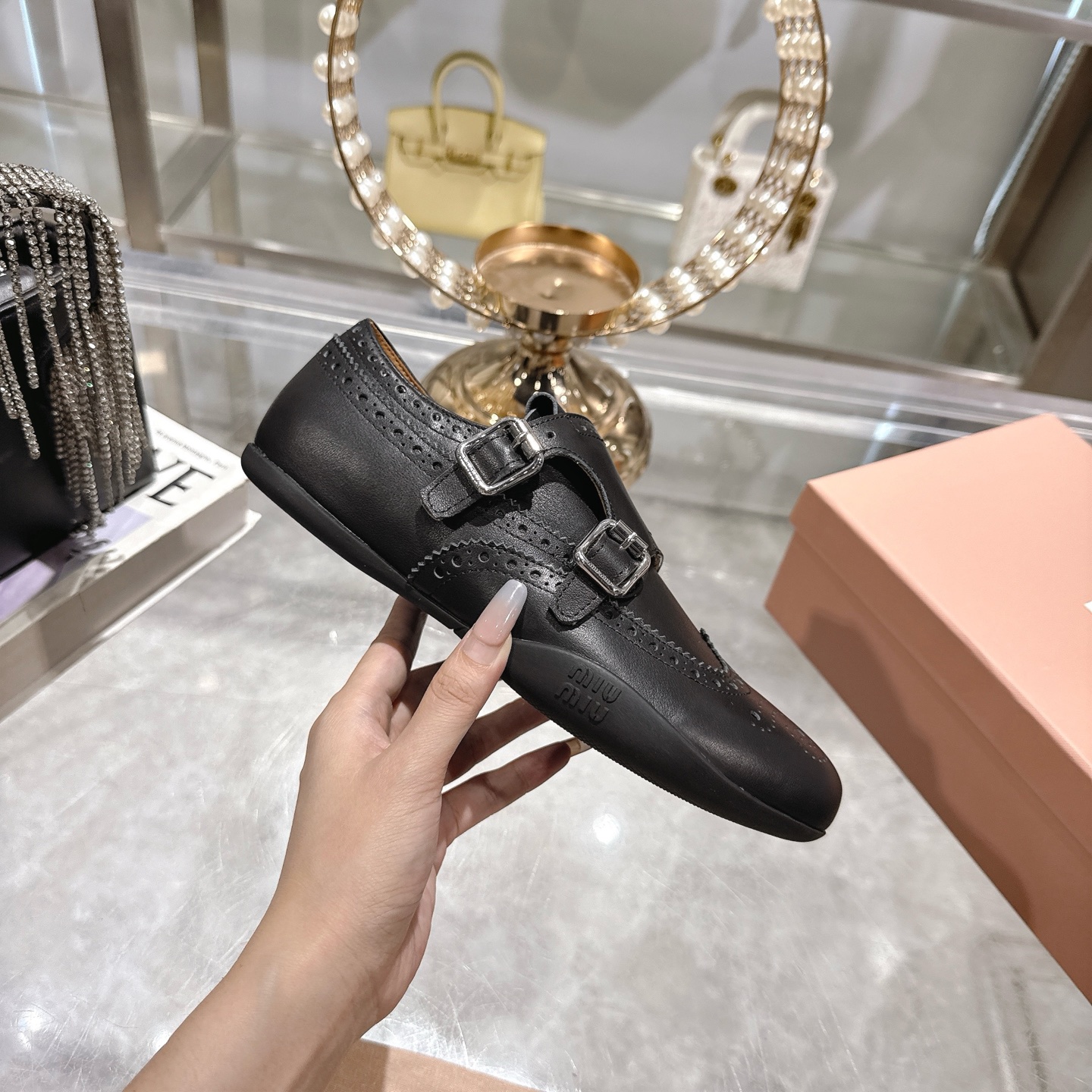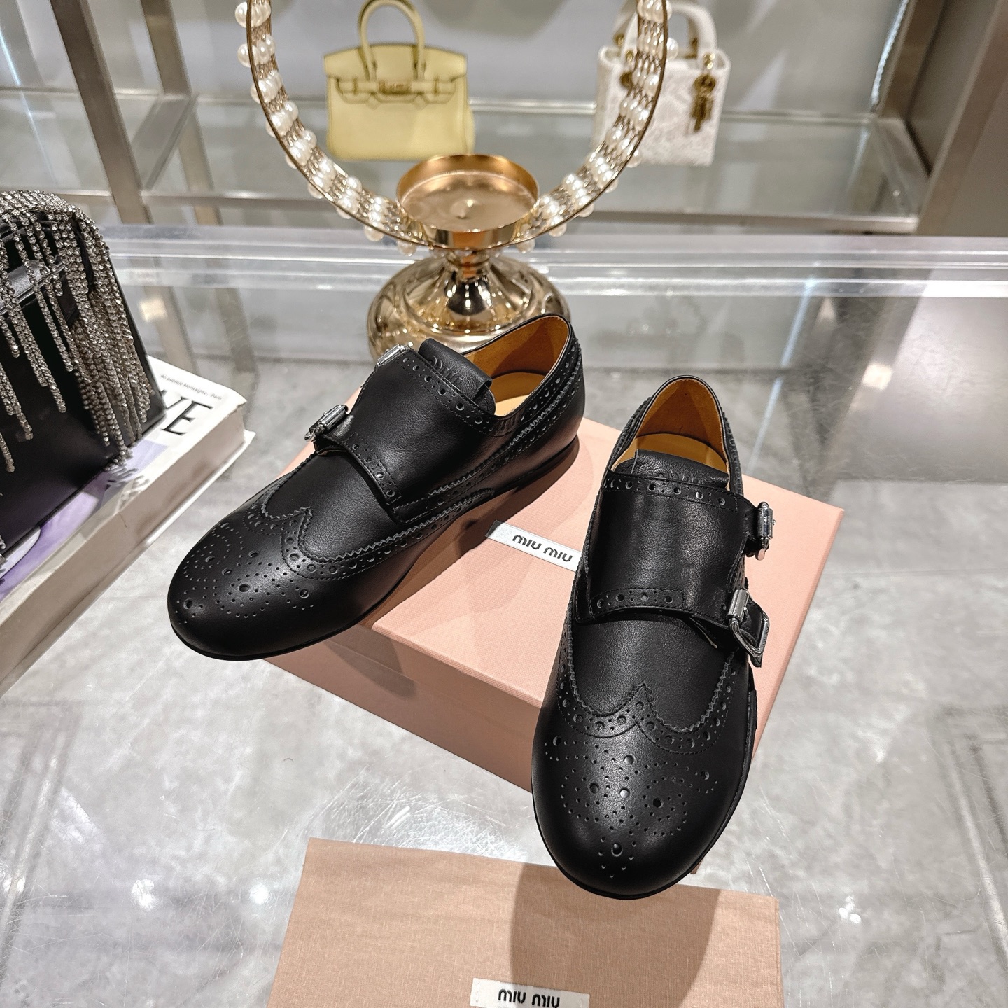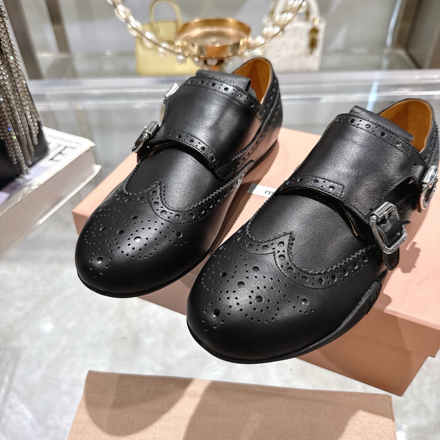 미우미우 25FW 브로그 레더 버클 로퍼 플랫 슈즈 5E510E