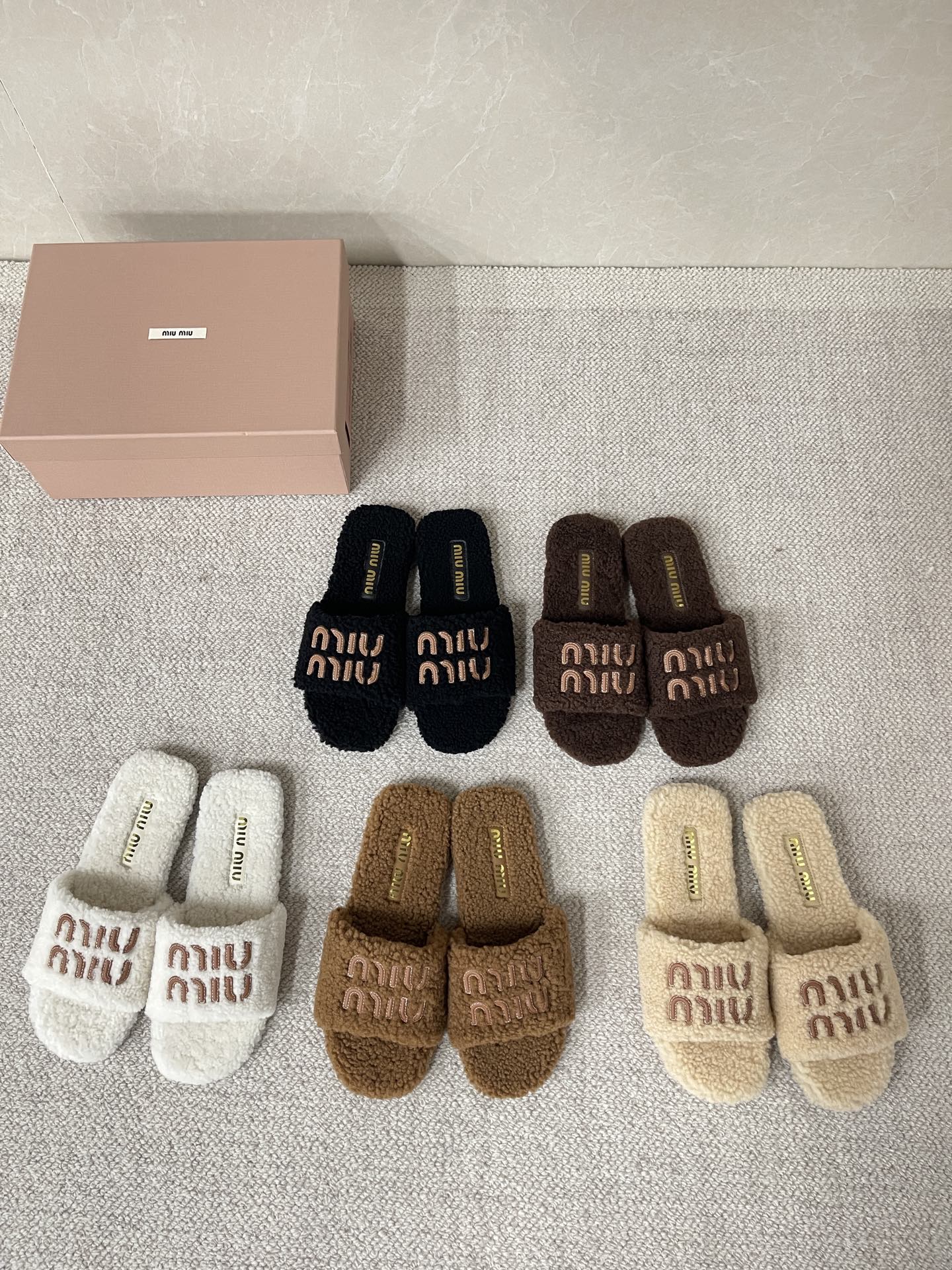 미우미우 25FW 시어링 뮬 샌들 슬리퍼 5XX664