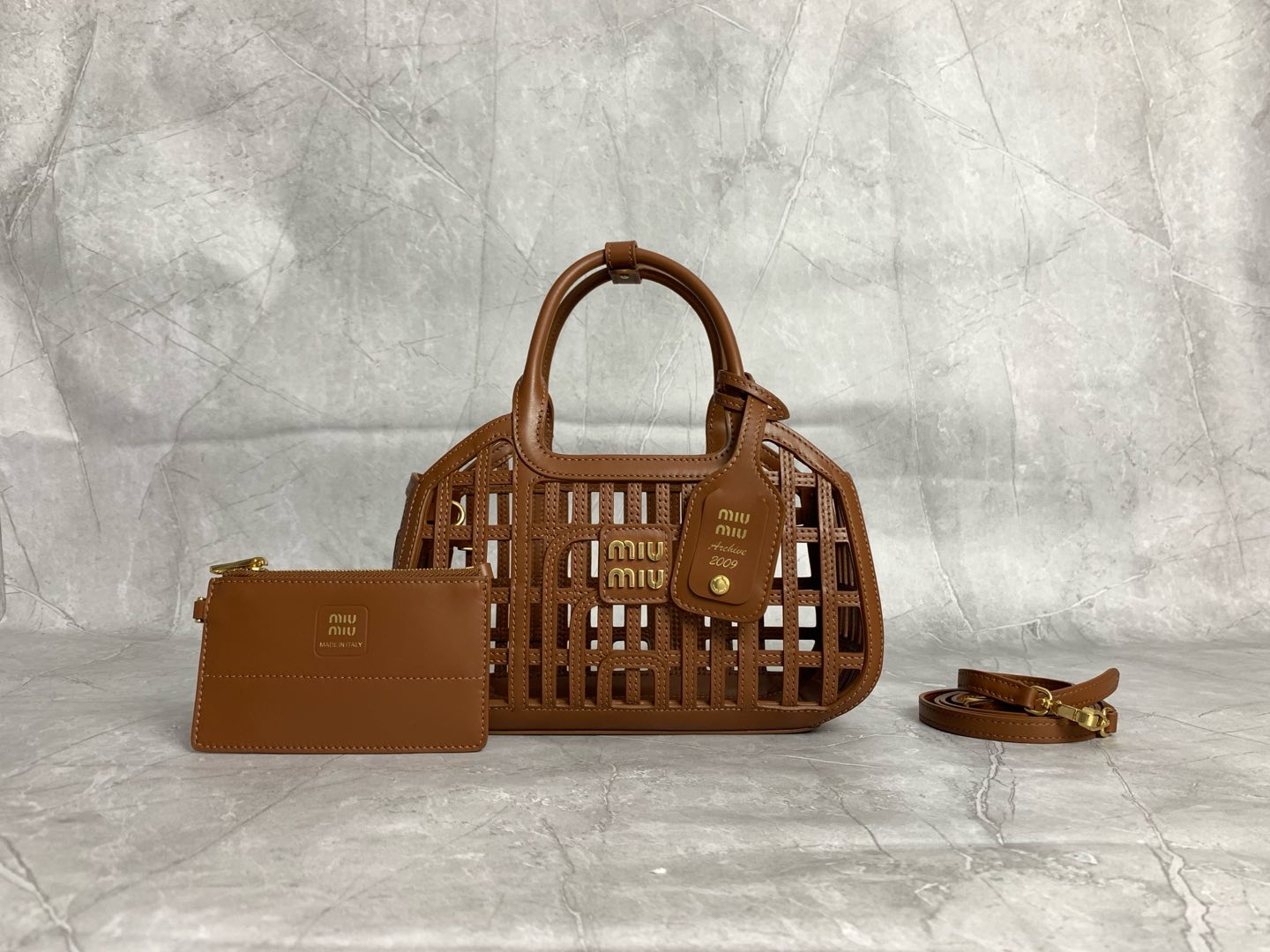 미우미우 25SS 위빙 레더 바스켓 토트백 5BA294