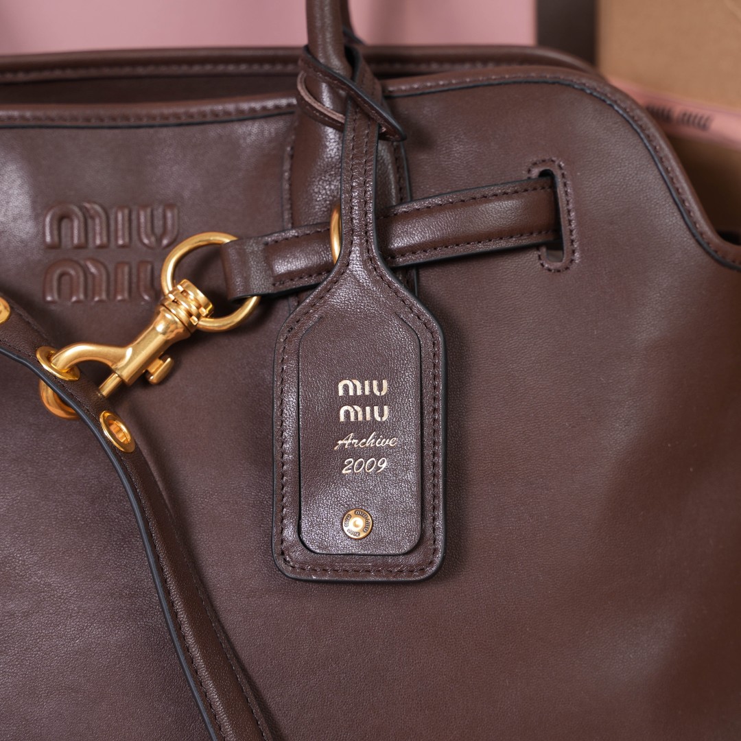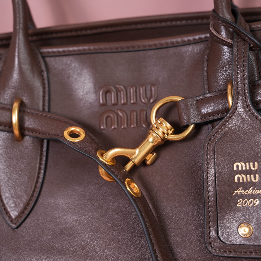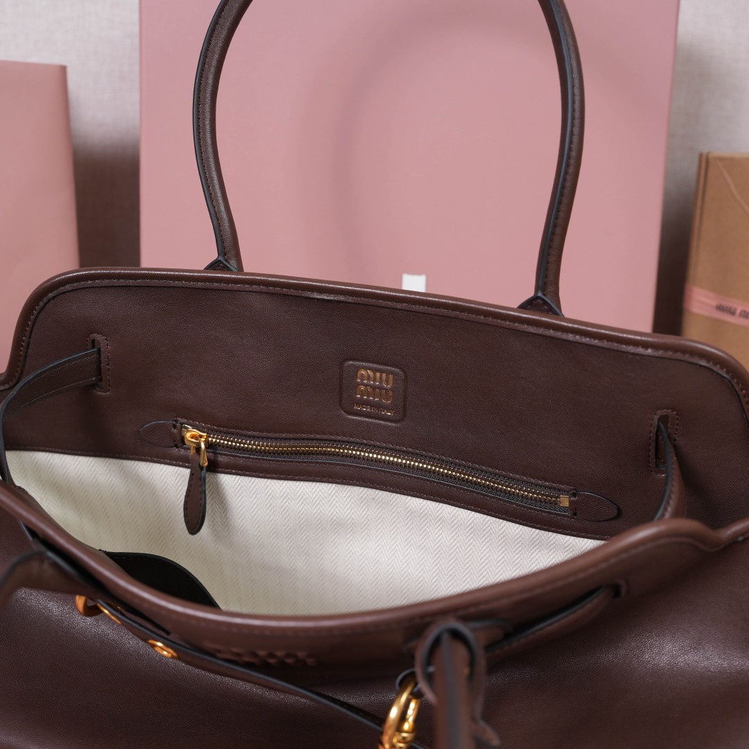 미우미우 FW25 여성 아방뛰르 레더 라지 토트백 5BG310