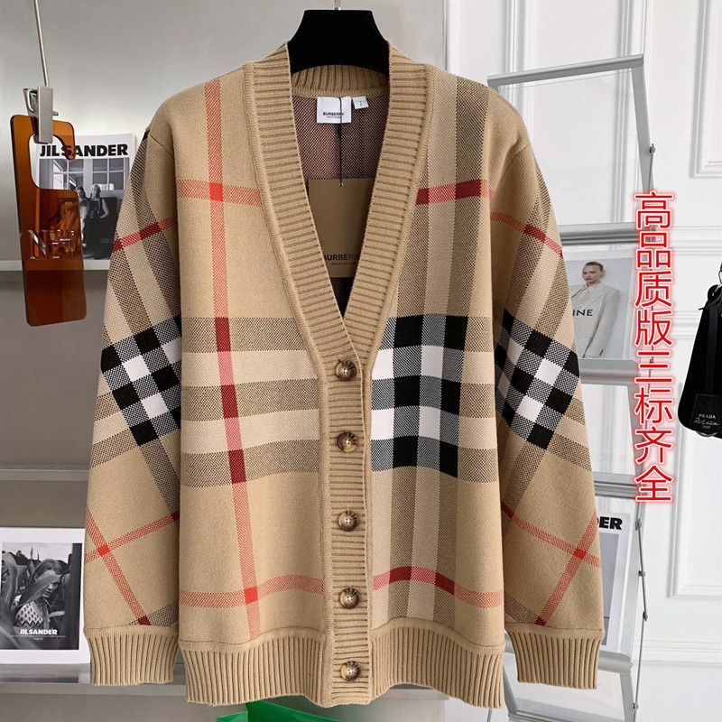 버버리 체크 울 블렌디드 자카드 가디건 80391531