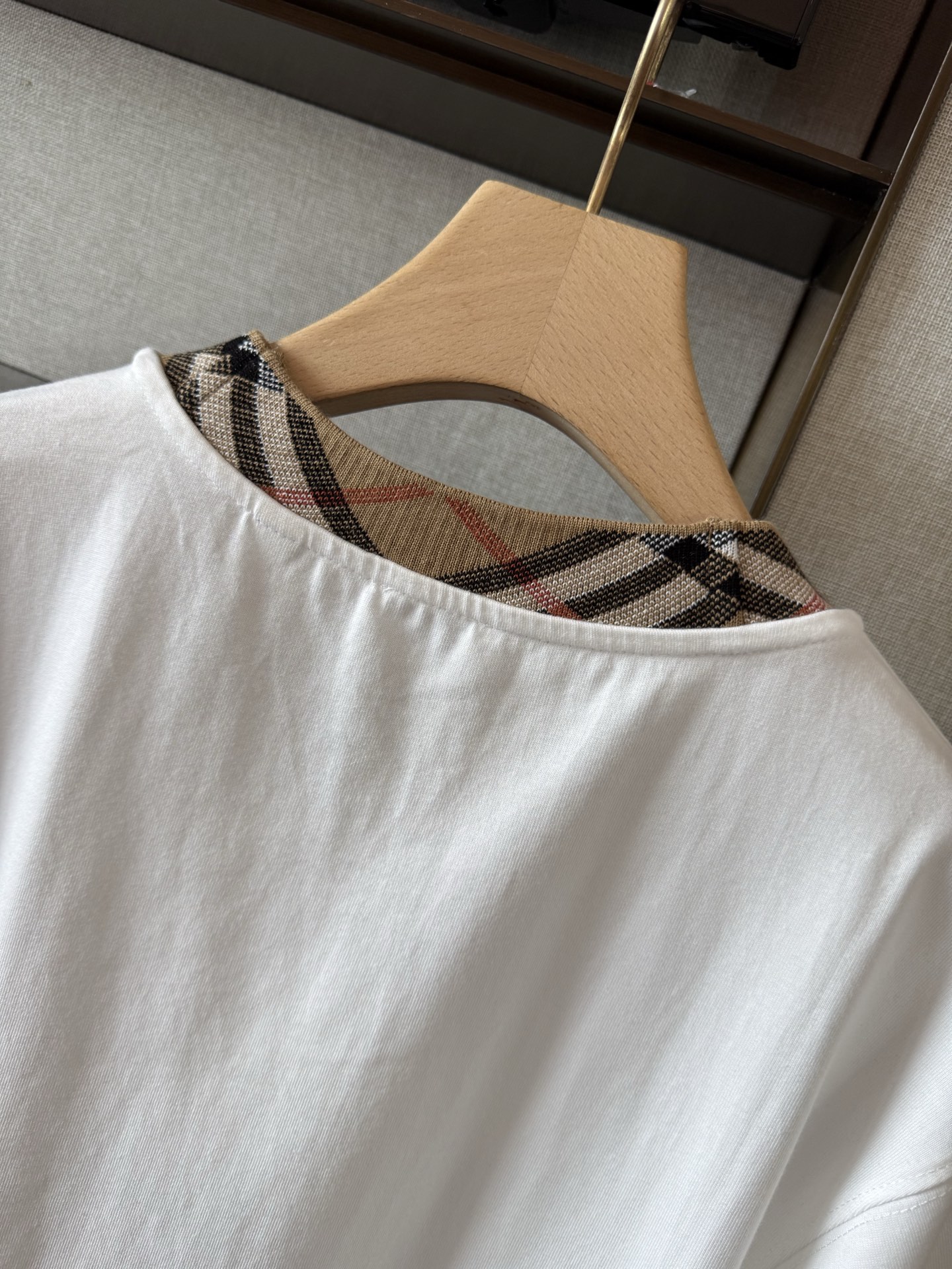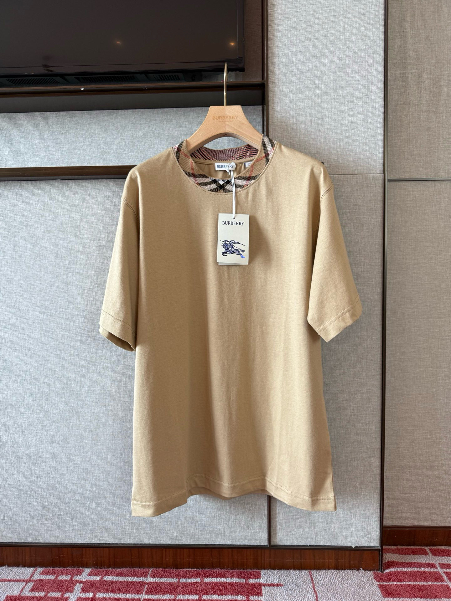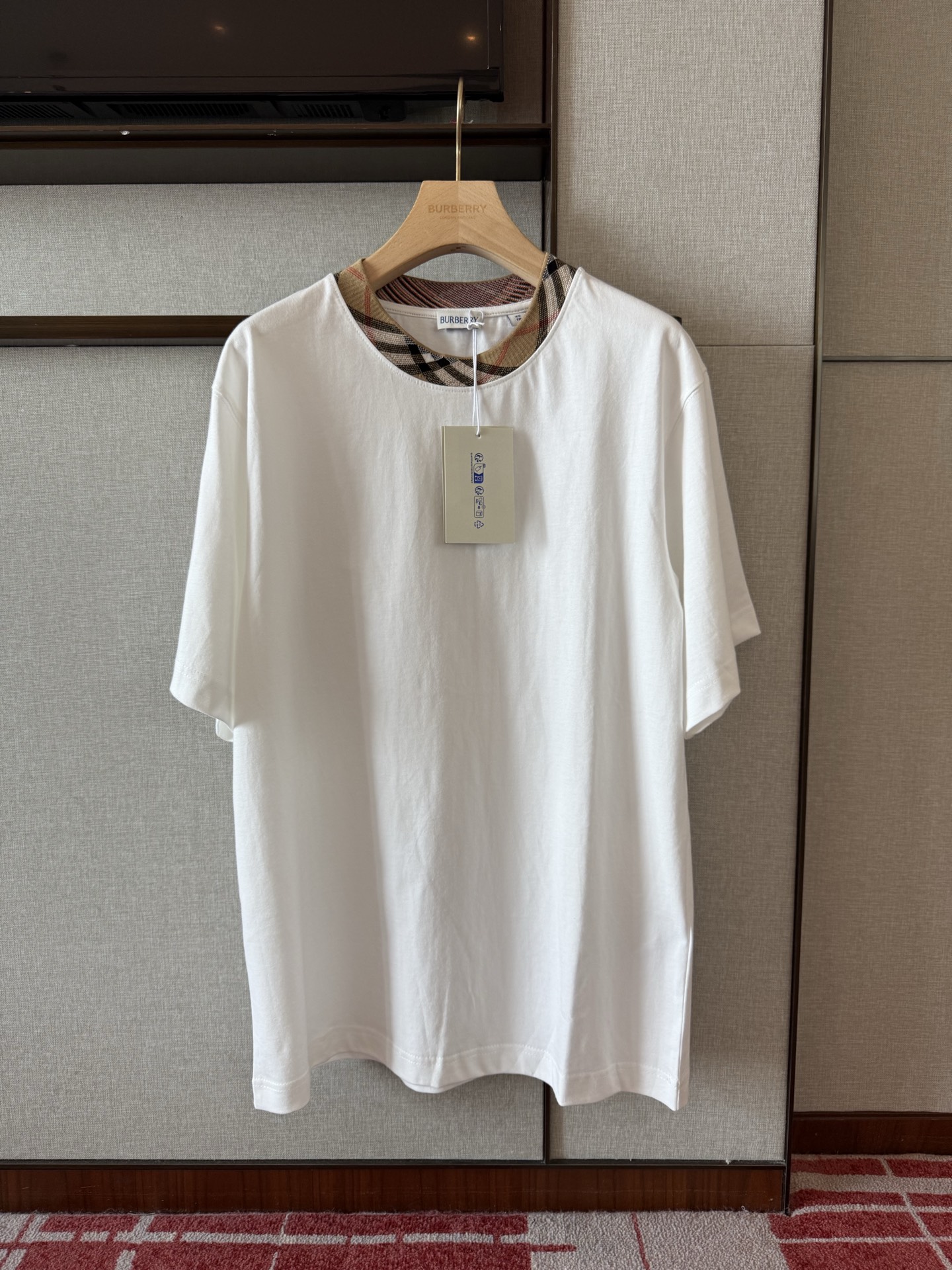 / 버버리 체크 트리밍 코튼 티셔츠 8110100