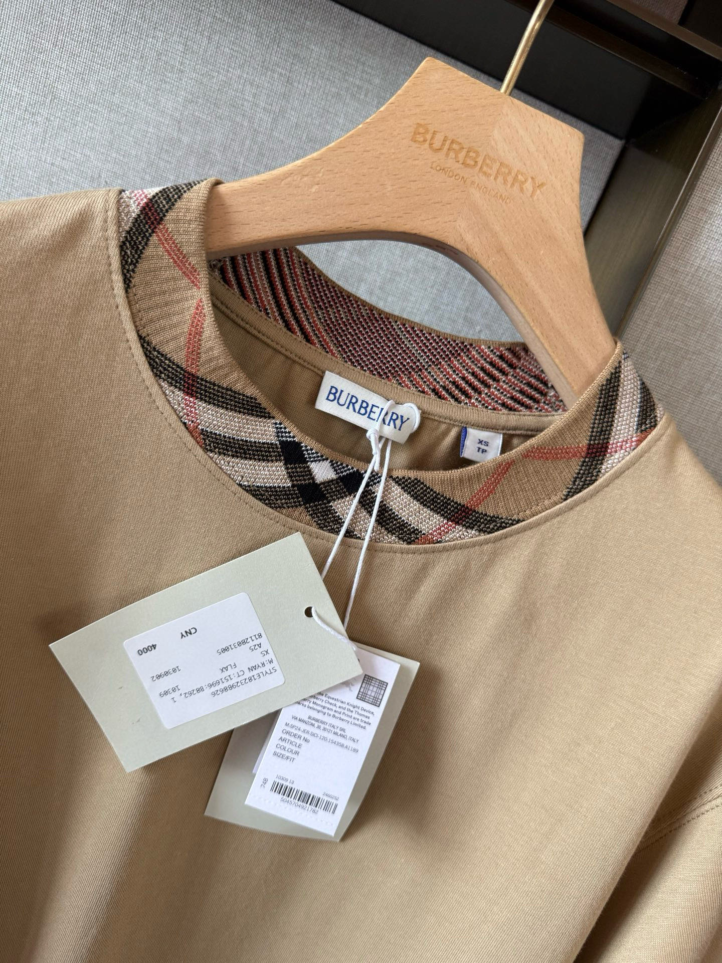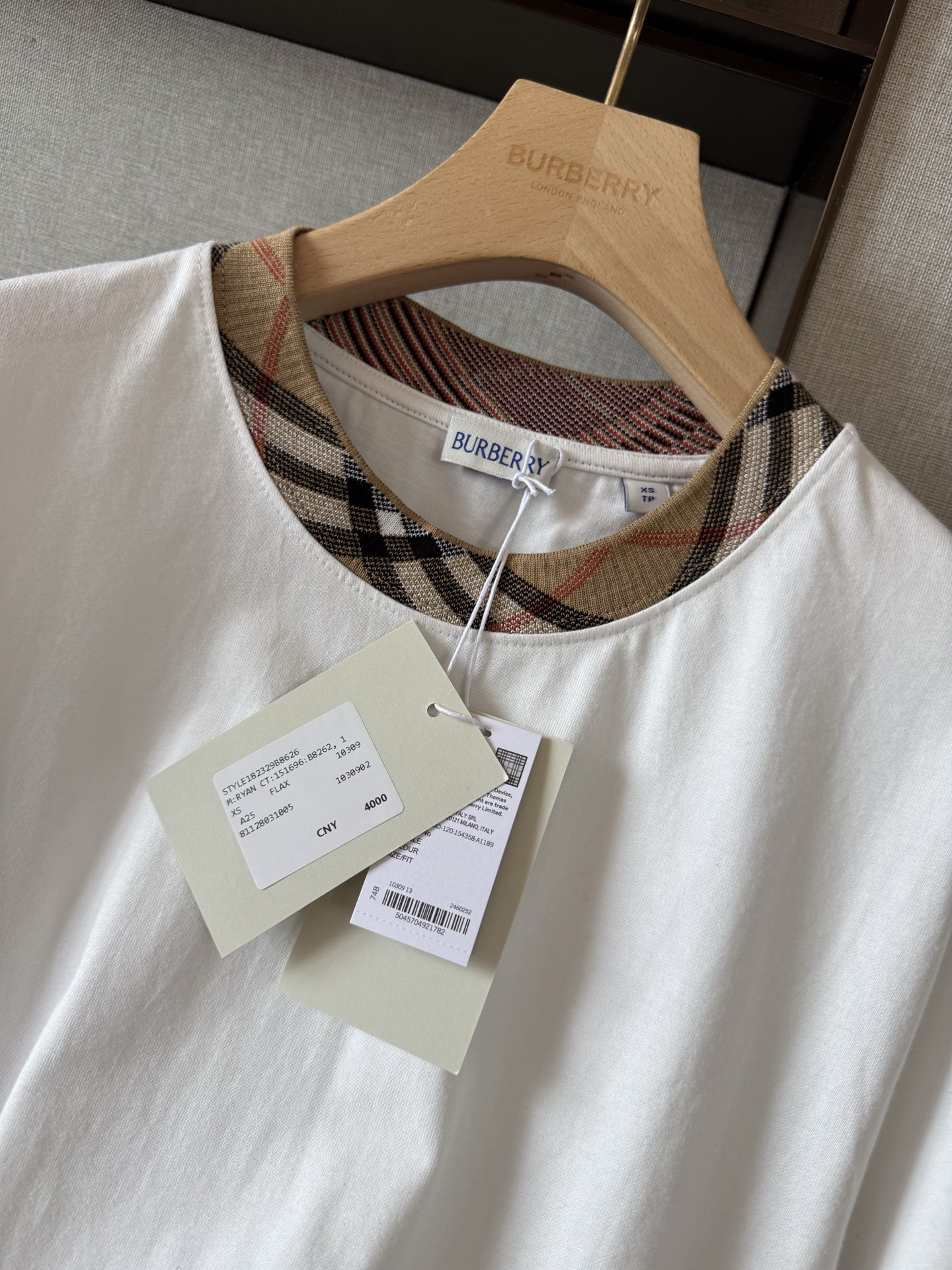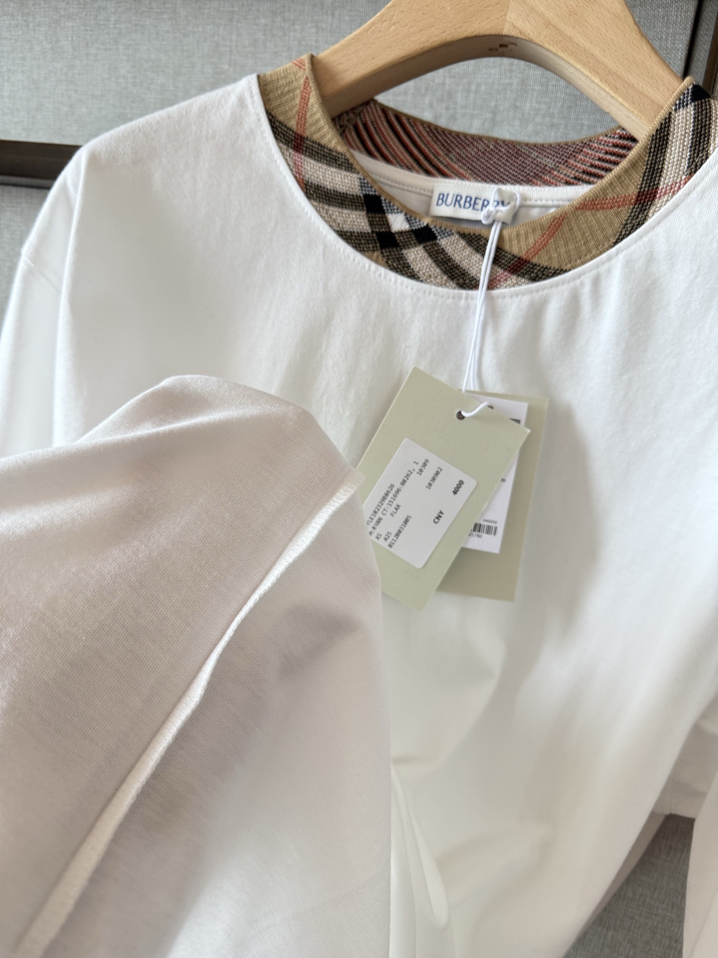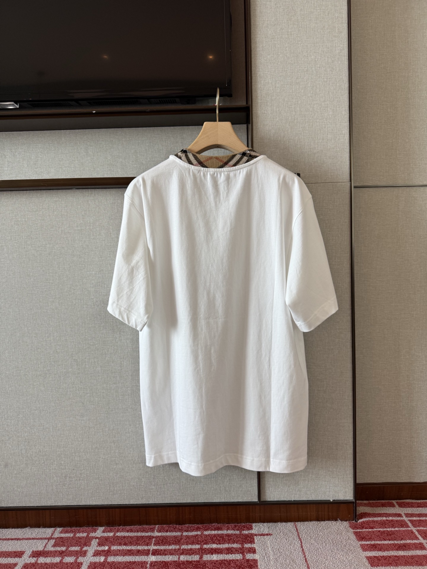 / 버버리 체크 트리밍 코튼 티셔츠 8110100