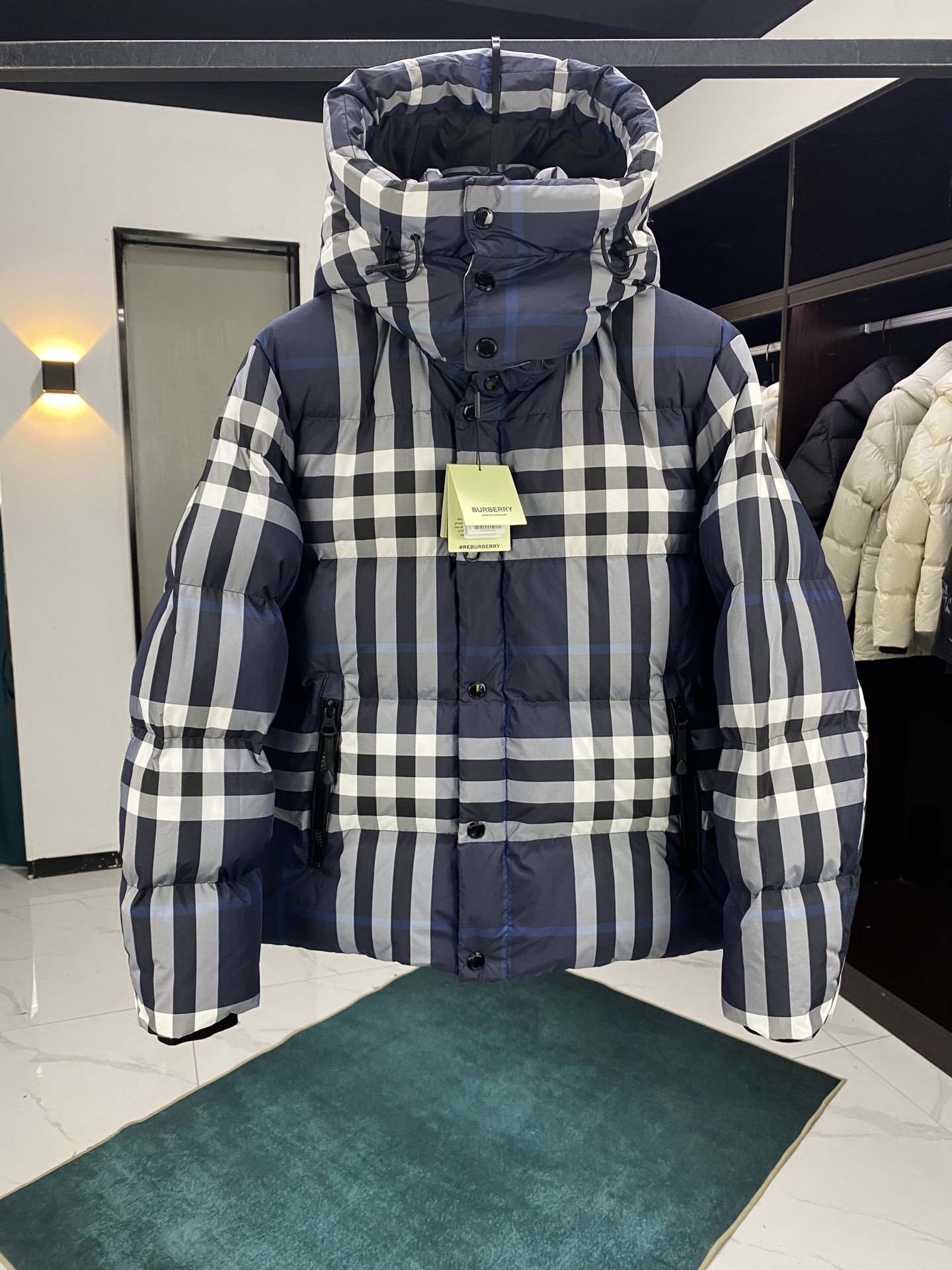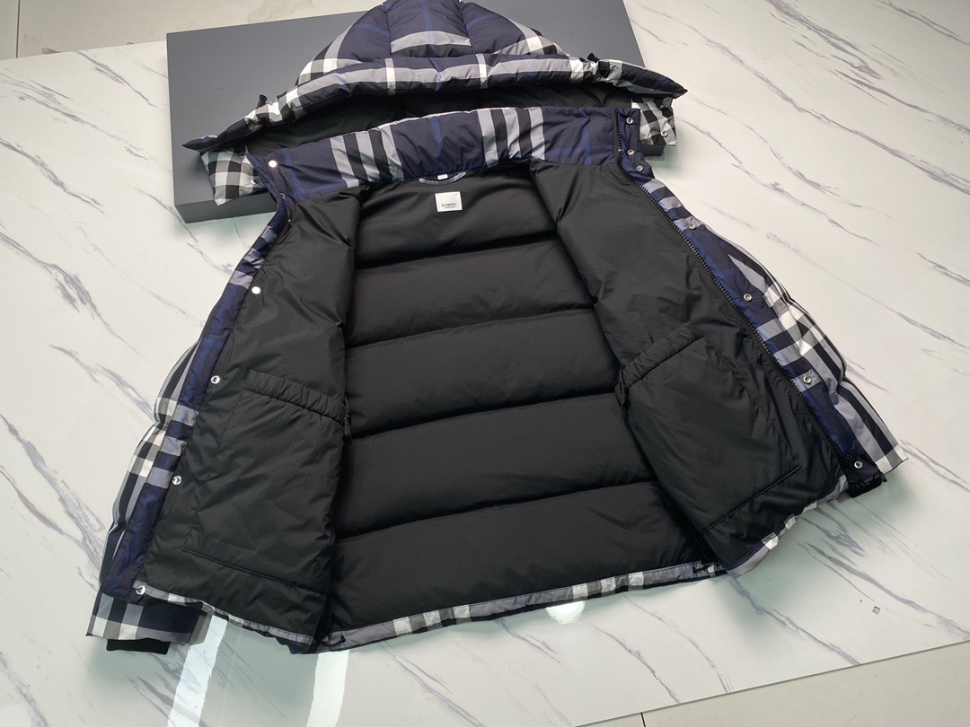 / 버버리 후드 체크 패딩 자켓 네이비블루 8059212