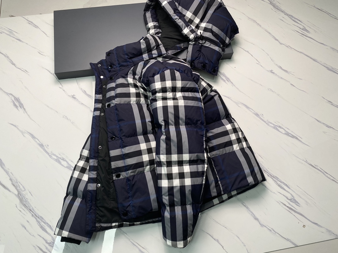 버버리 후드 체크 패딩 자켓 네이비블루 8059212
