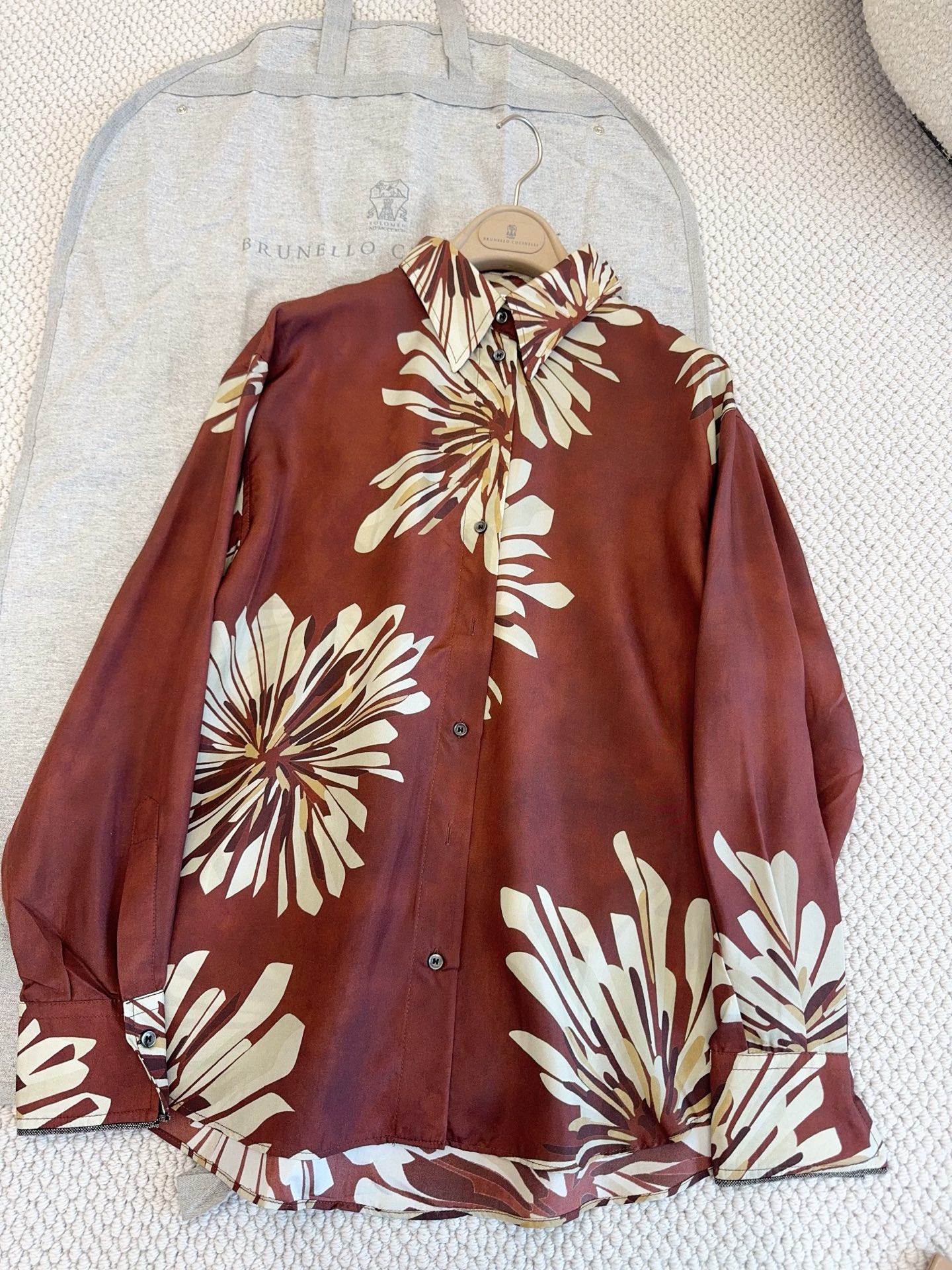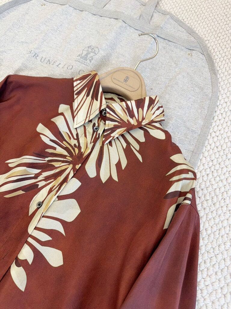 브루넬로쿠치넬리 플로럴 클래식 칼라 실크 셔츠