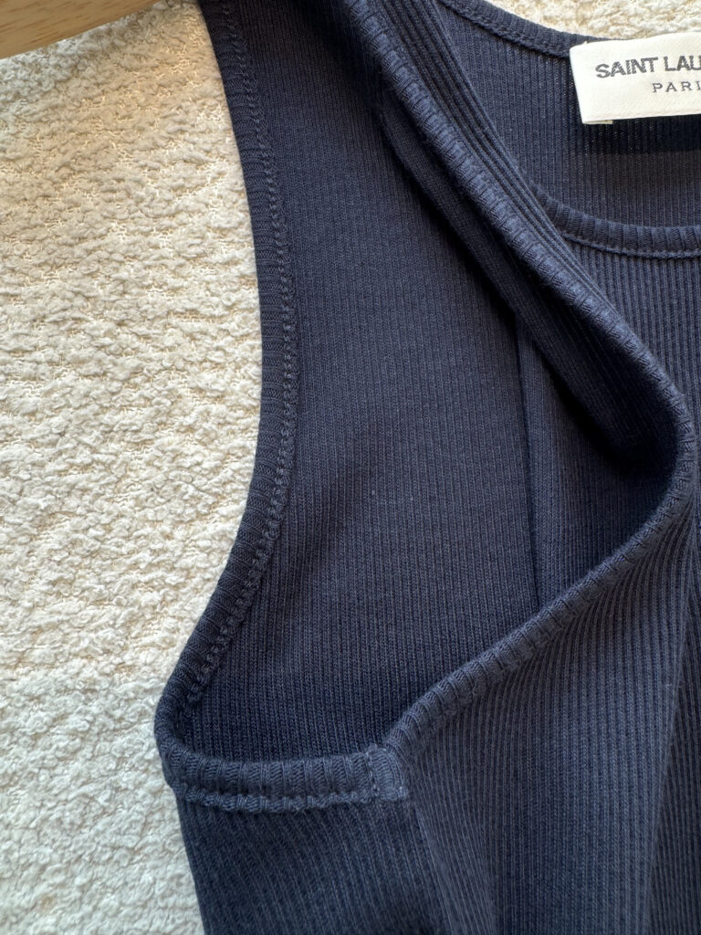 / 생로랑 립 디테일 코튼 저지 탱크 탑 나시 티셔츠 842992