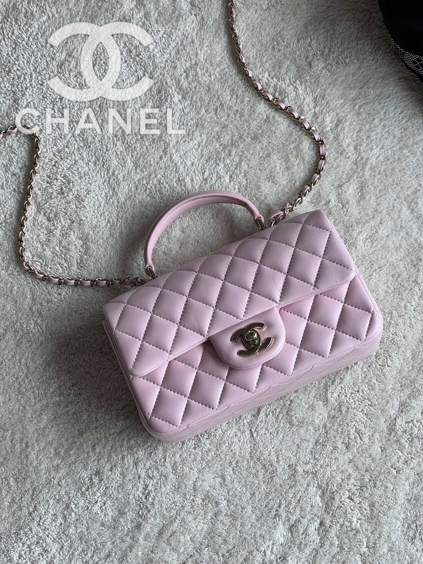 샤넬 뉴미니 탑핸들 램스킨 숄더백 AS2431