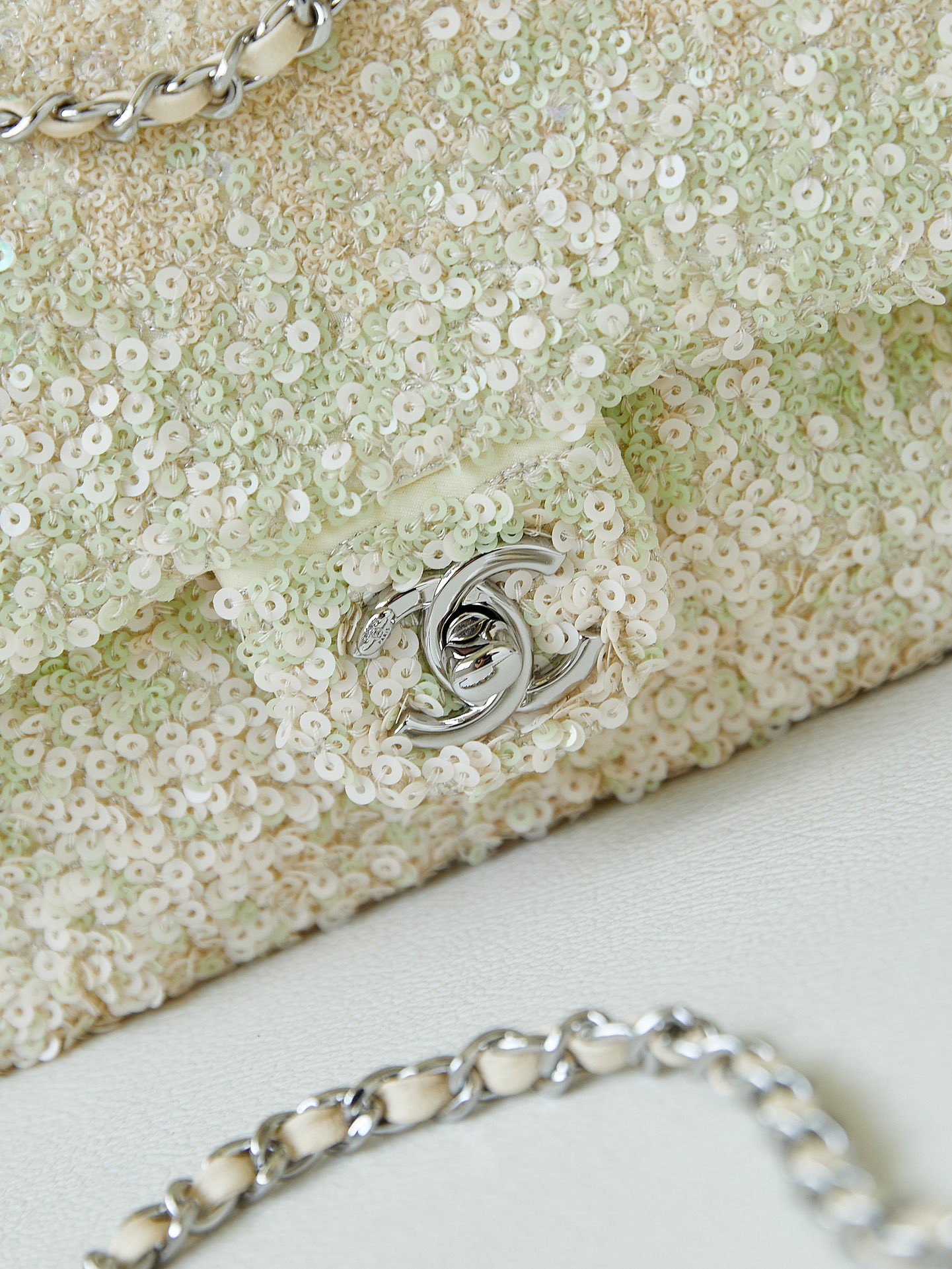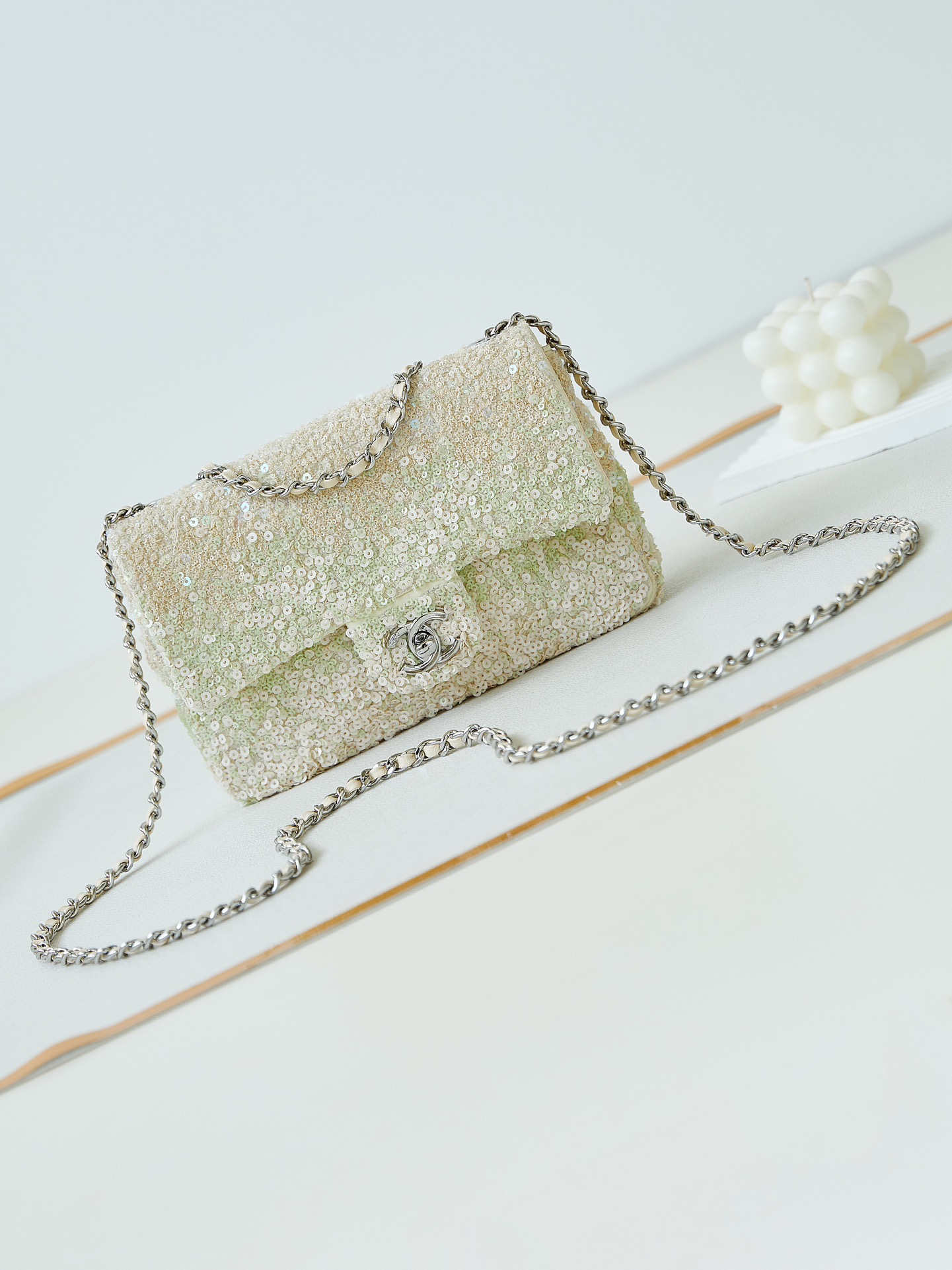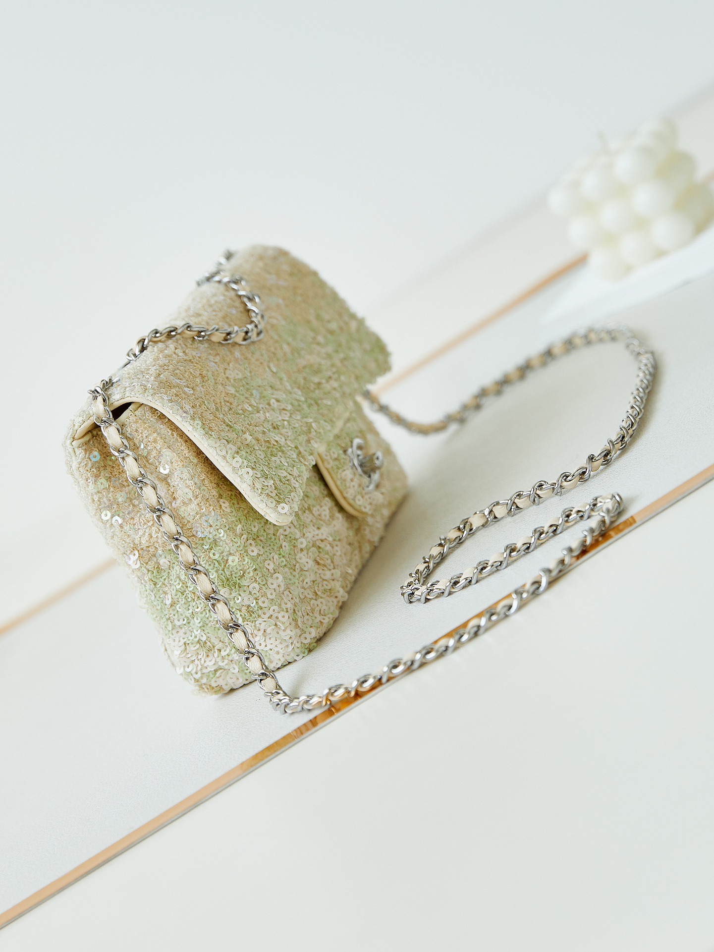/ 샤넬 미니 플랩 백 쉐이드 시퀸 골드톤 메탈 숄더백 AS3965