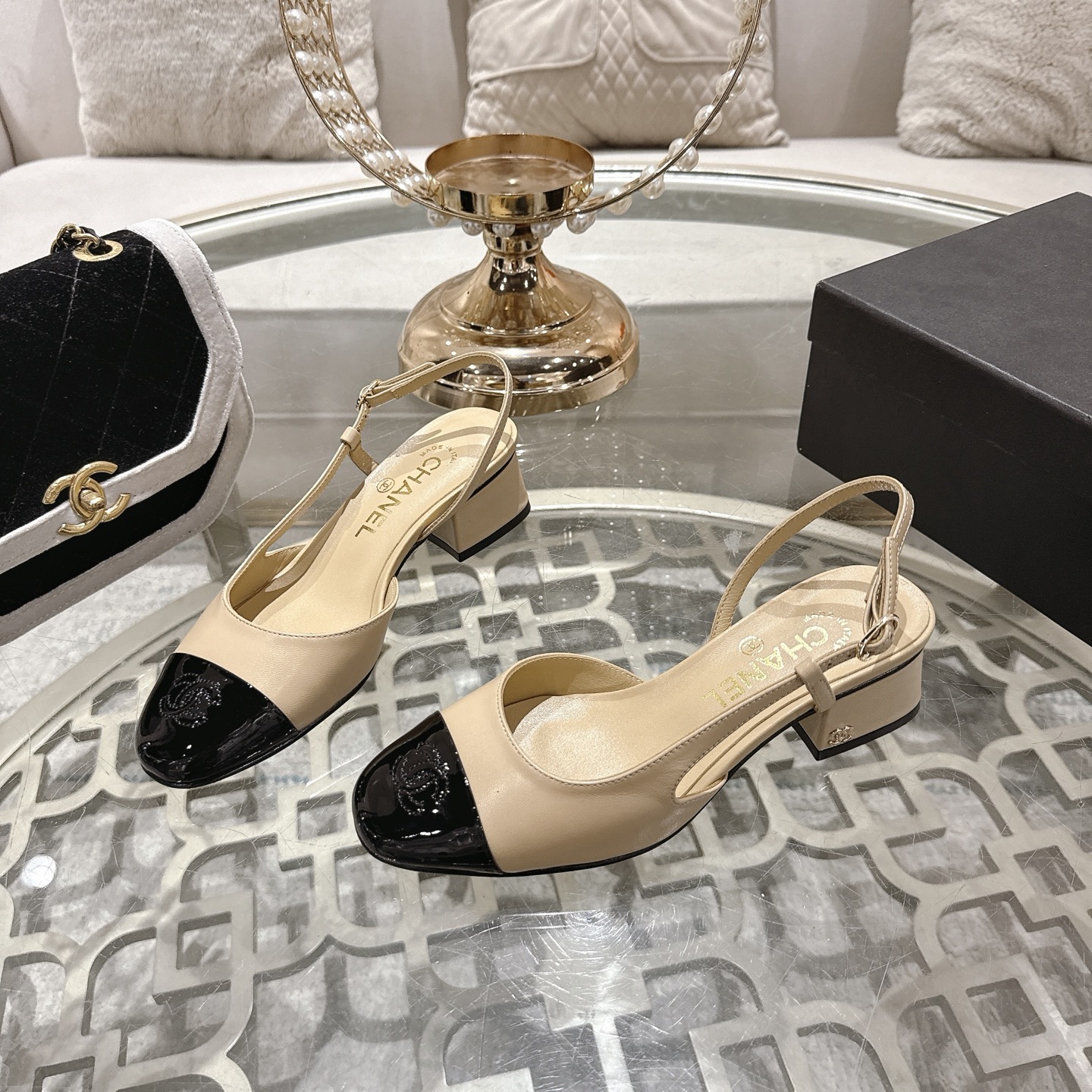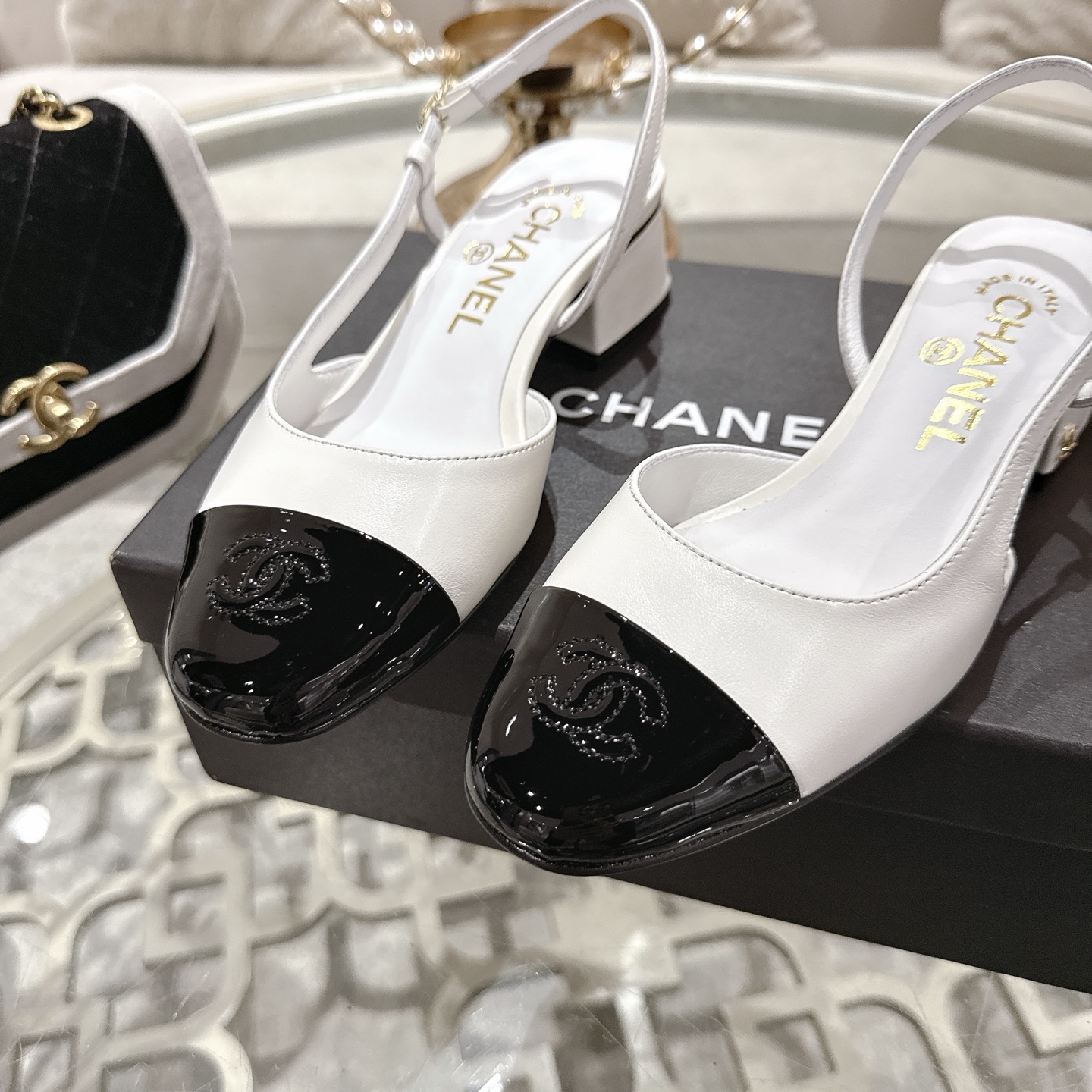 샤넬 슬링백 램스킨 페이턴트 카프스킨 펌프스 G46943
