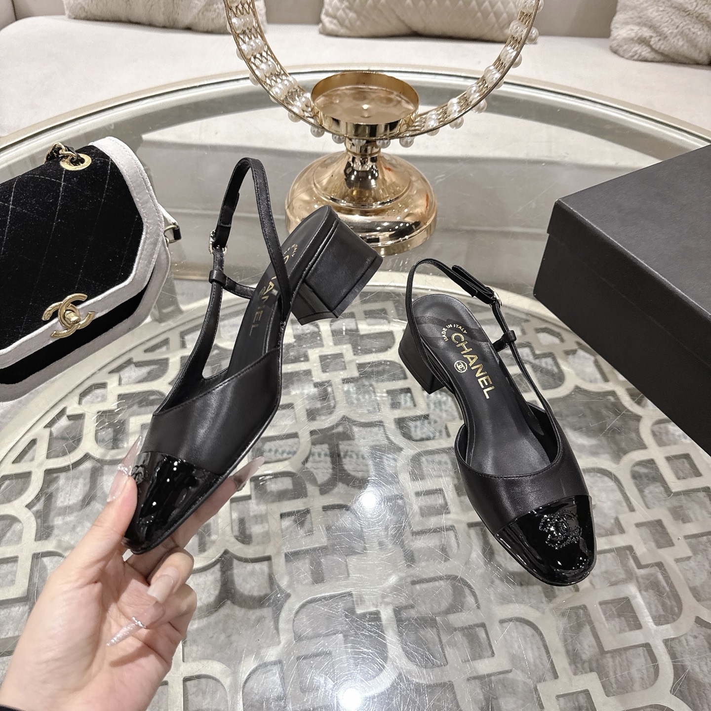 샤넬 슬링백 램스킨 페이턴트 카프스킨 펌프스 G46943 수량