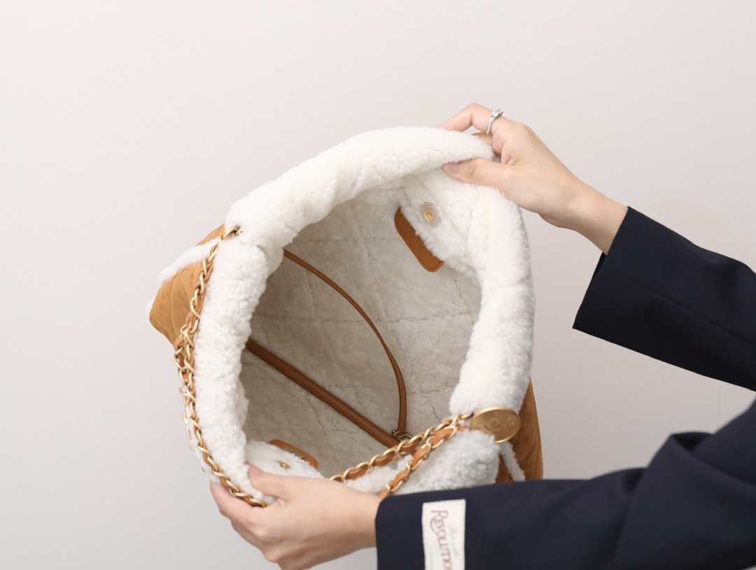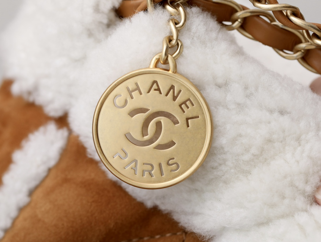/ 샤넬 23B 22백 미듐 시어링 스웨이드 베이지/화이트 AS3261