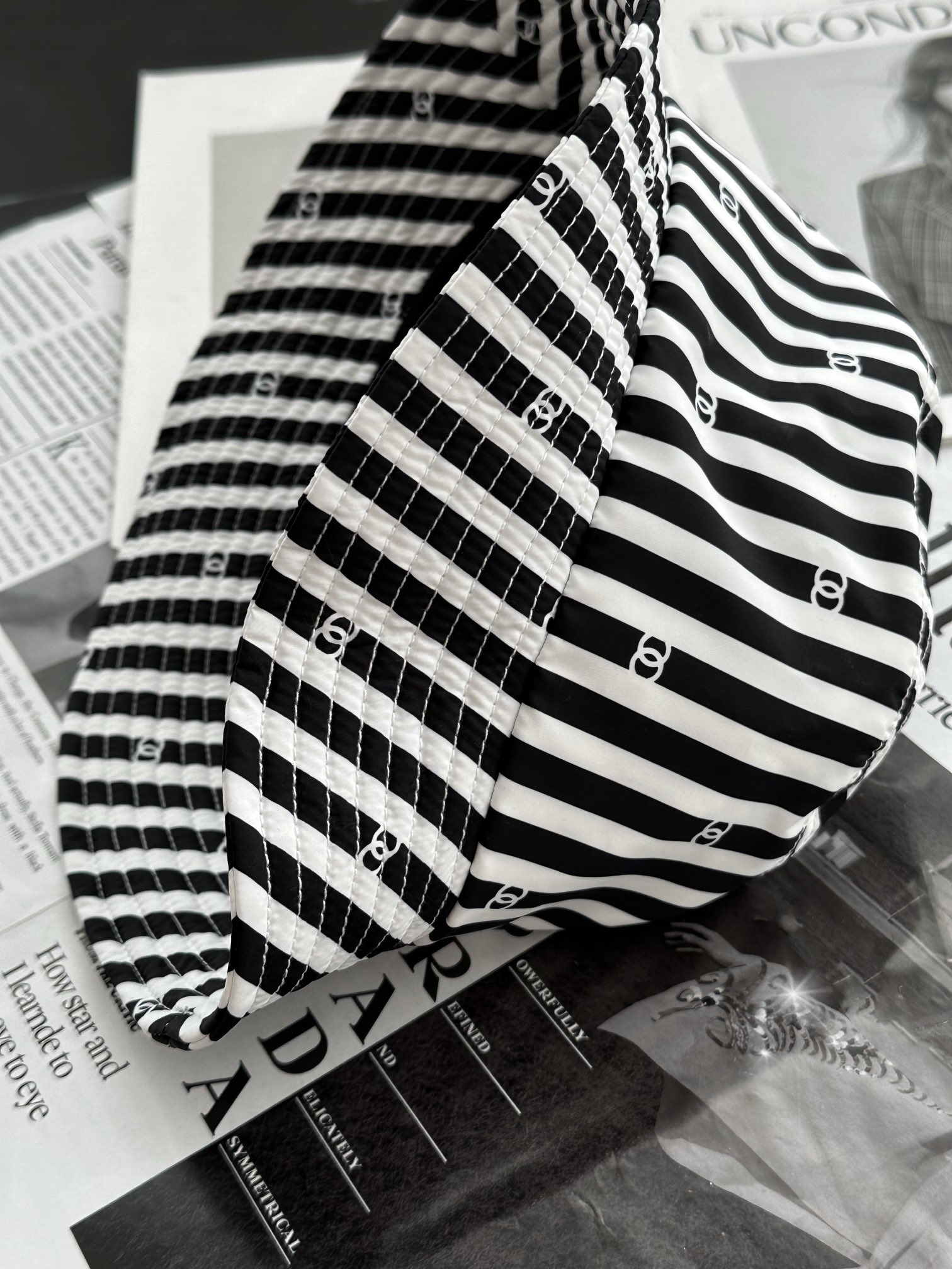/ 샤넬 24 코코비치 버킷햇 스트라이프 CC로고 벙거지 모자 AA9874