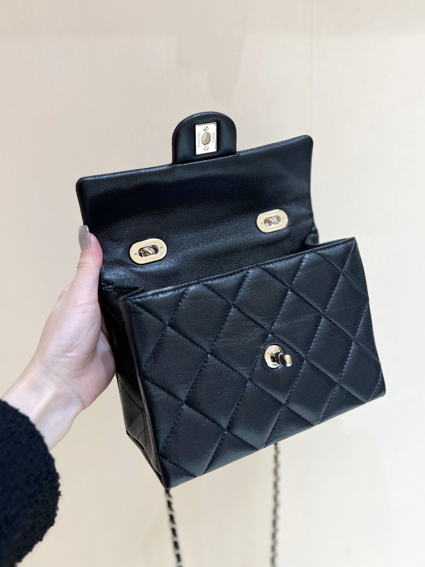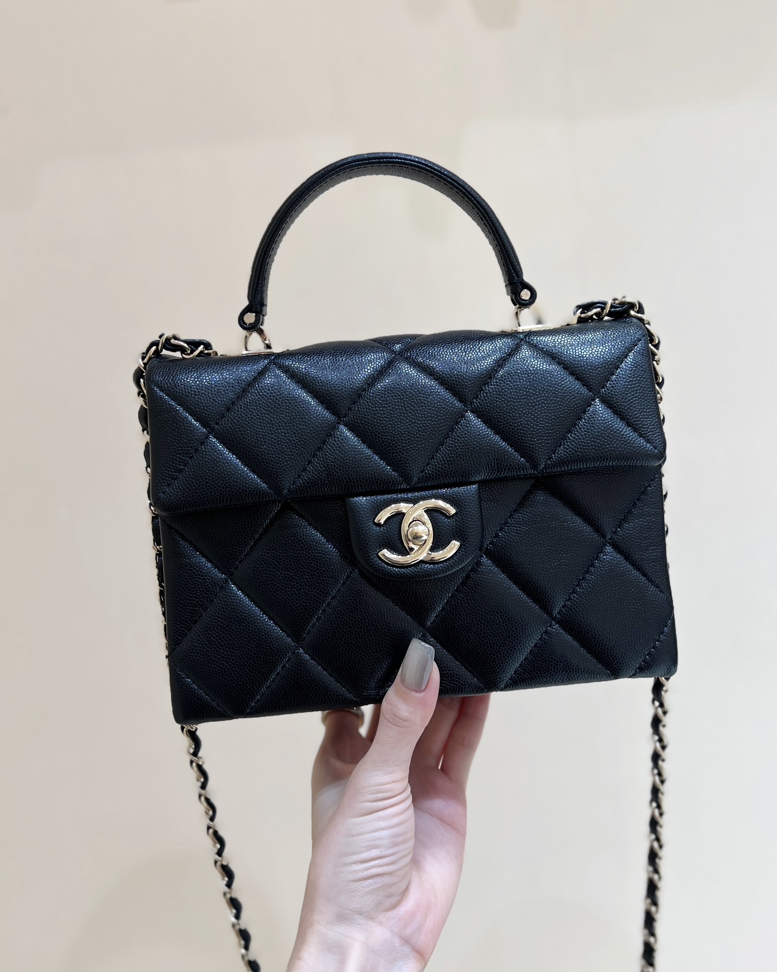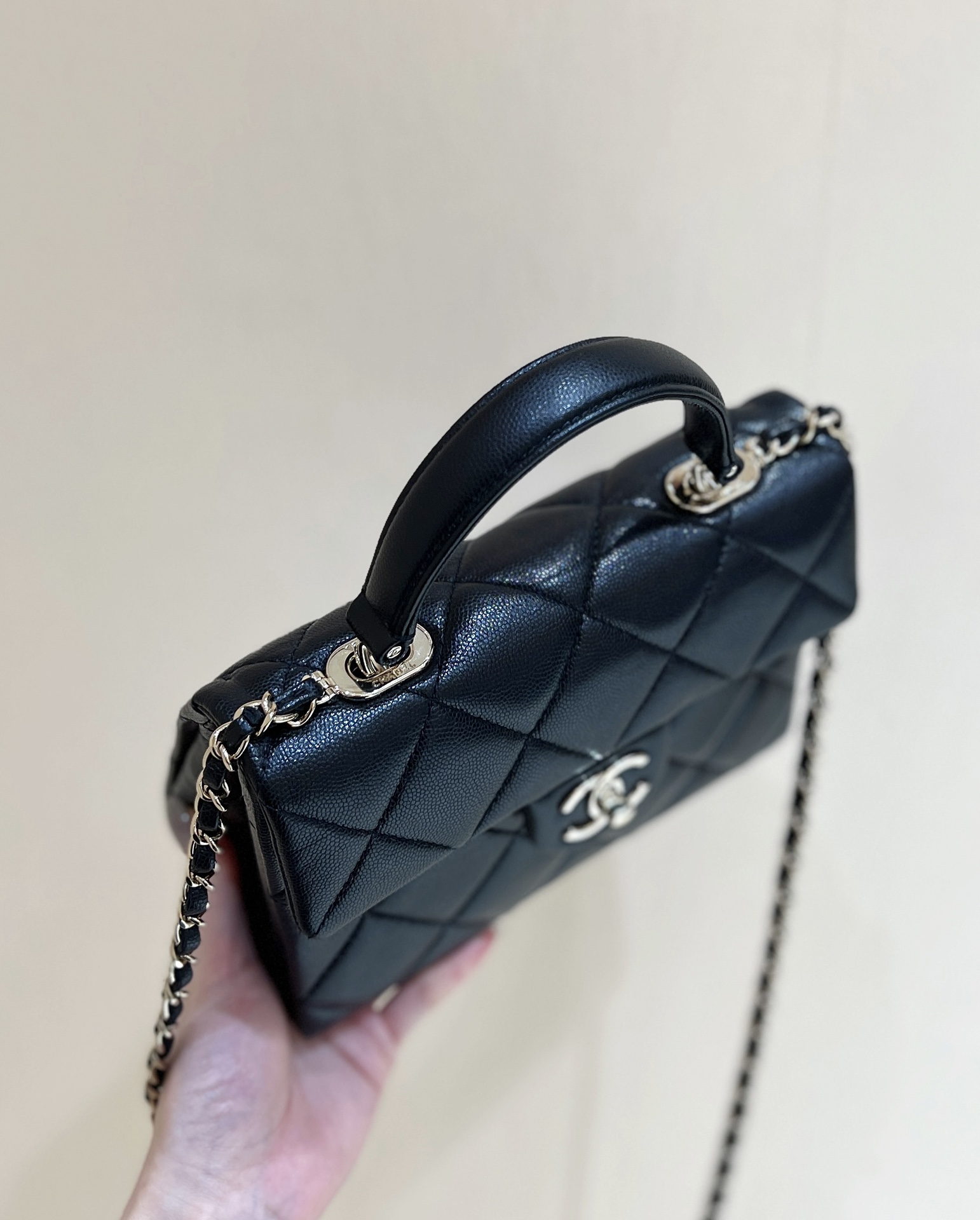 샤넬 24SS CC로고 탑핸들 턴락 플랩백 블랙 AS4711