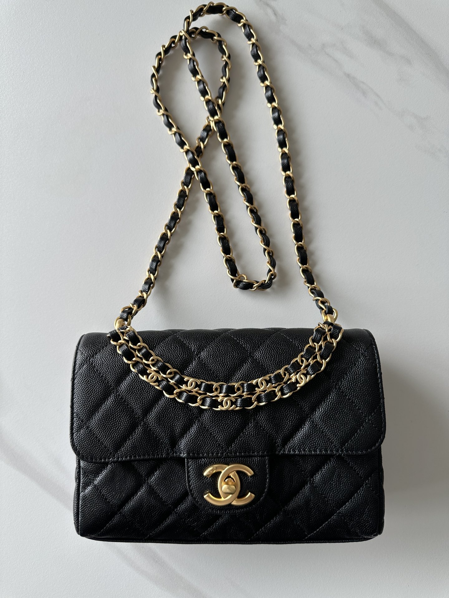 샤넬 25백 플랩백 캐비어 금장 블랙 AS5240