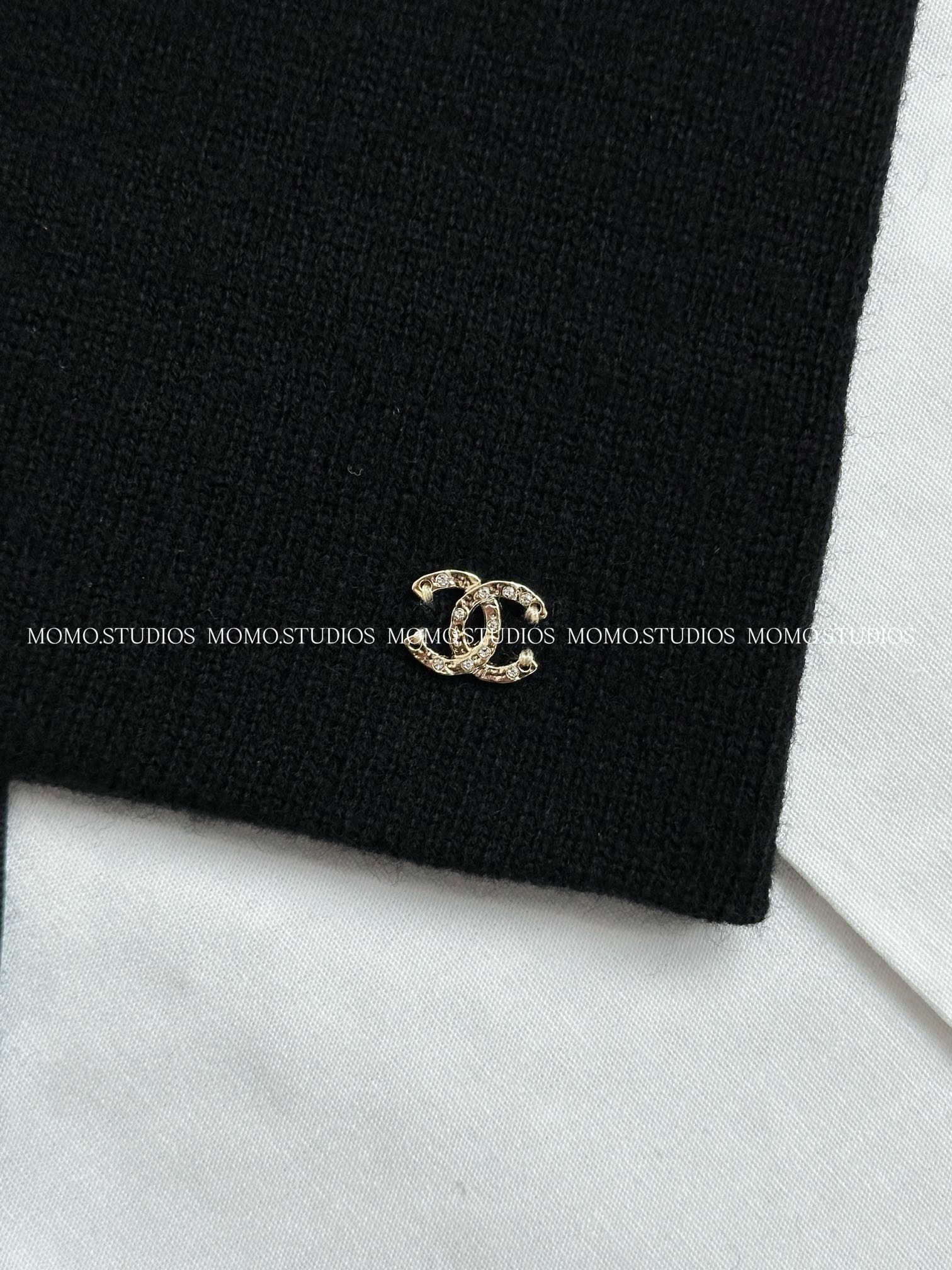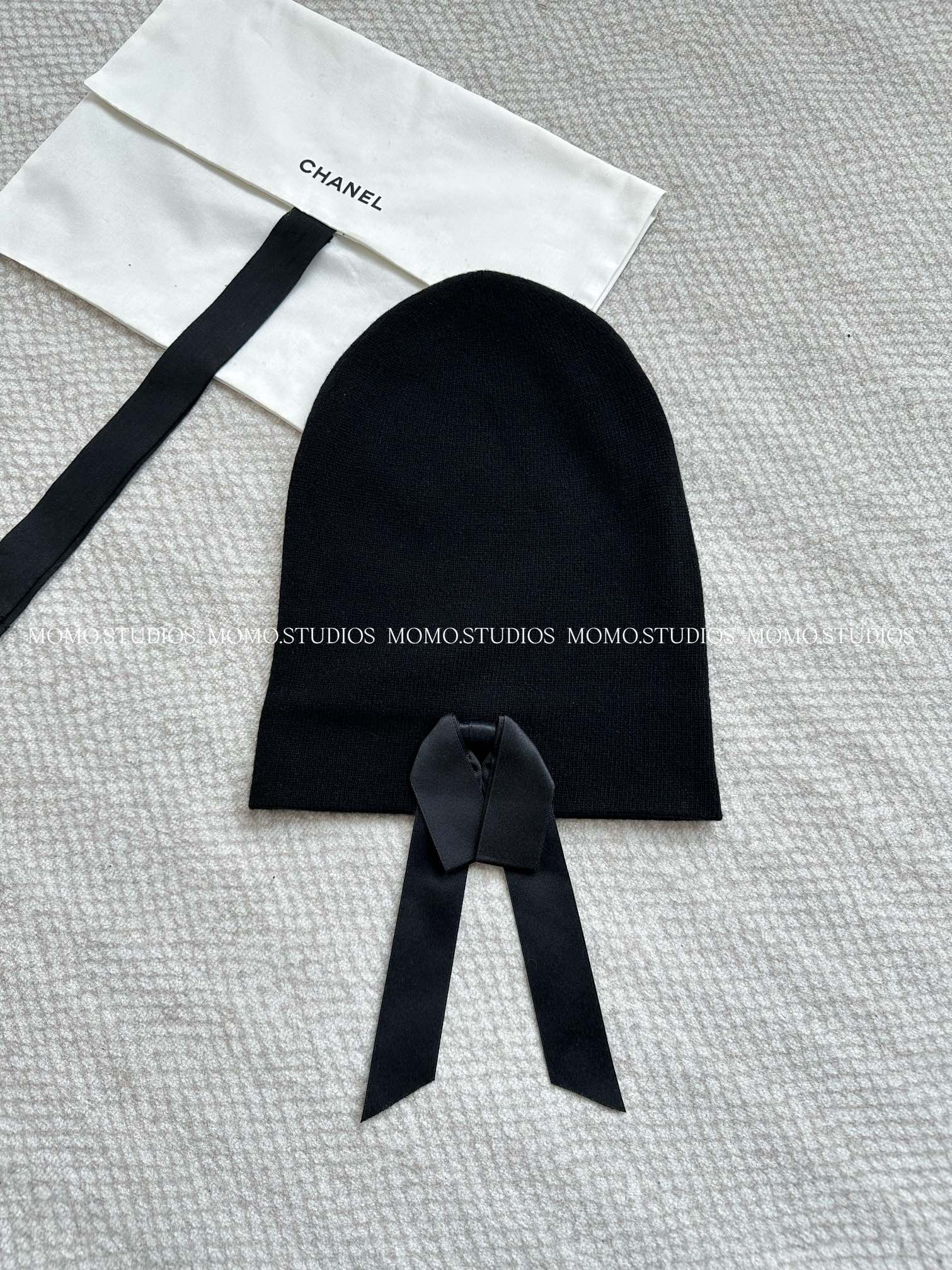 샤넬 25A 공방 리본 비니 보넷 CC로고 캐시미어 니트 모자 블랙 AAB217