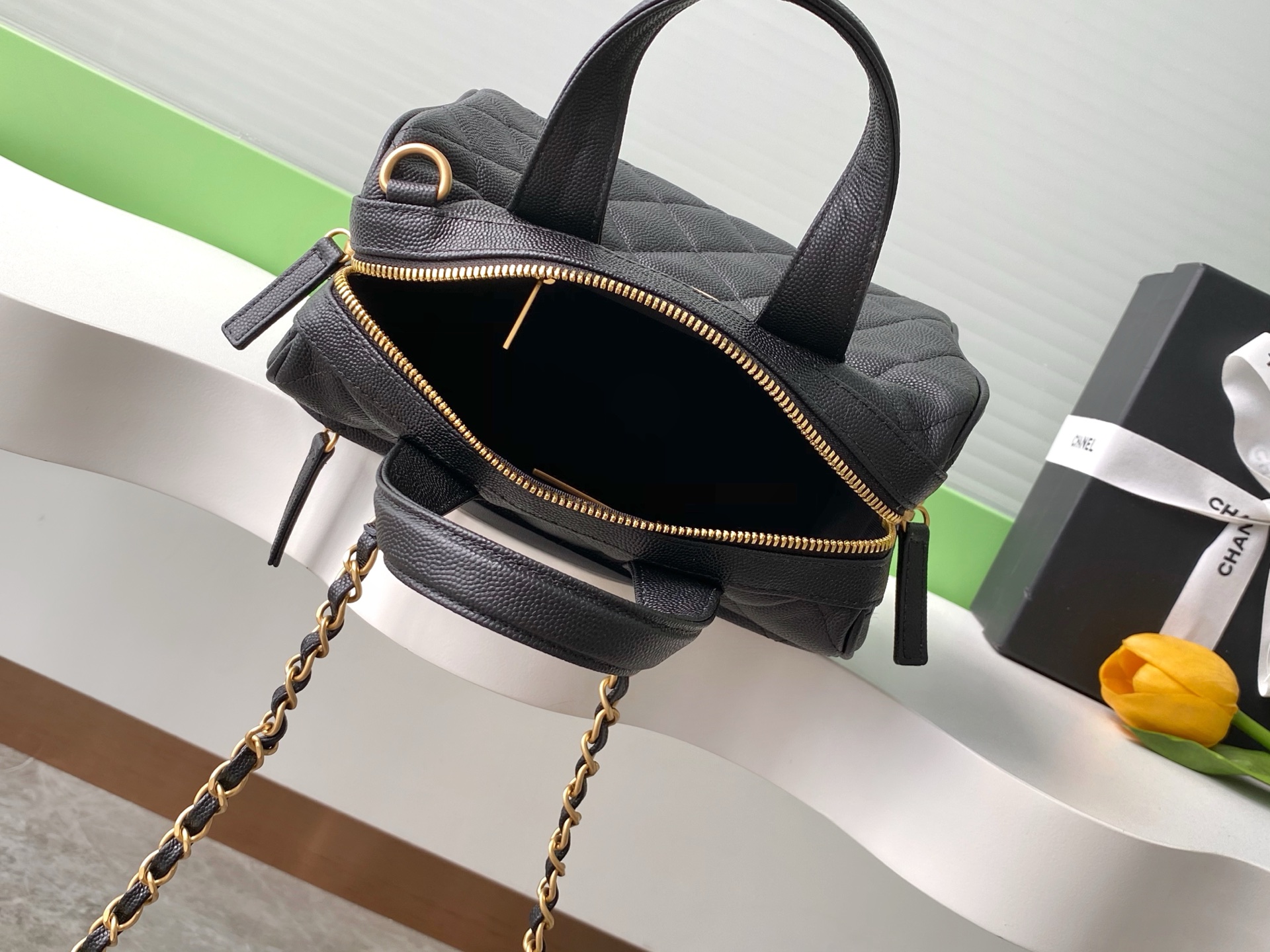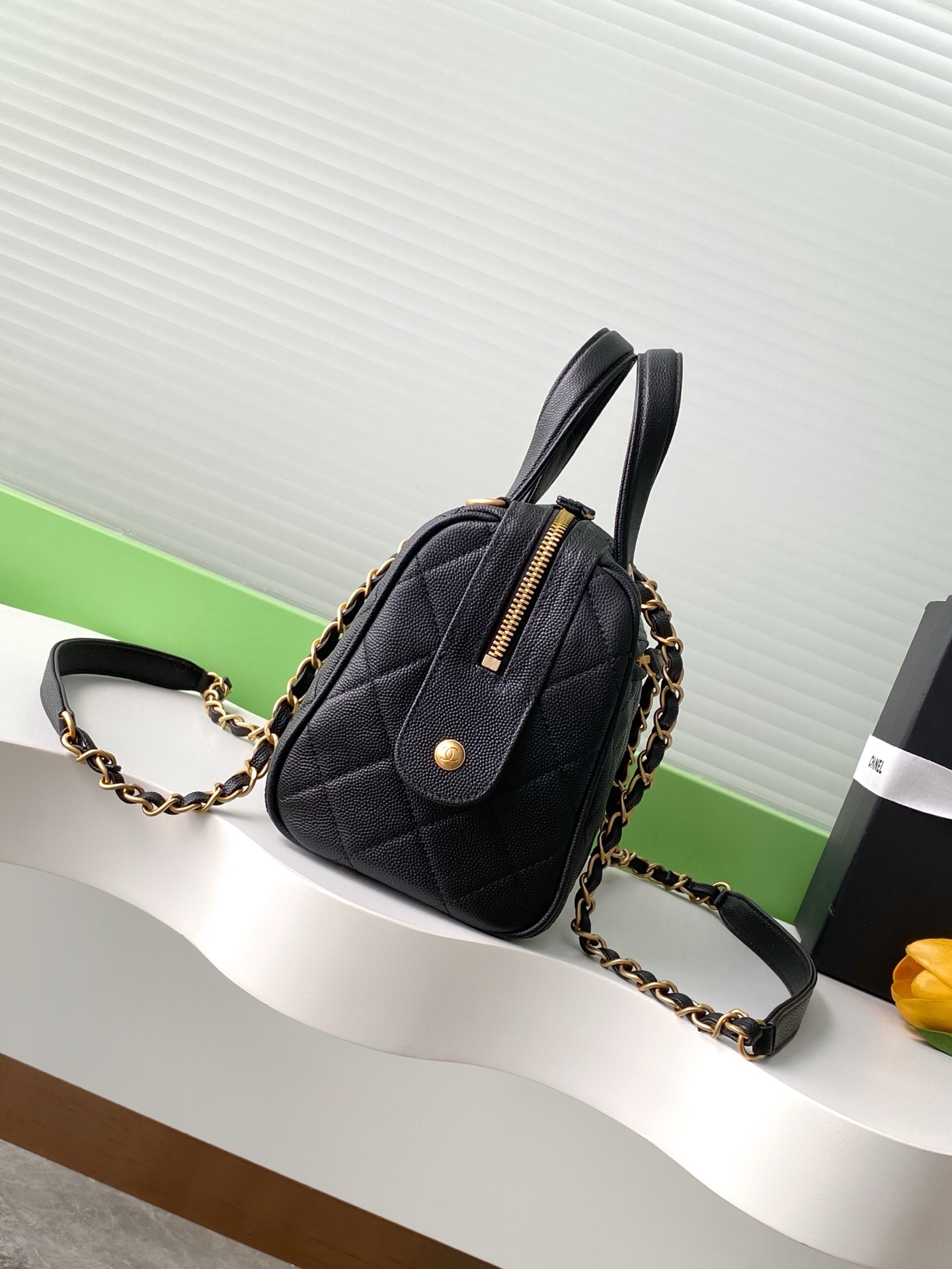 샤넬 25A 공방 볼링백 스몰 페이턴트 체인 미니 볼링 보스턴백 크럼블드 블랙 AS5578