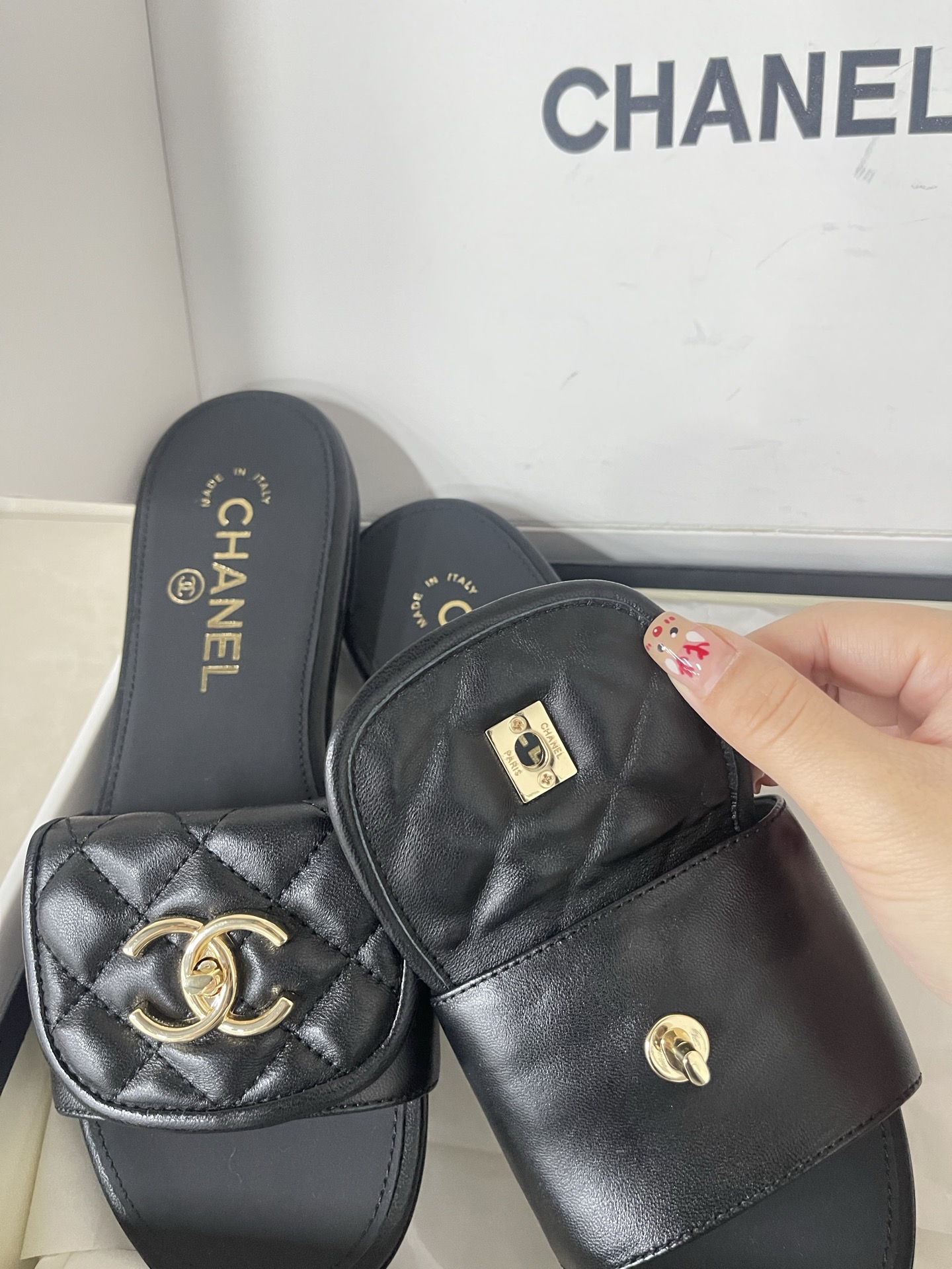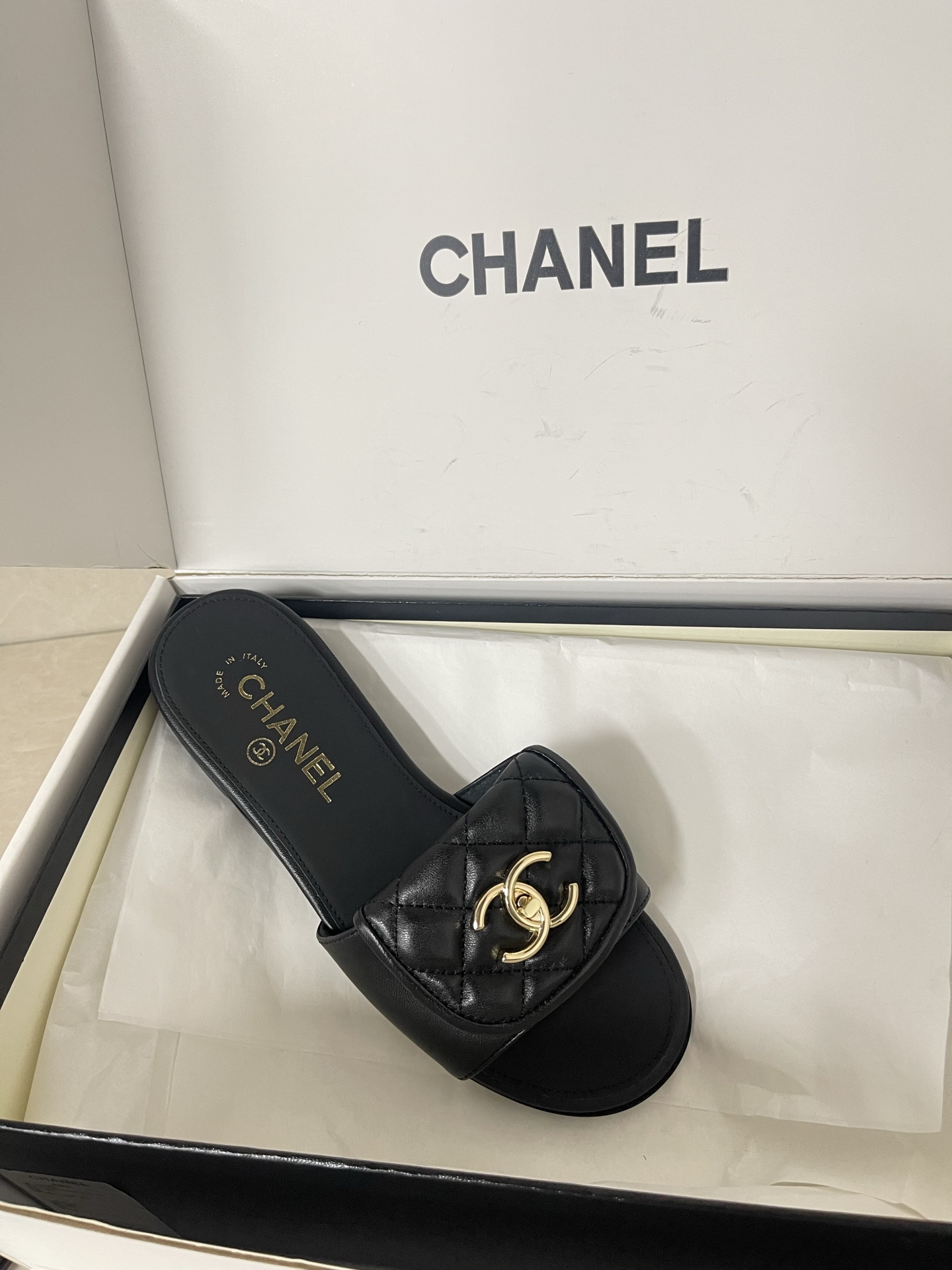 샤넬 25C 크루즈 턴락 슬리퍼 뮬 CC로고 슬라이드 G46119