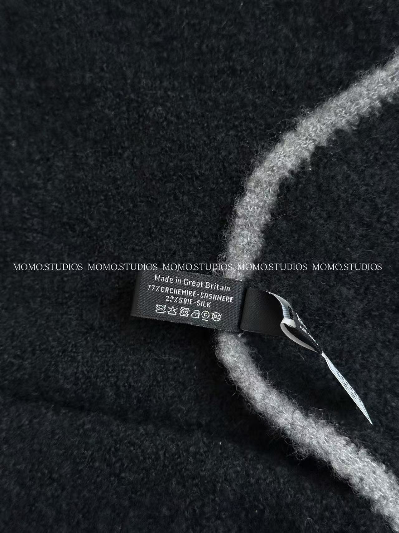 샤넬 25K 삼각 머플러 캐시미어 CC로고 반다나 스카프 블랙 그레이 AAB438