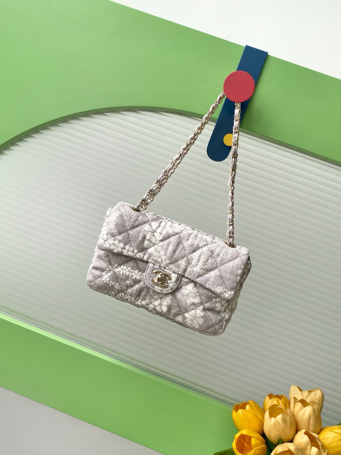 샤넬 25M 코코비치 미니 플랩백 데님 CC 플라워 프린트 AS5454