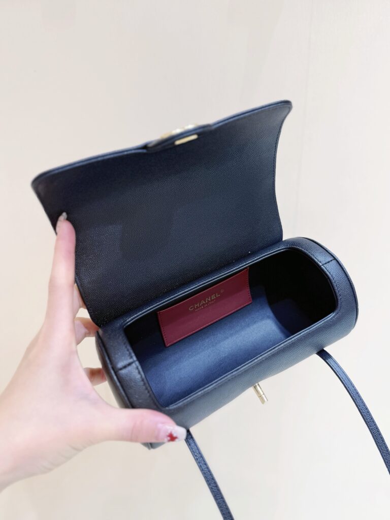 샤넬 26P 스트랩 볼링백 스몰 CC로고 플랩 캐비어 AS6143