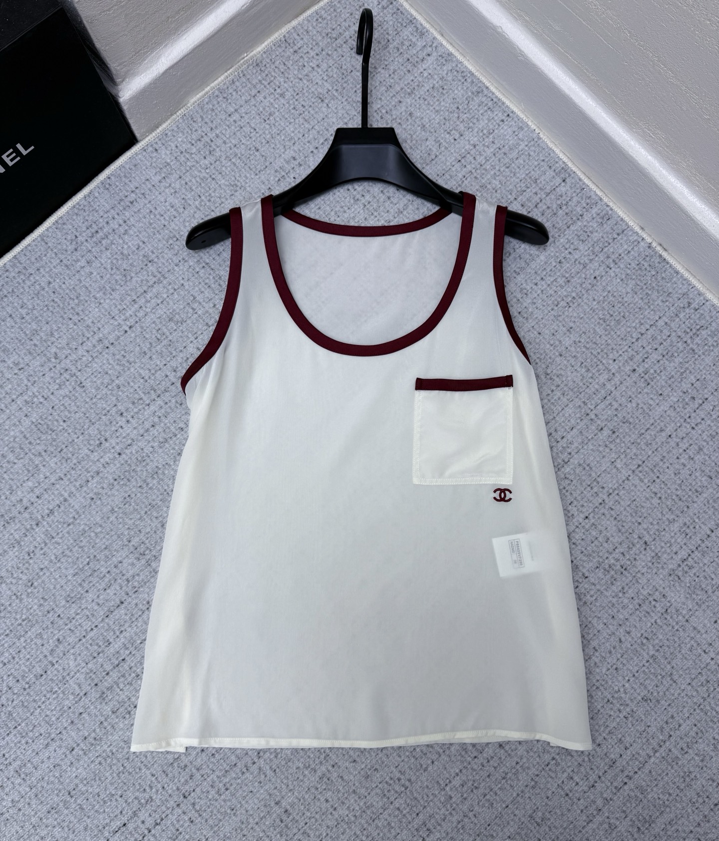 샤넬 26P 실크 투알 나시 탑 라이트 옐로우 버건디P81239