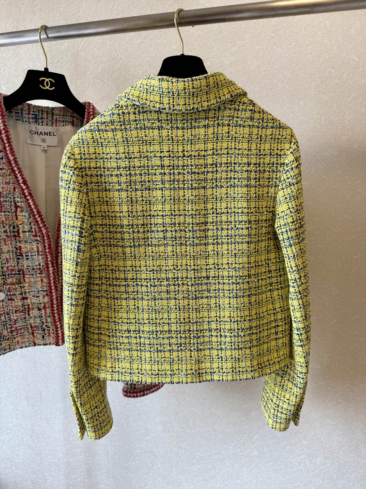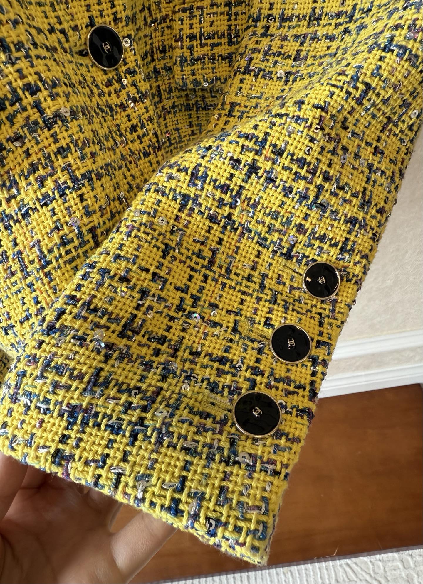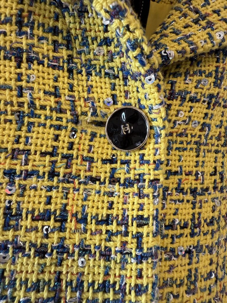 샤넬 26P 옐로우 트위드 자켓 CC로고 버튼 실버 시퀸 P81181