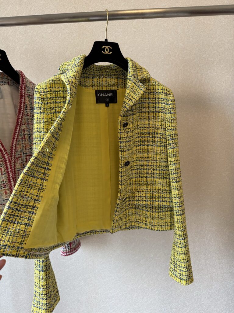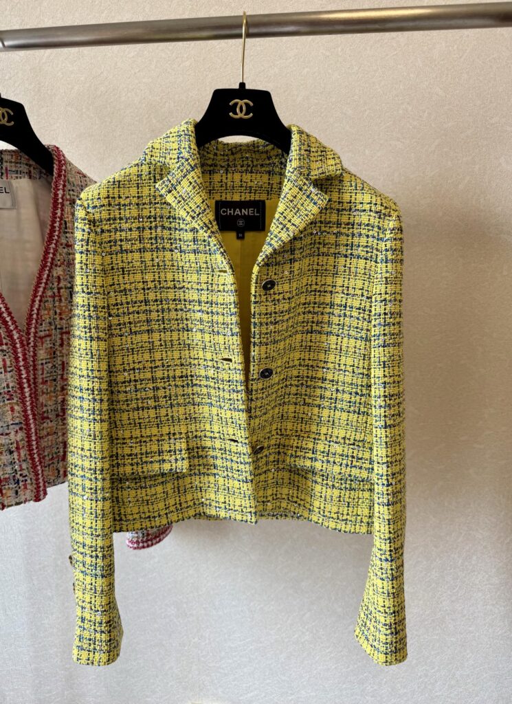 “샤넬 26P 옐로우 트위드 자켓 CC로고 버튼 실버 시퀸 P81181”의 첫 상품평을 남겨 주세요