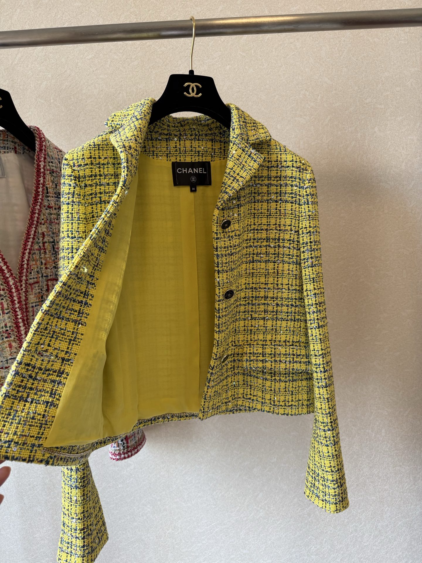 / 샤넬 26P 옐로우 트위드 자켓 CC로고 버튼 실버 시퀸 P81181