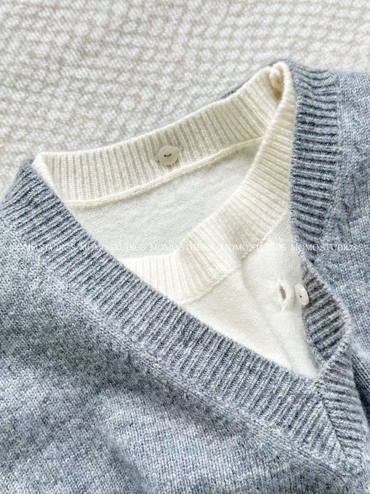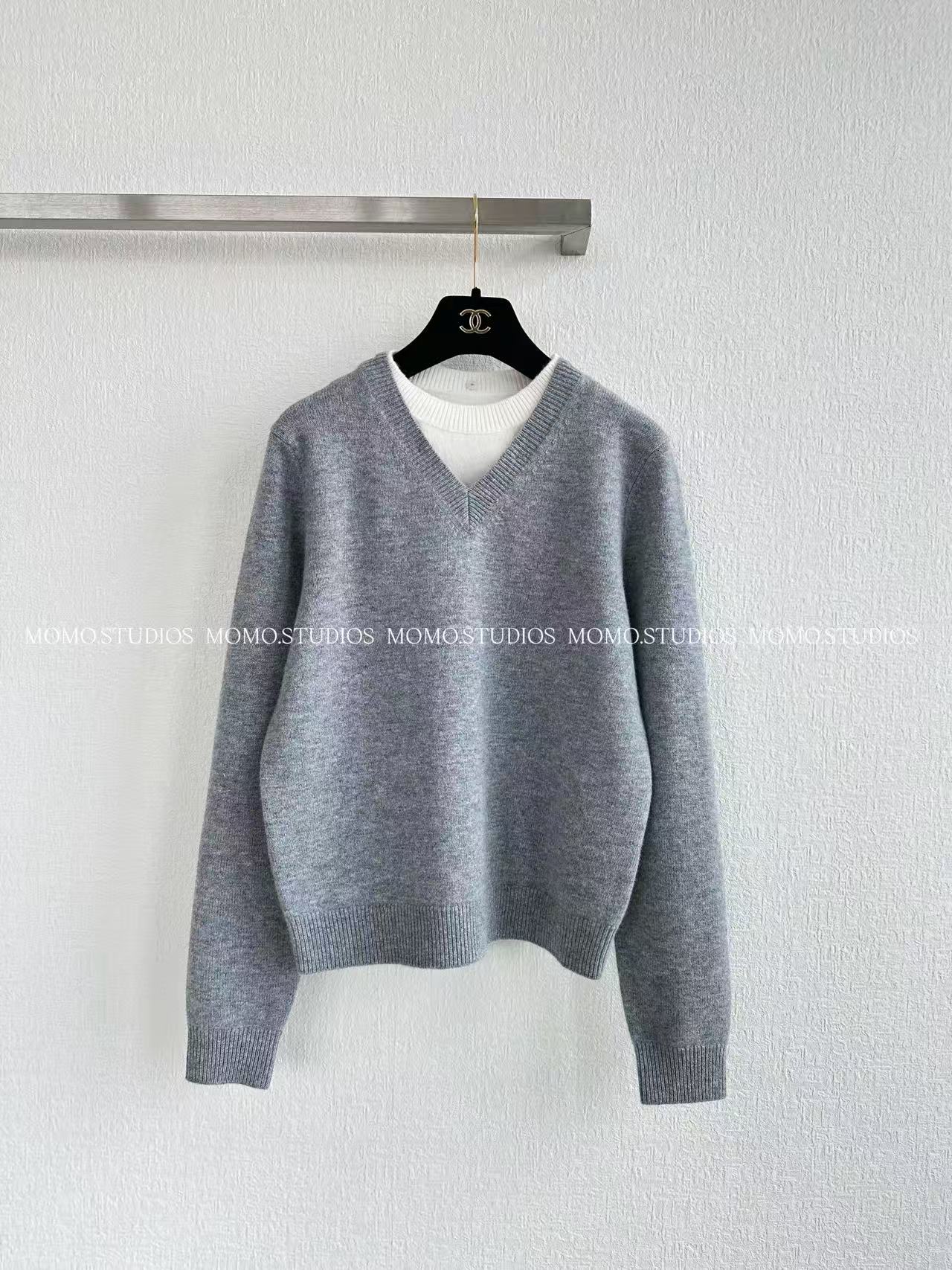 / 샤넬 26P 풀오버 캐시미어 투톤 니트 CC로고 패치 P81315