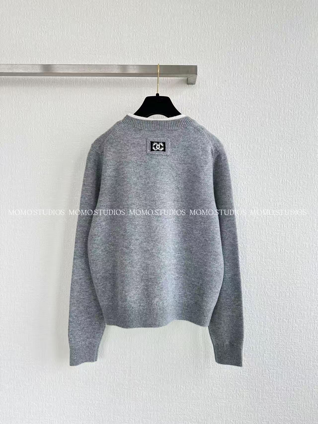 샤넬 26P 풀오버 캐시미어 투톤 니트 CC로고 패치 P81315