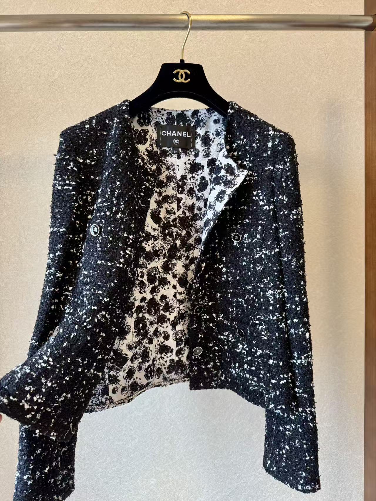 샤넬 26P CC 버튼 라운드넥 시퀸 트위드 자켓 P81220