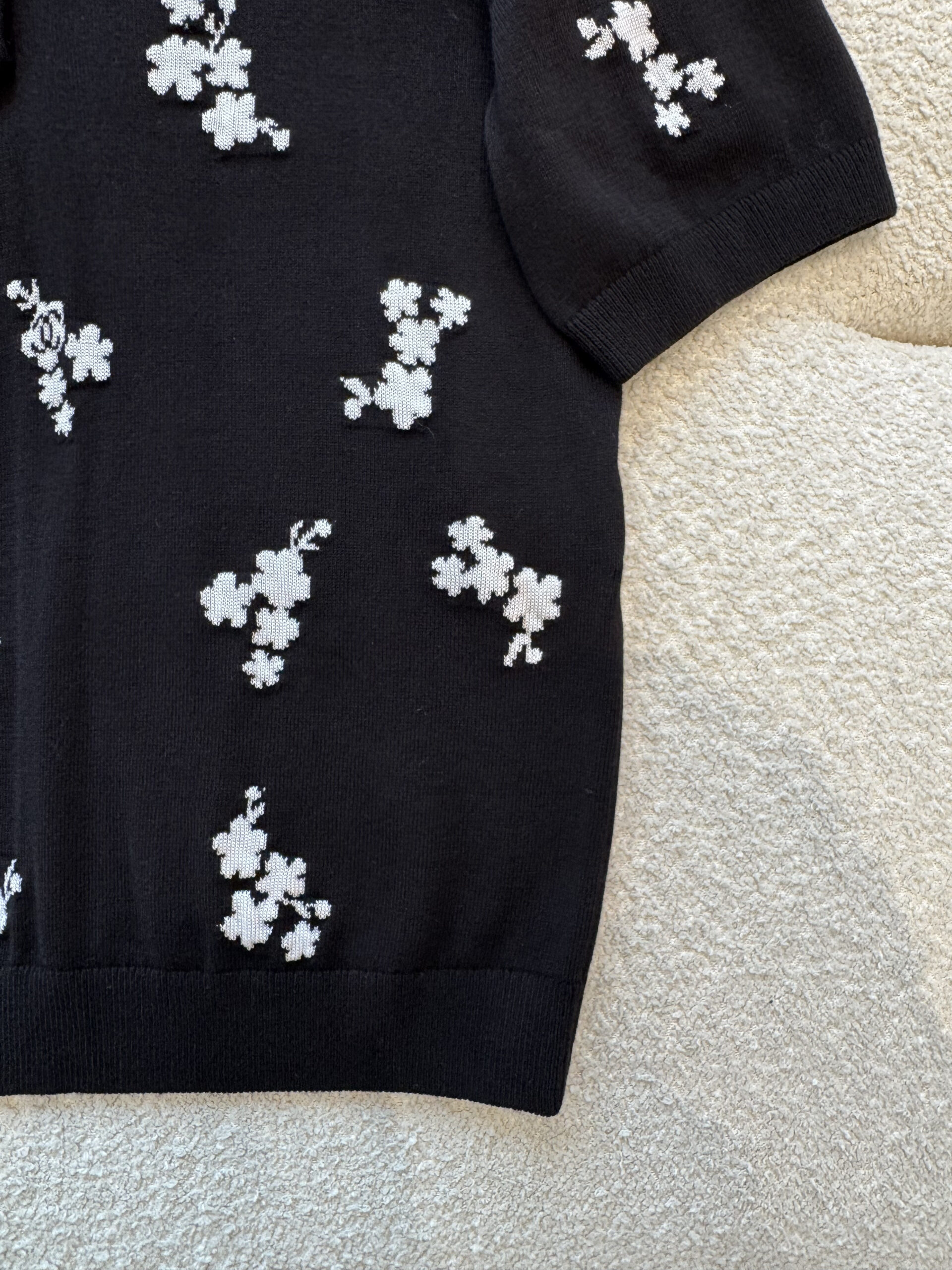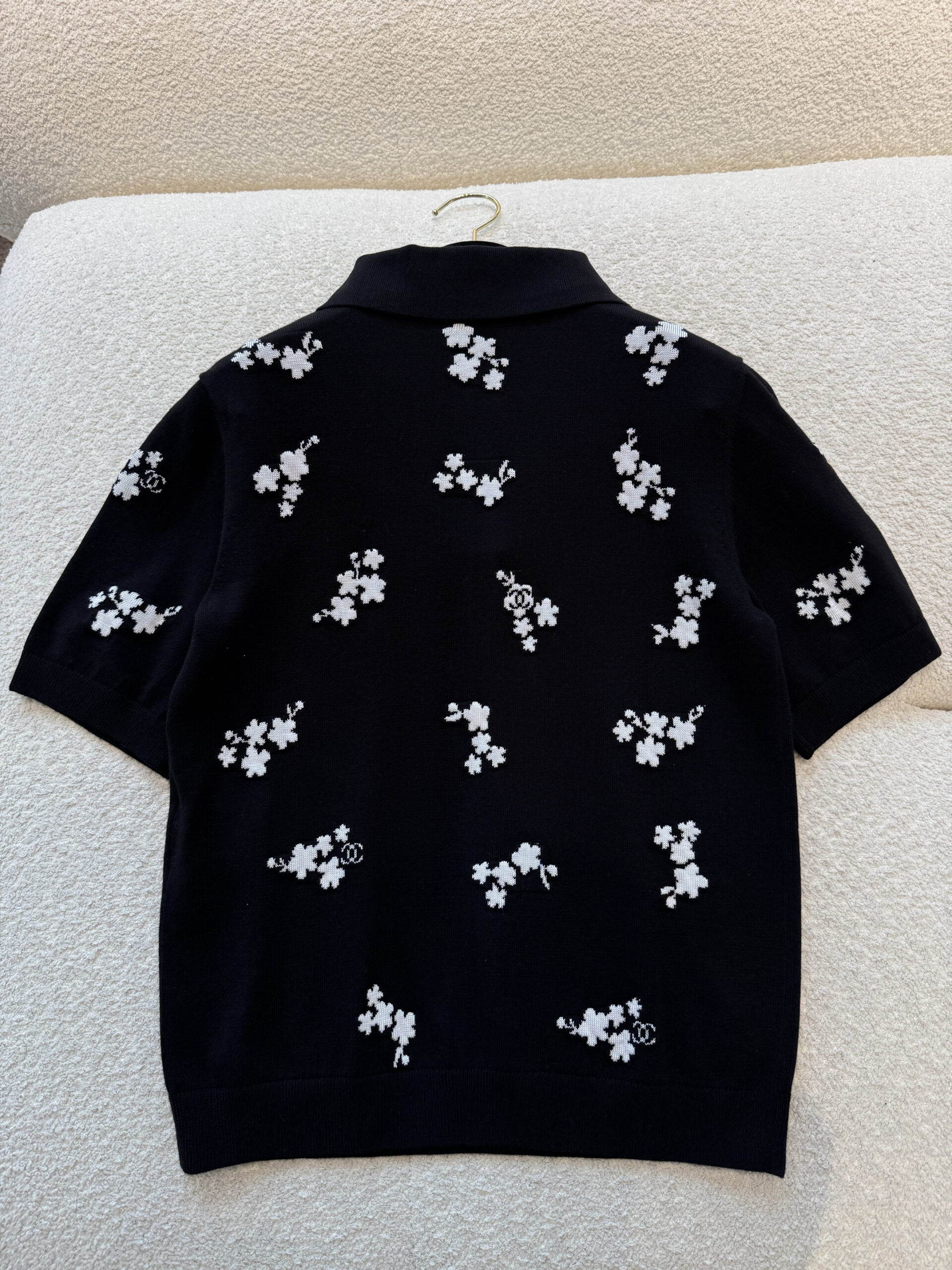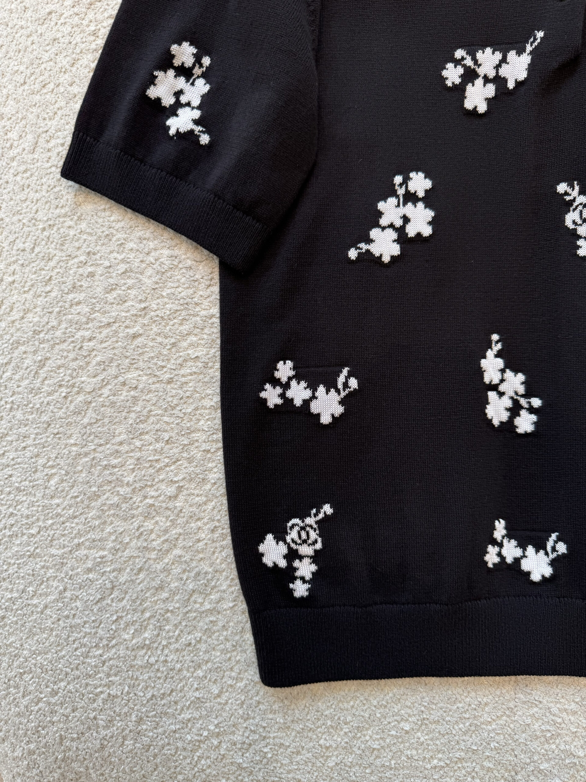 샤넬 26SS 니트 반팔 티셔츠 CC 플라워 폴로 탑P81379