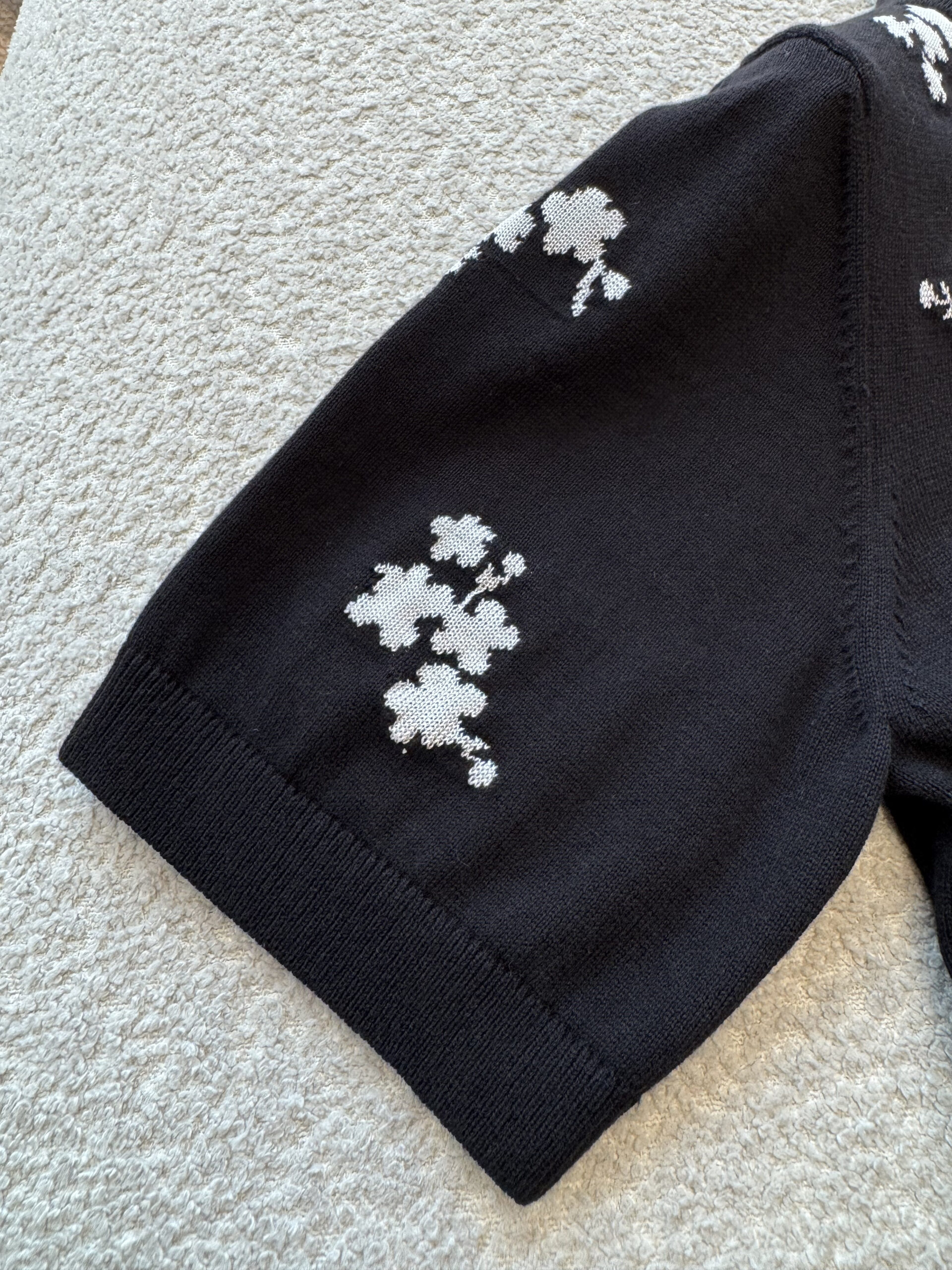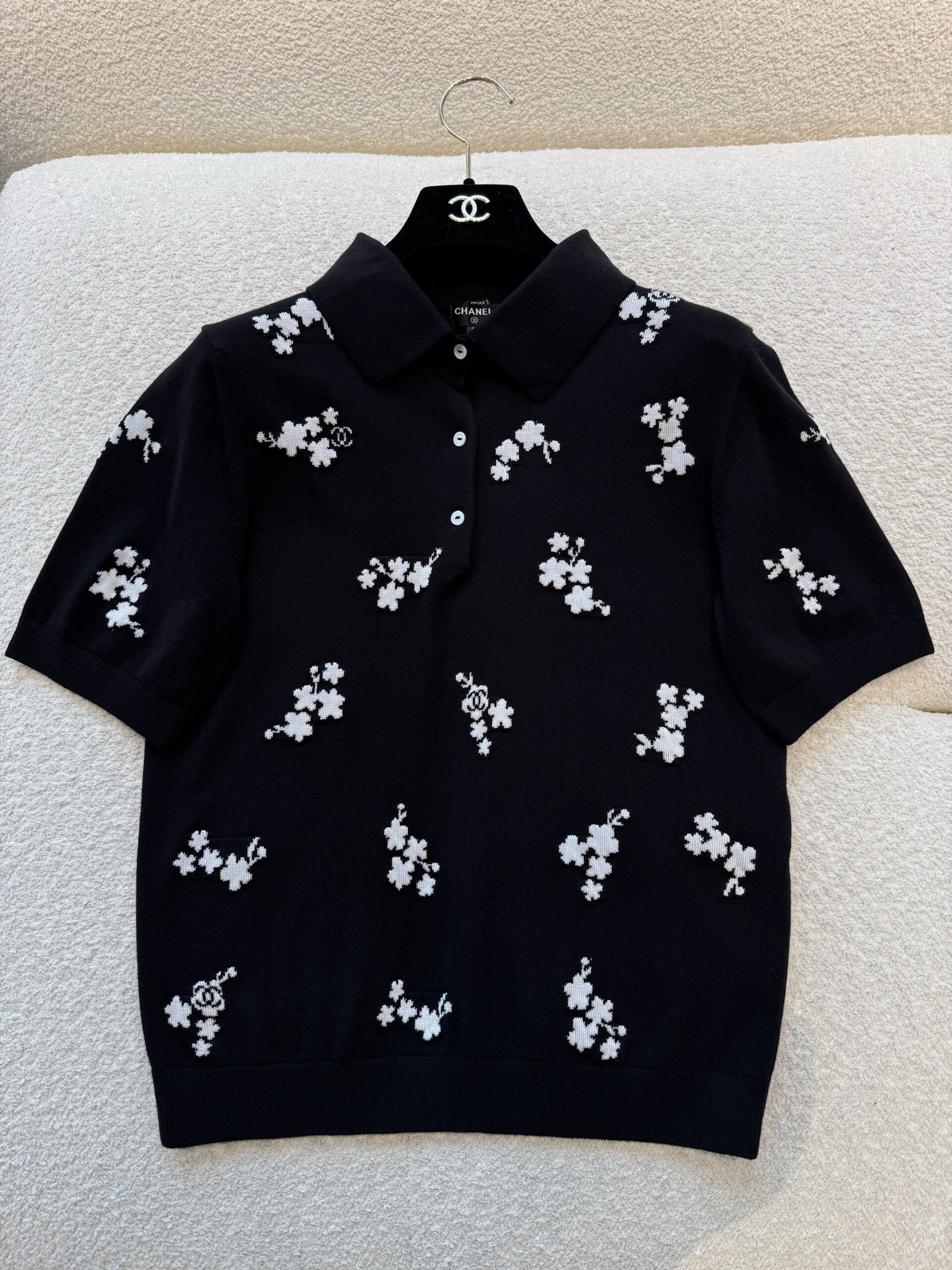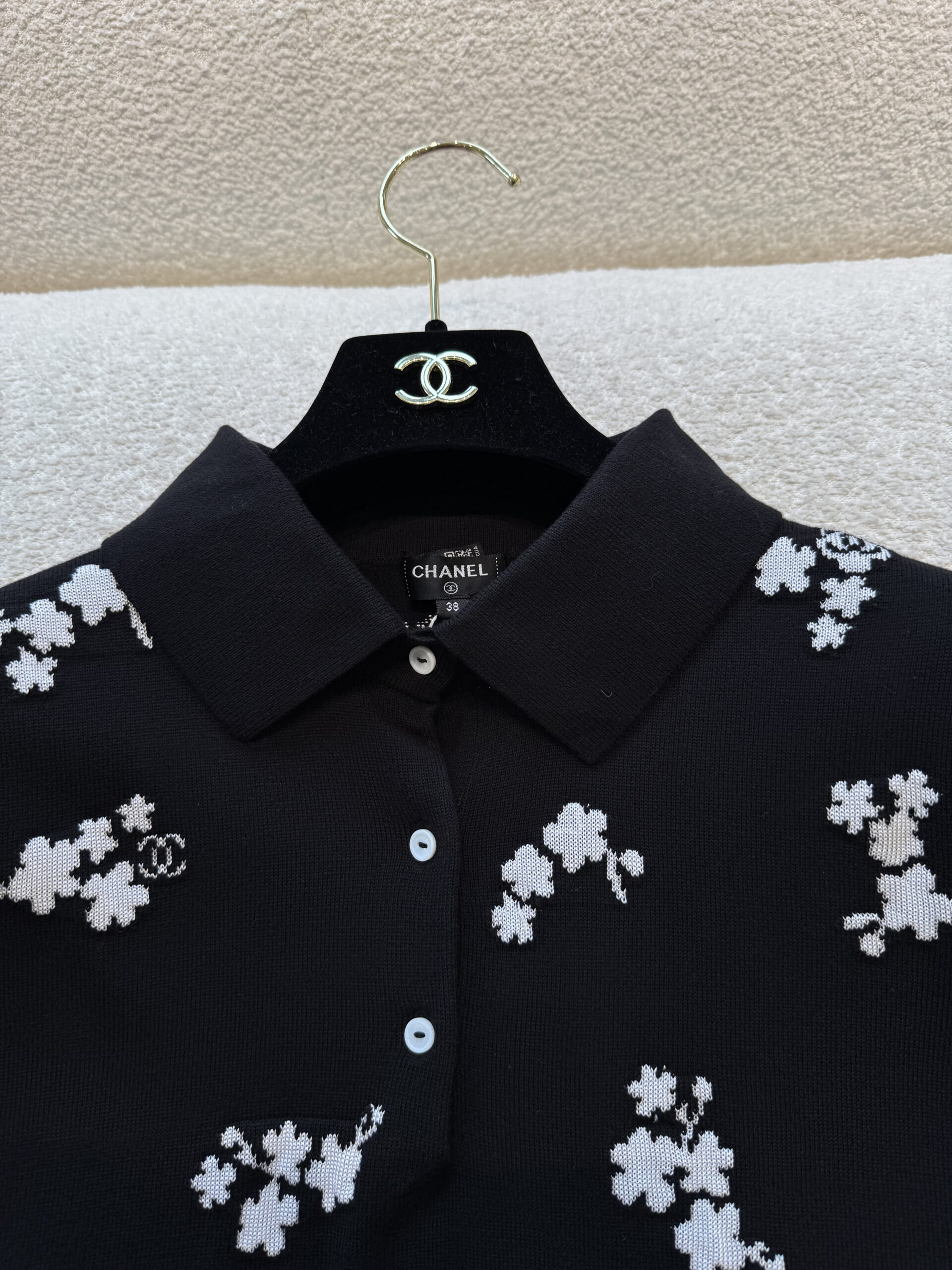 샤넬 26SS 니트 반팔 티셔츠 CC 플라워 폴로 탑P81379