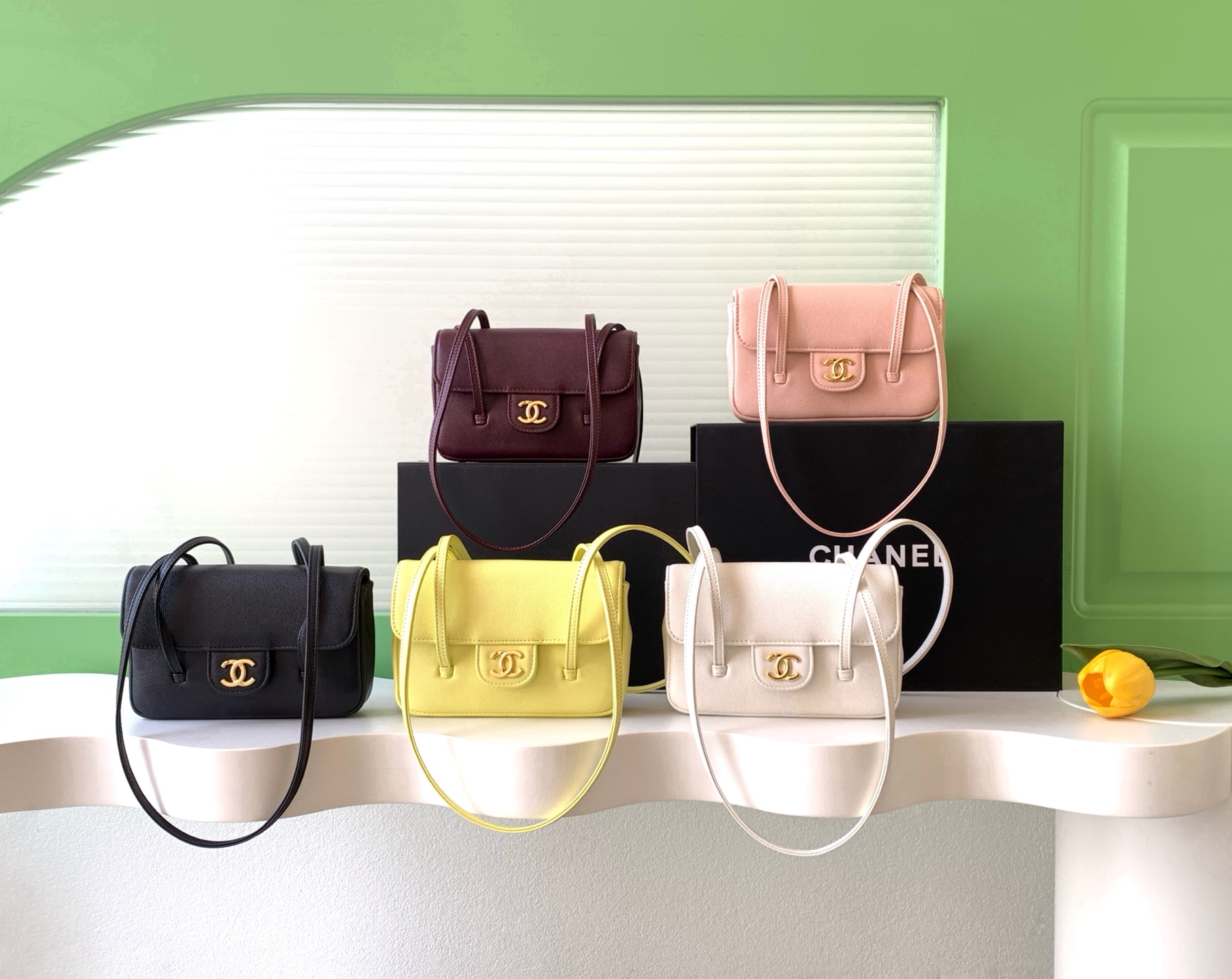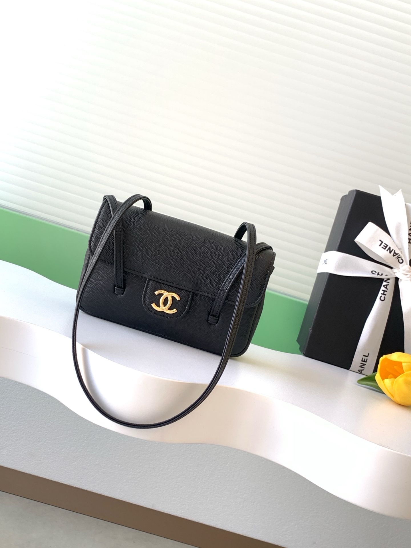 샤넬 26SS 26P 가죽 스트랩 플랩백 스몰 CC로고 플랩 프레피코코 AS6130