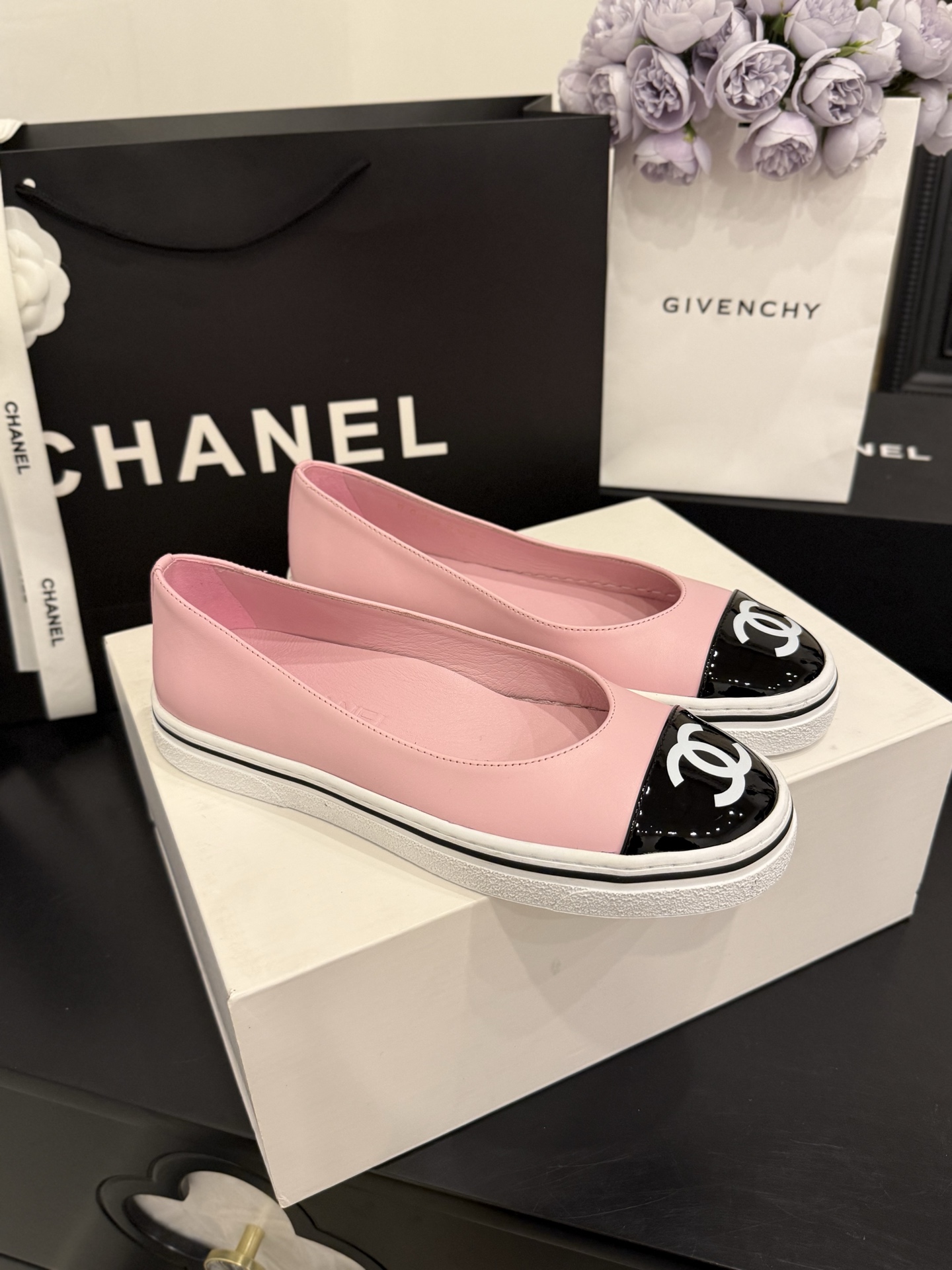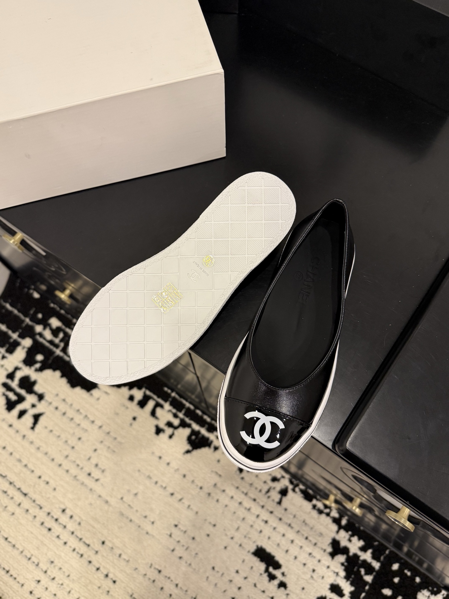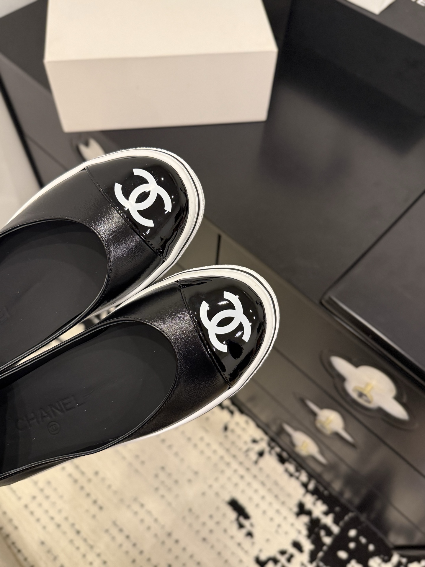 샤넬 26SS 26P 플랫슈즈 고무신 CC로고 단화 유광 페이턴트 G46593