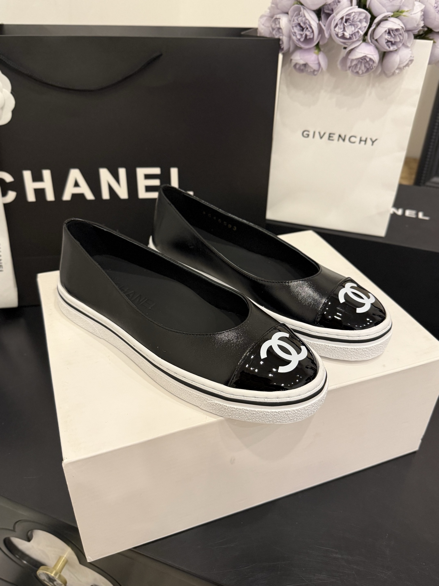 샤넬 26SS 26P 플랫슈즈 고무신 CC로고 단화 유광 페이턴트 G46593 수량