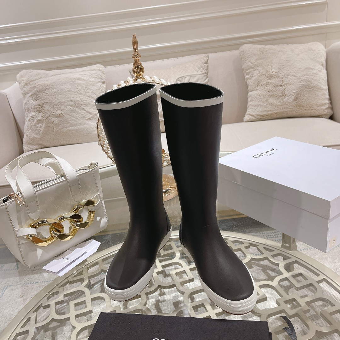 셀린느 로고 플랫 롱 레인 부츠 네이비 345797001C