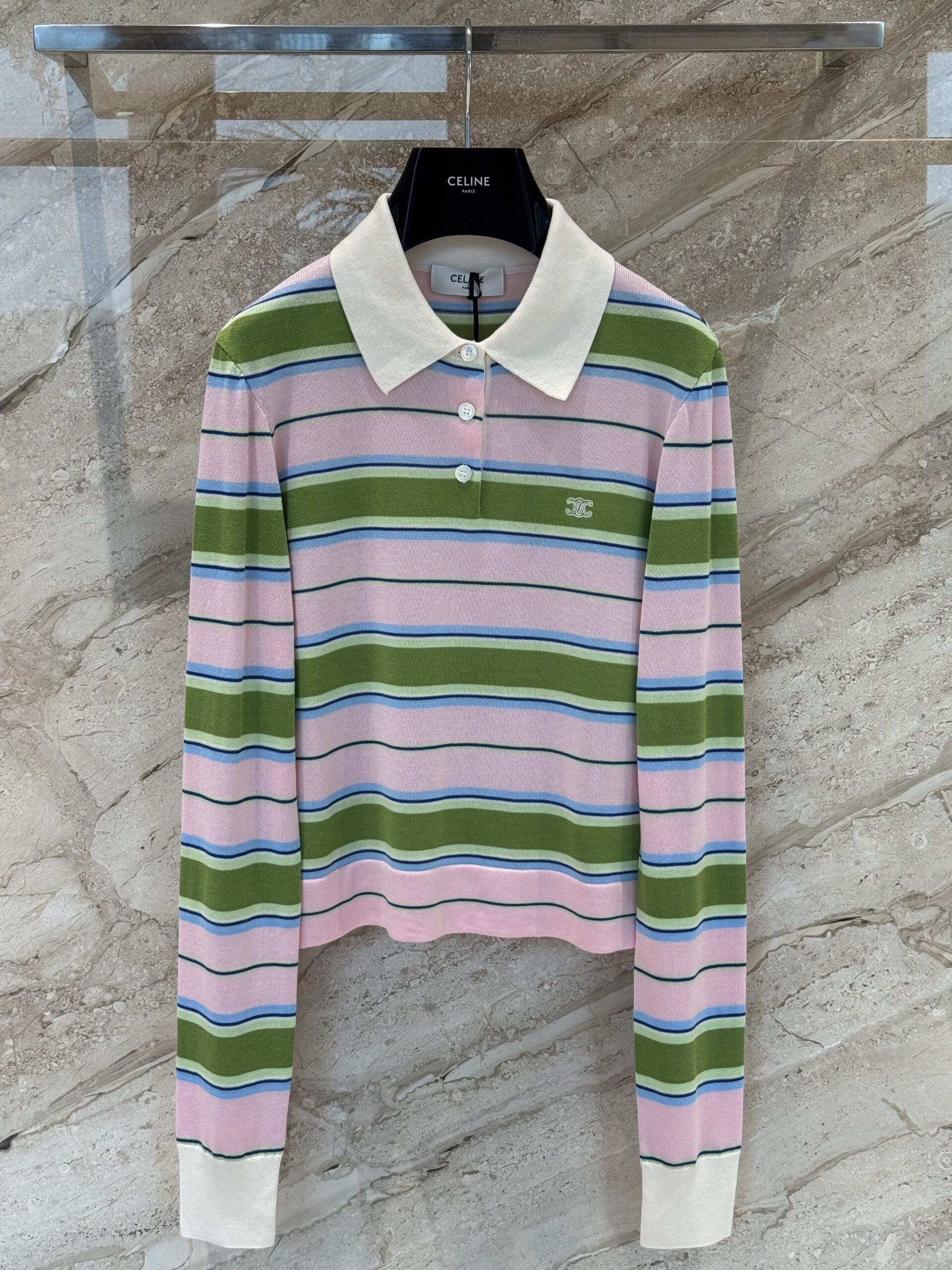/ 셀린느 스트라이프 코튼 폴로 니트 RY0TF3B21